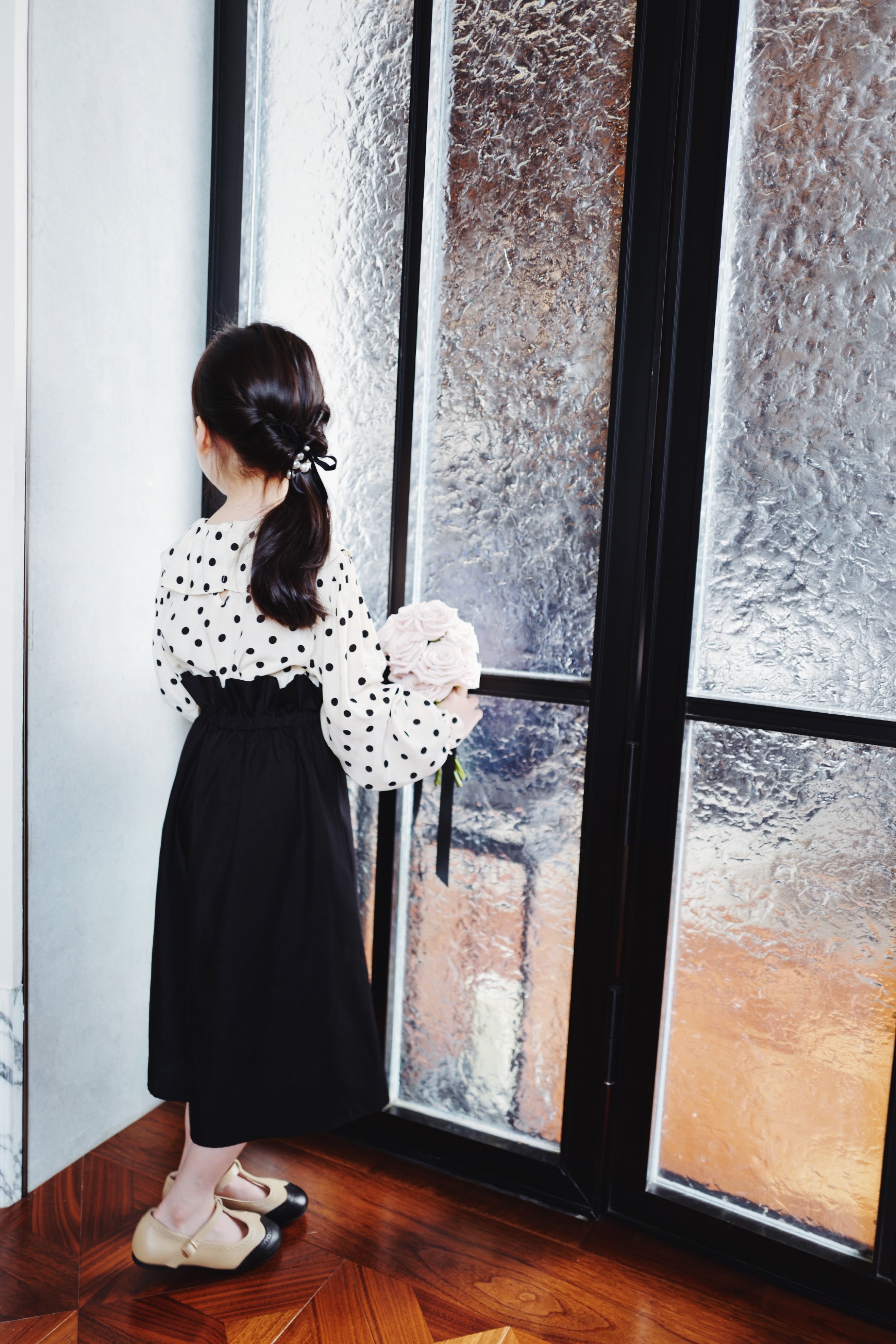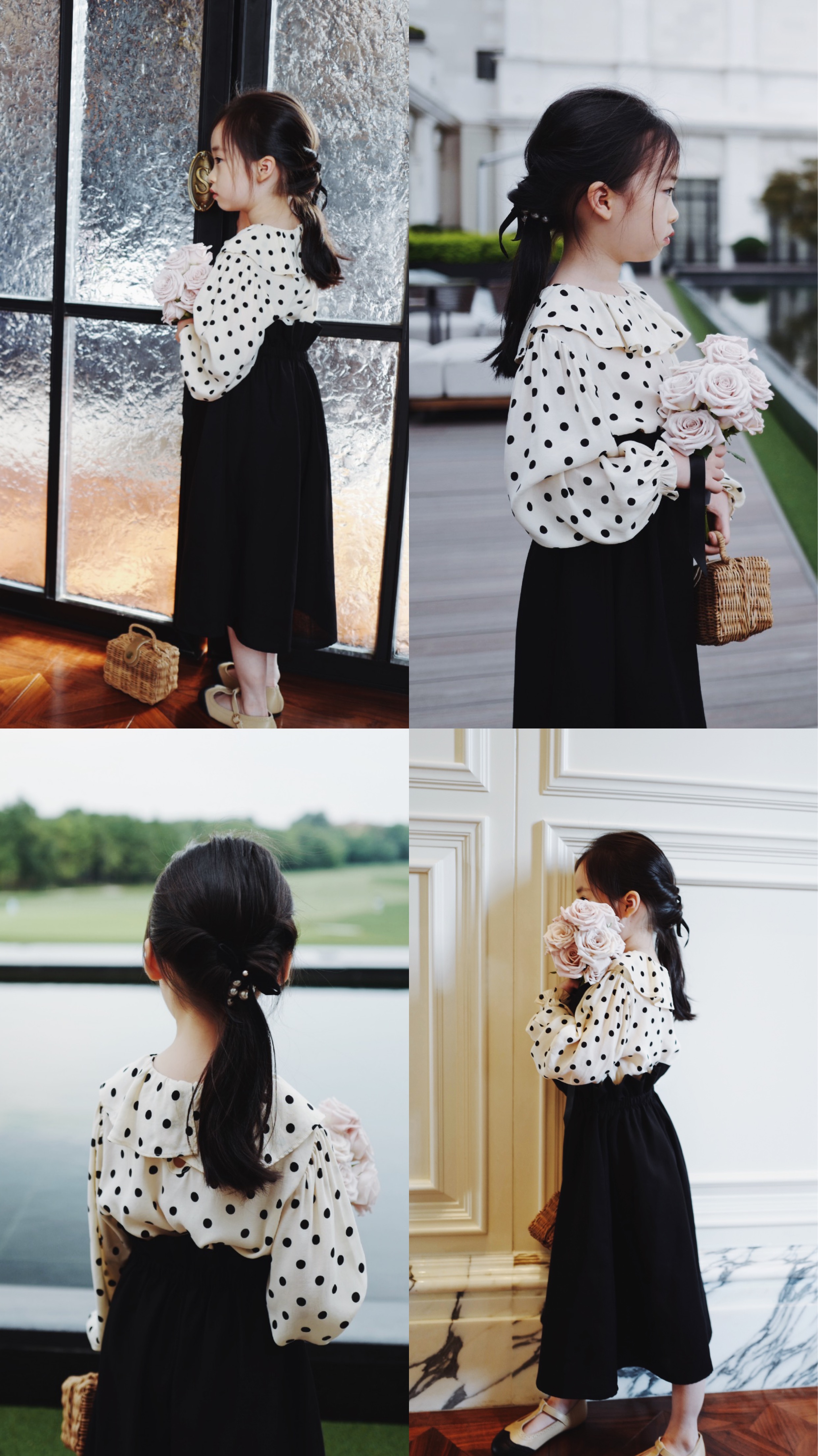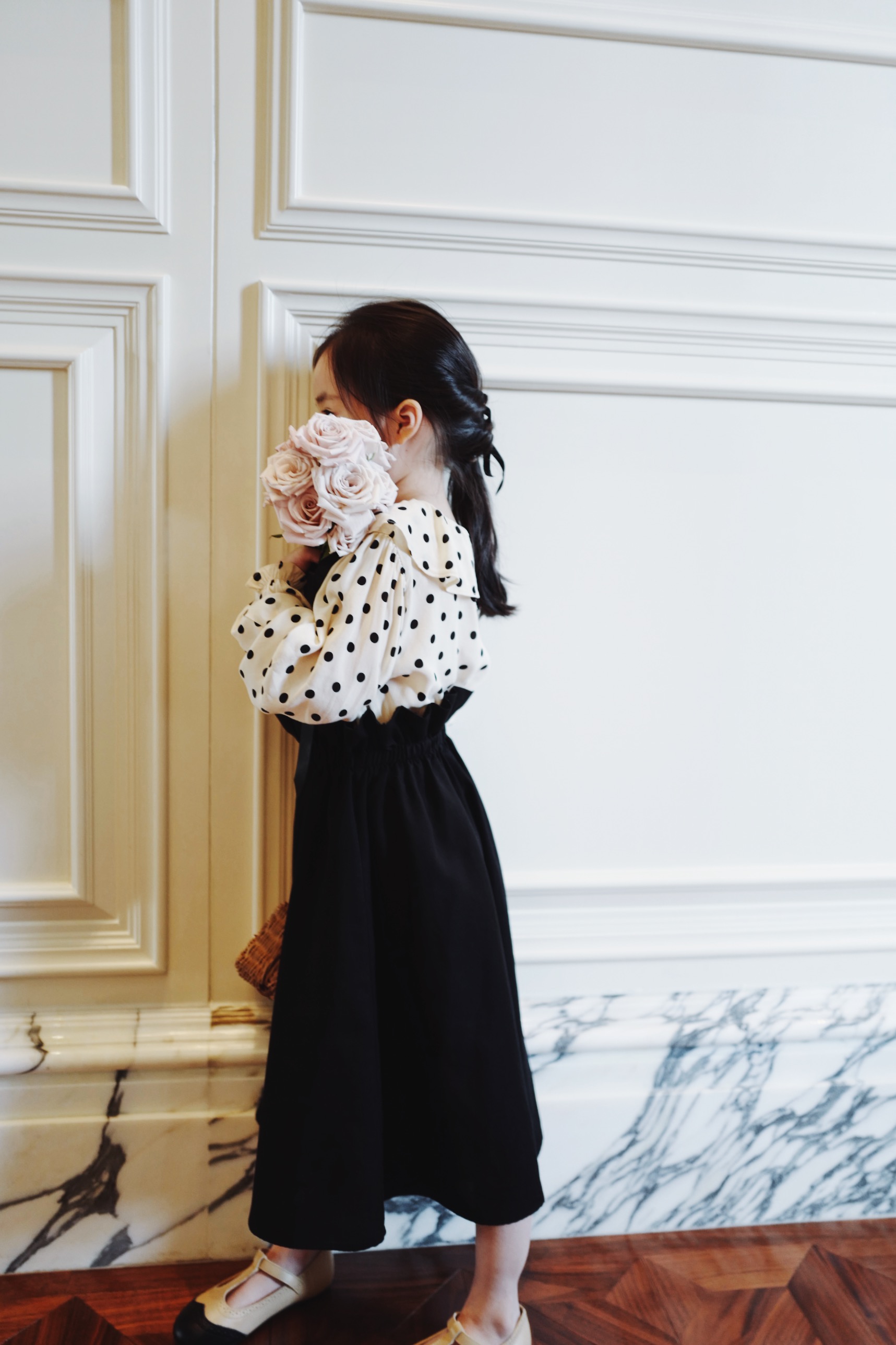 现货 / DOT DOT 2 | 亲子款 进口面料 土耳其印花 法风波点荷叶边衬衫+复古暗黑阔腿裙裤 现货