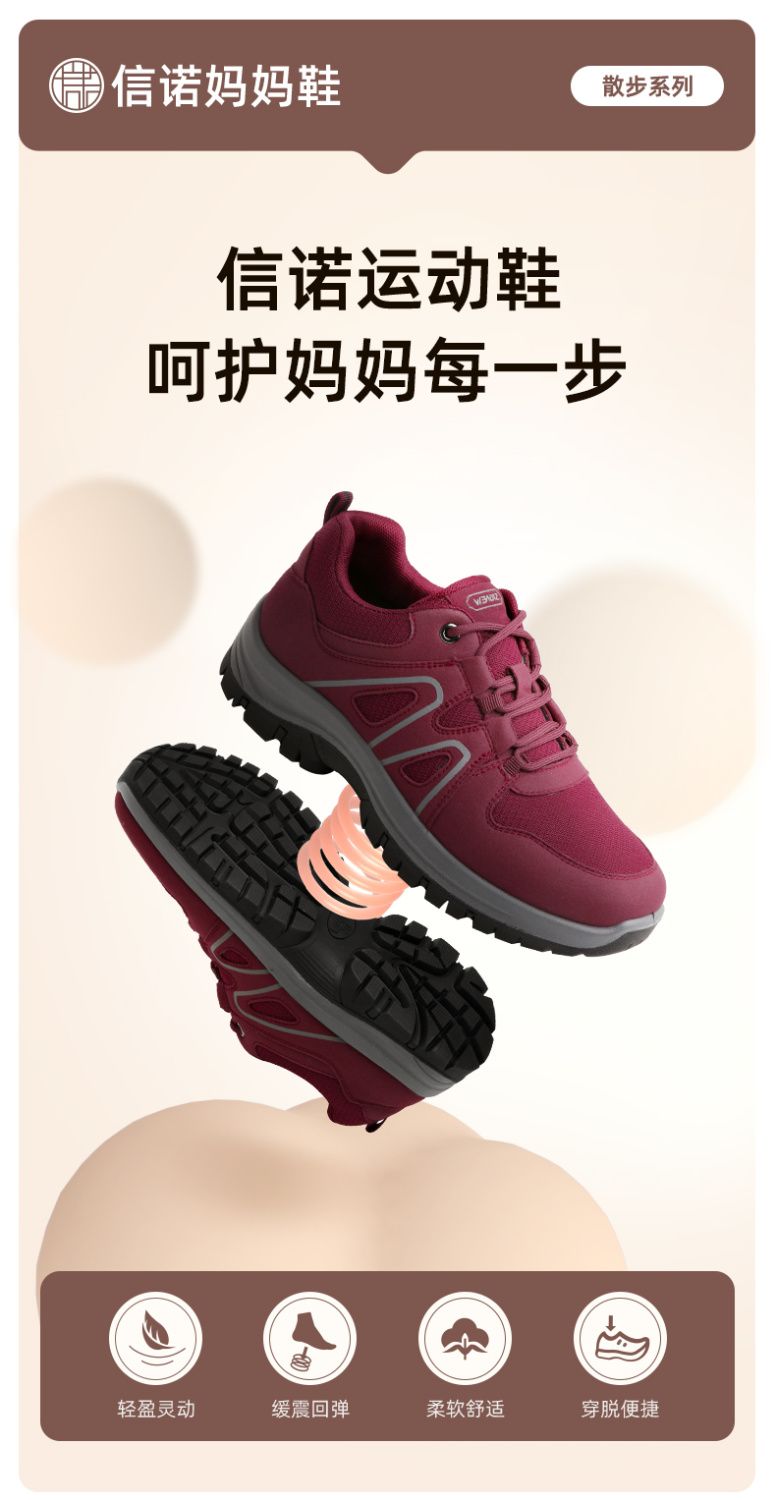 信诺轻便软底旅游运动鞋女2023新款秋季中老年防滑老人健步妈妈鞋23Q9959-X3