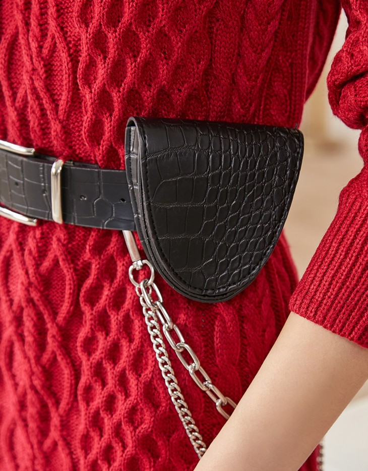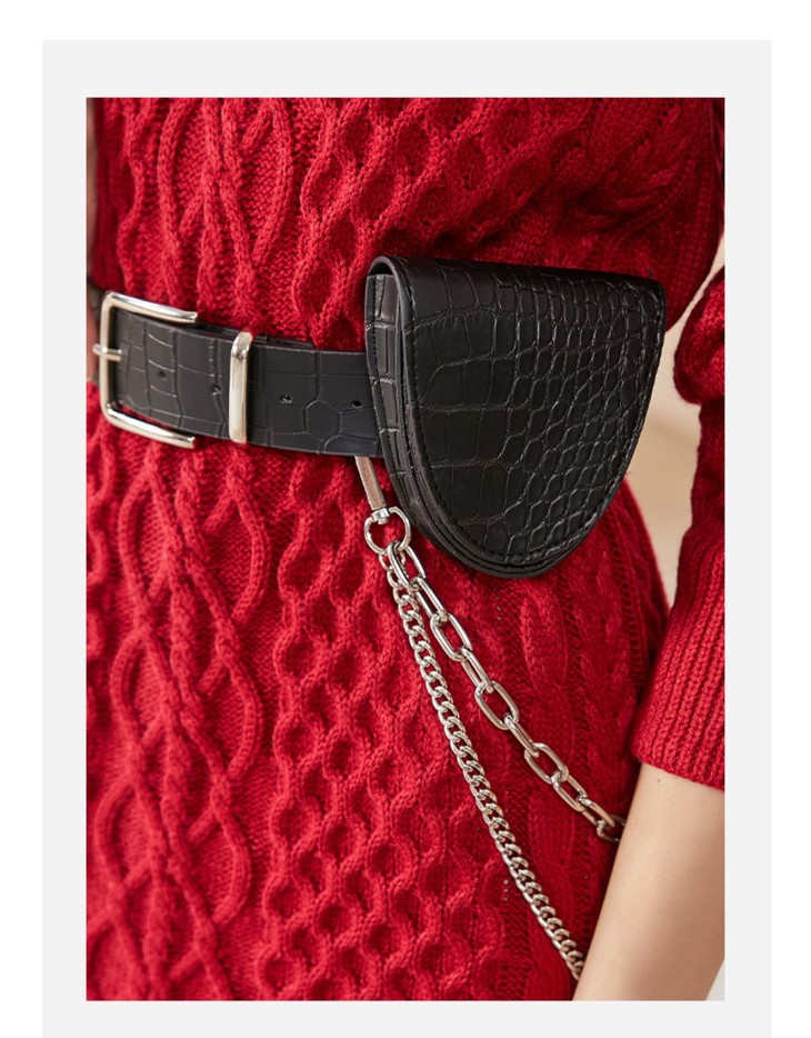 剩均码 米思阳 时髦蛇皮纹腰带包