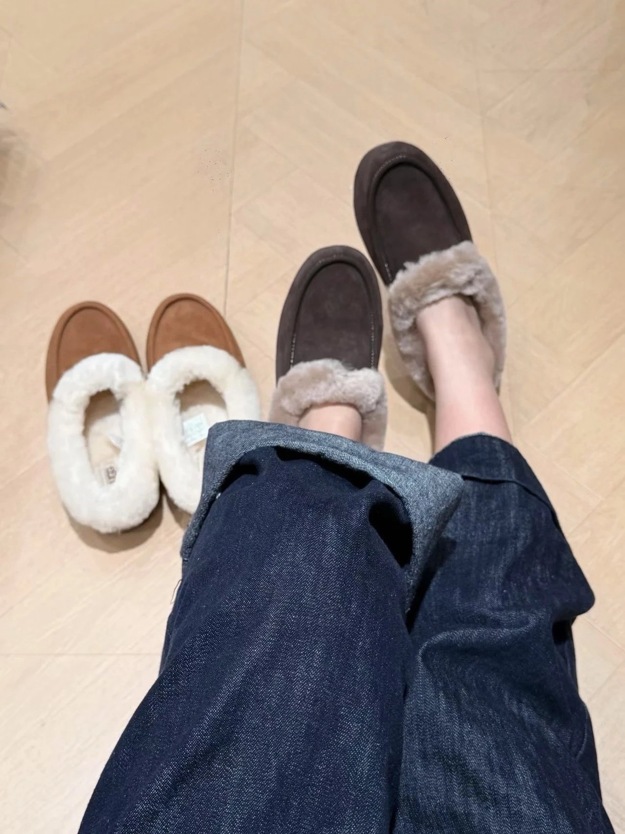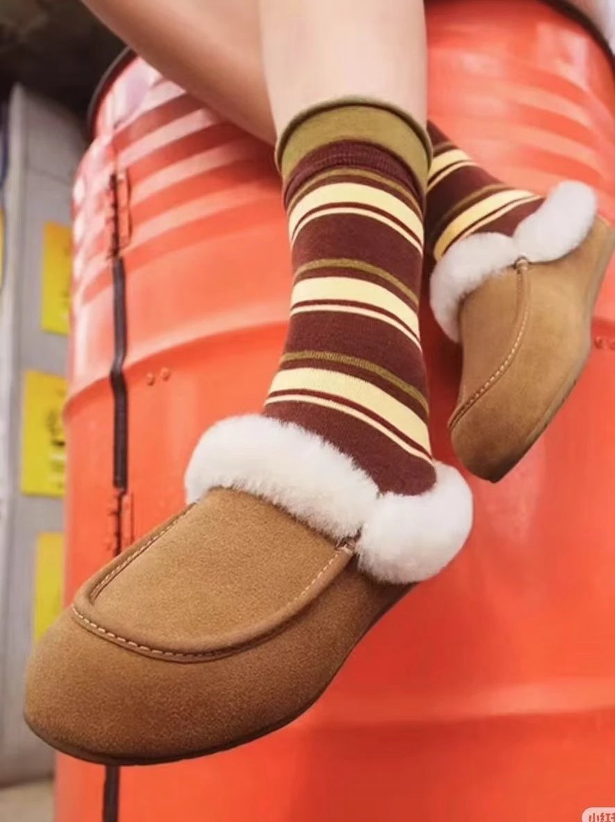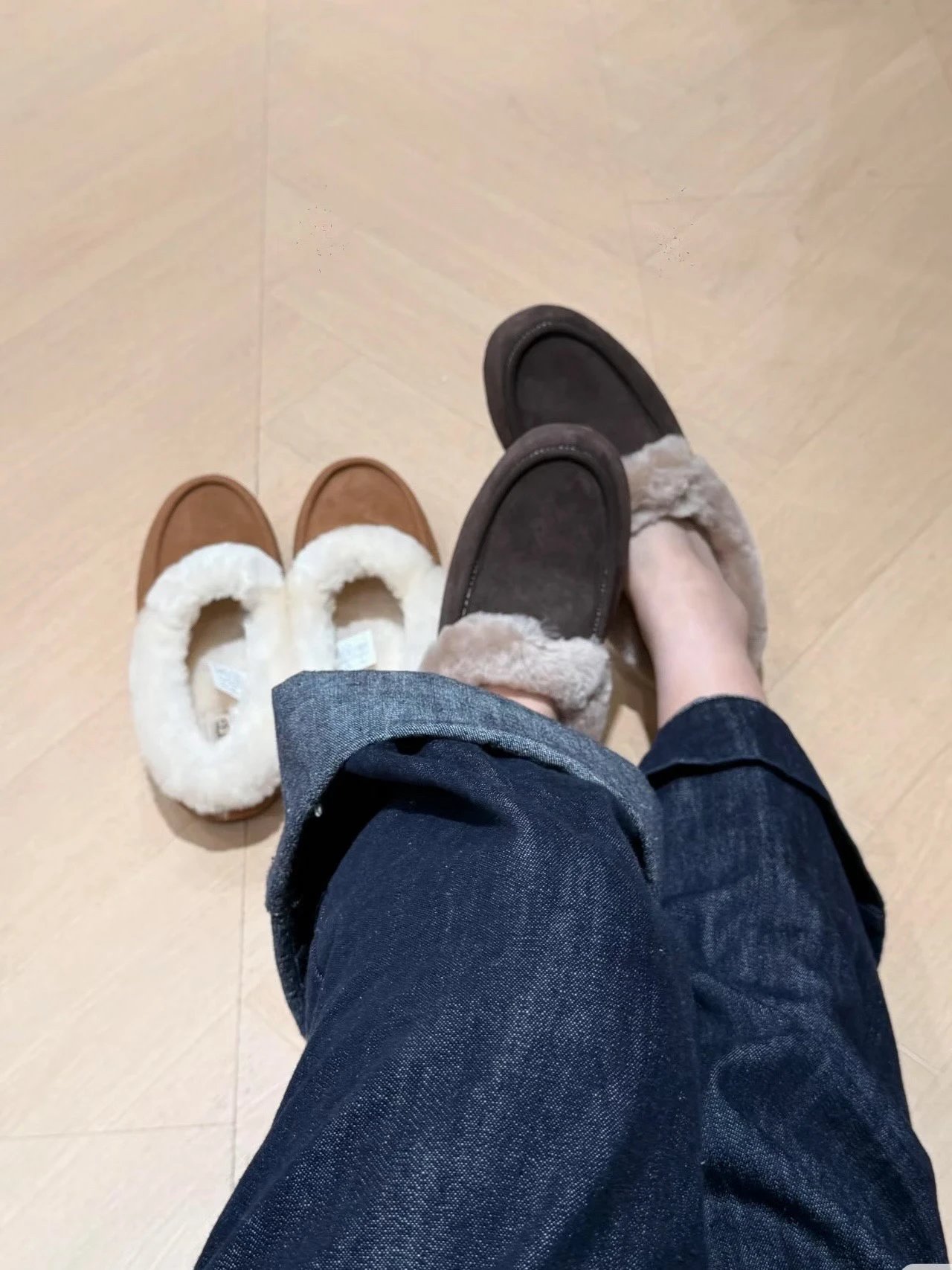懒人必备 油叽叽系列 安思丽穆勒 平底毛毛拖鞋 皮毛一体雪地靴