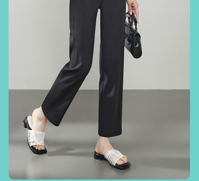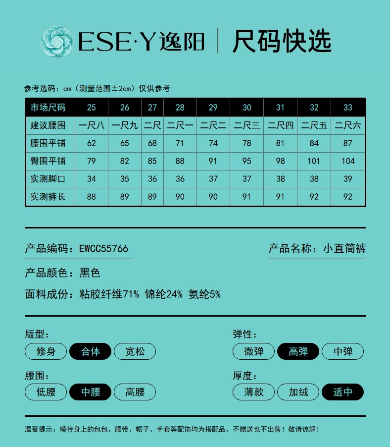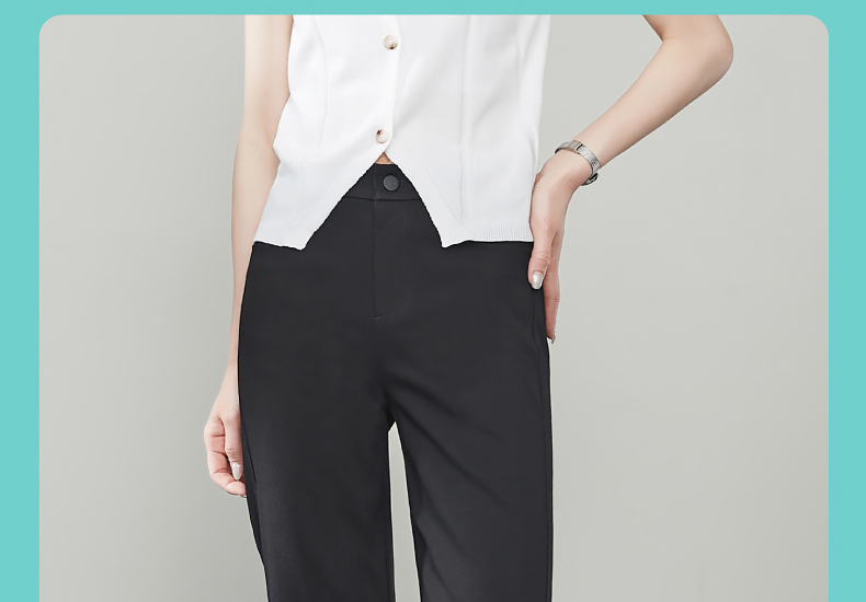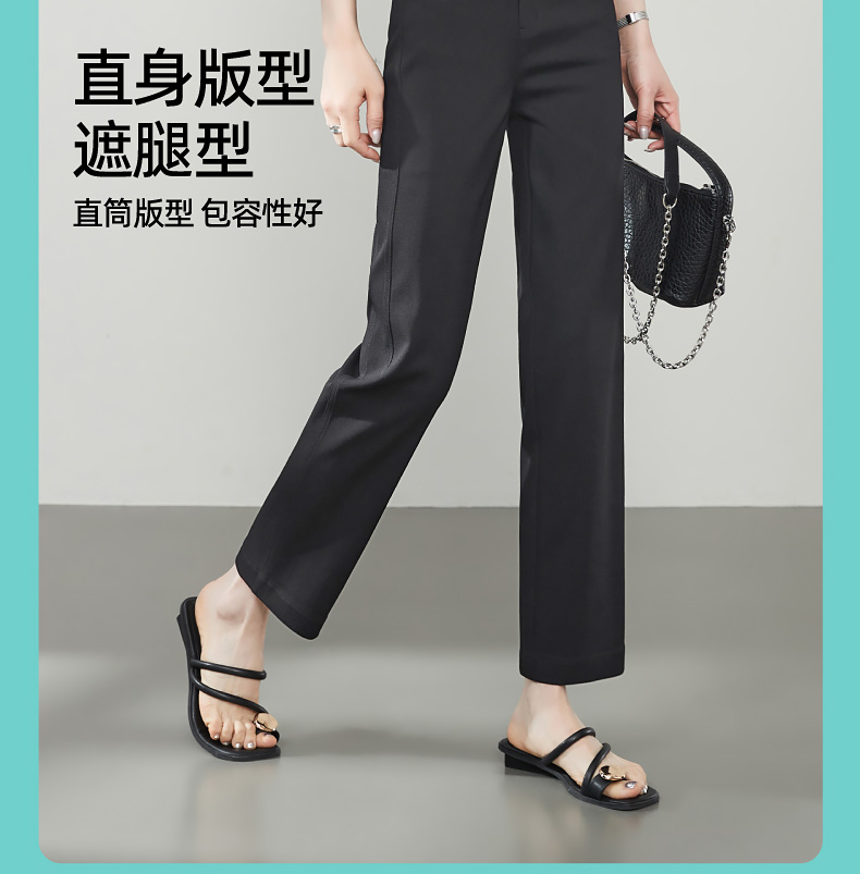 【早秋-九分直筒西裤】逸阳高腰显瘦修身弹力烟管法棍小黑裤子5766