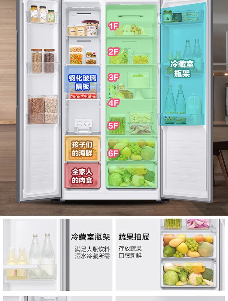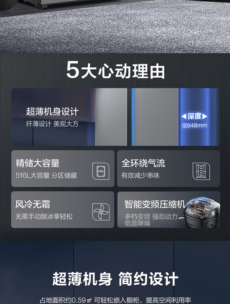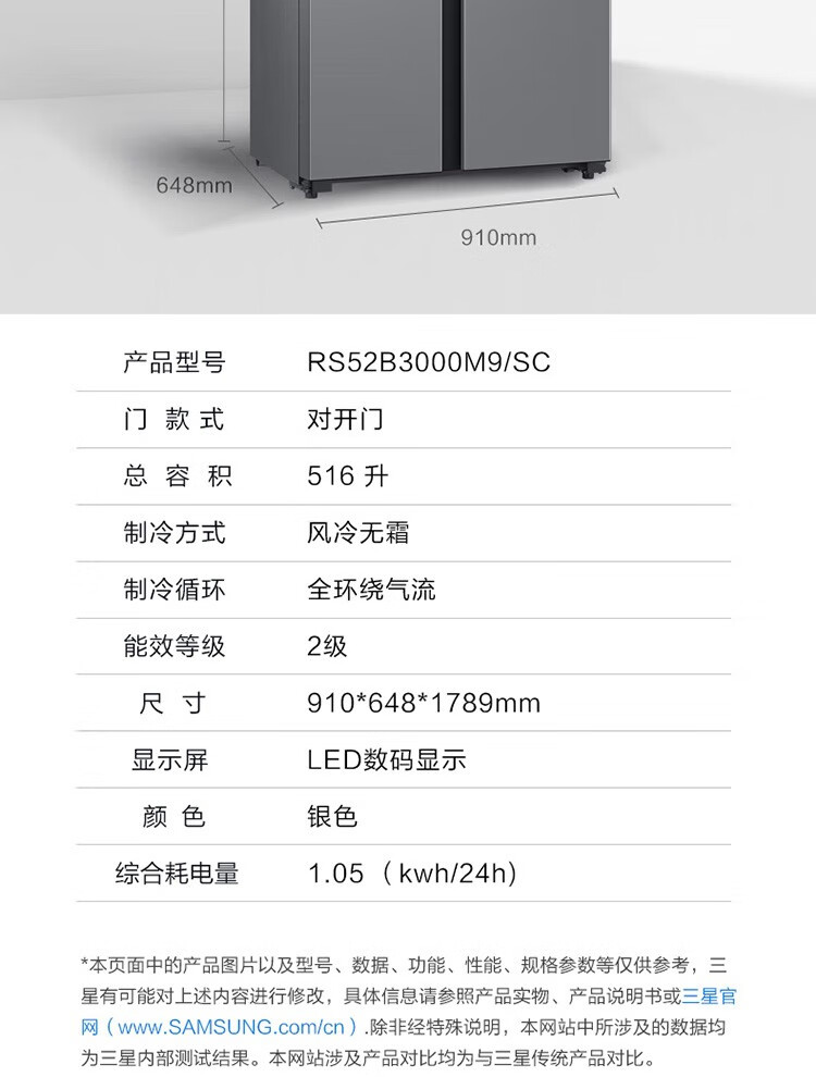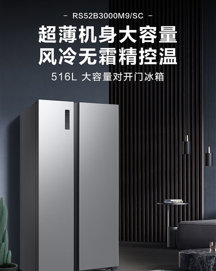 【年终燃购】三星(SAMSUNG)516L对开双门超薄冰箱全环绕循环家用制冰风冷无霜净味除菌月光银RS52B3000M9/SC 赠送天禧保温壶