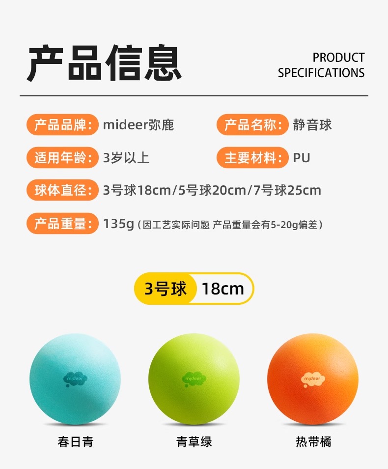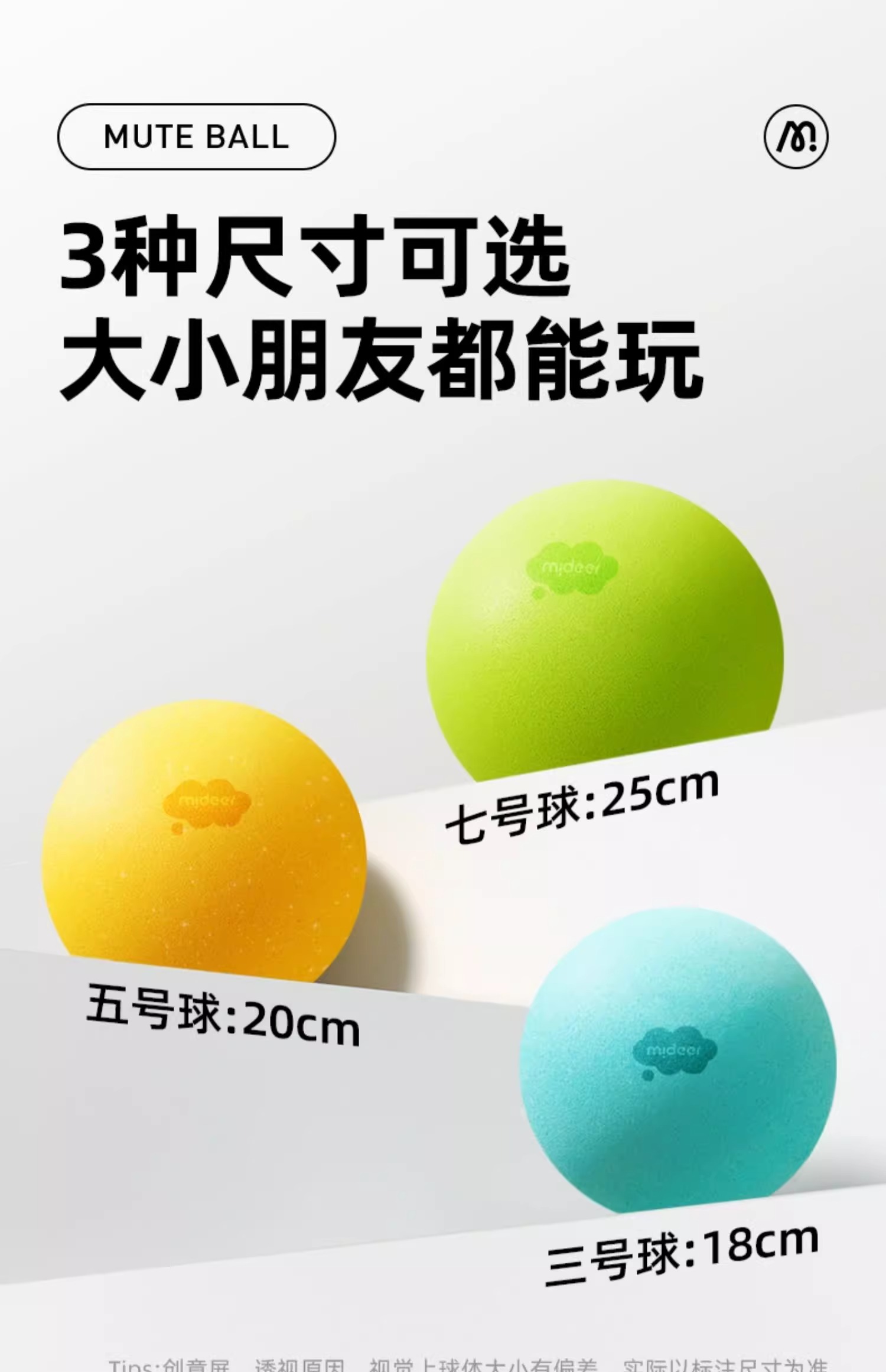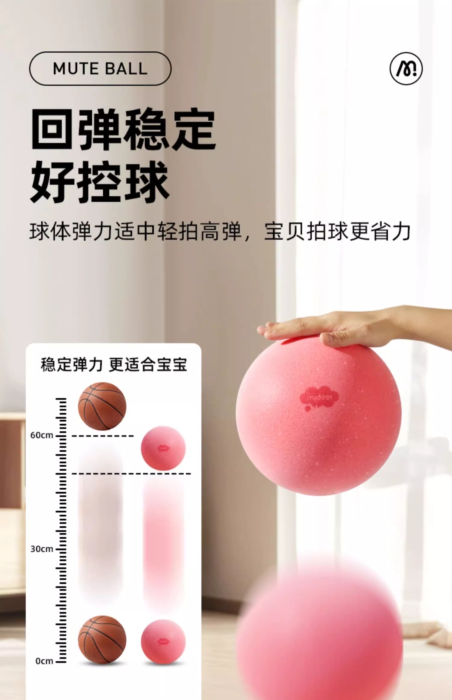 mideer弥鹿儿童静音球室内拍拍球幼儿园训练弹弹皮球海绵无声篮球