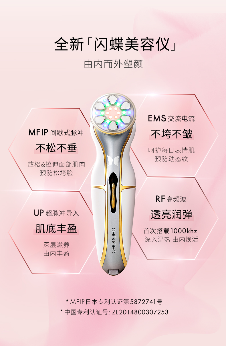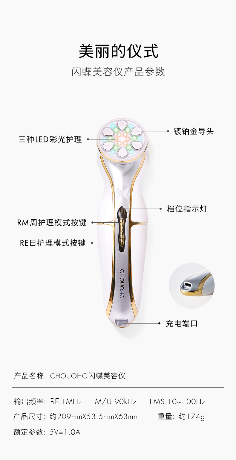 宙斯新款CHOUOHC闪蝶美容仪家用脸部高频波微电流美容仪
