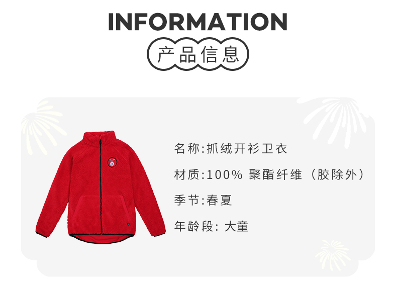 reima男女儿童大童卫衣新年款春夏休闲运动抓绒印花开衫外套