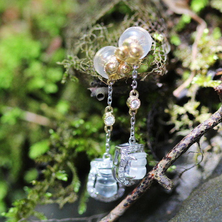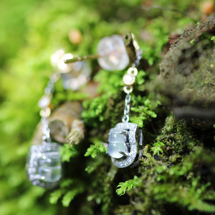 葫芦翡翠白冰钻石白金耳坠【定制】 商品图1