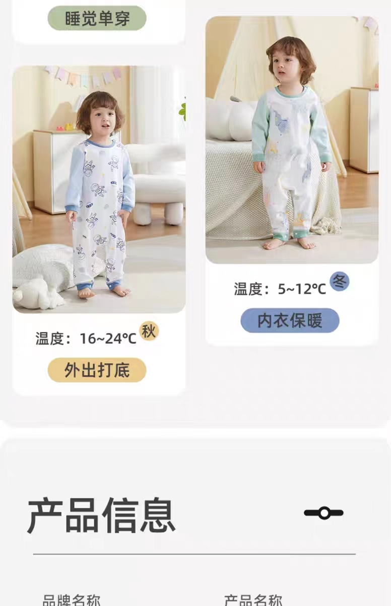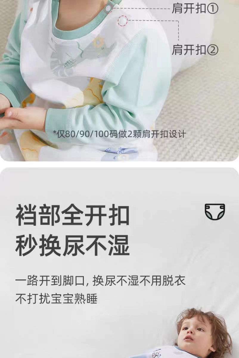【贝肽斯】儿童宝宝连体衣睡衣春秋夏季薄款宝宝家居服儿童空调服