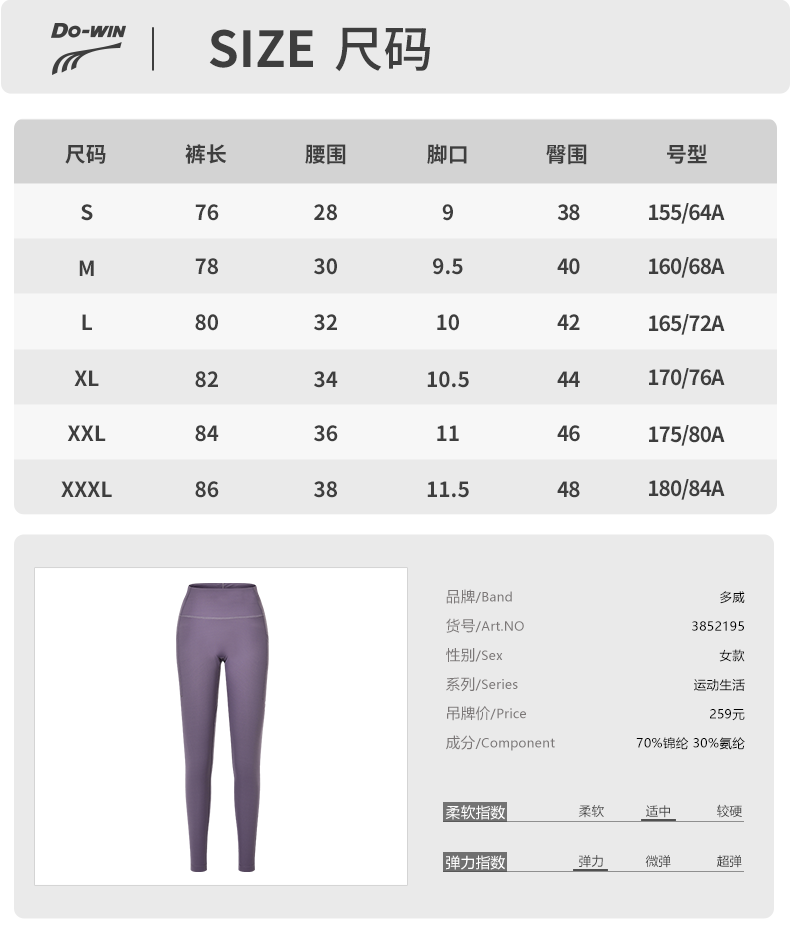 多威运动裤新款紧身裤女士弹力压缩裤吸湿速干长裤3852195