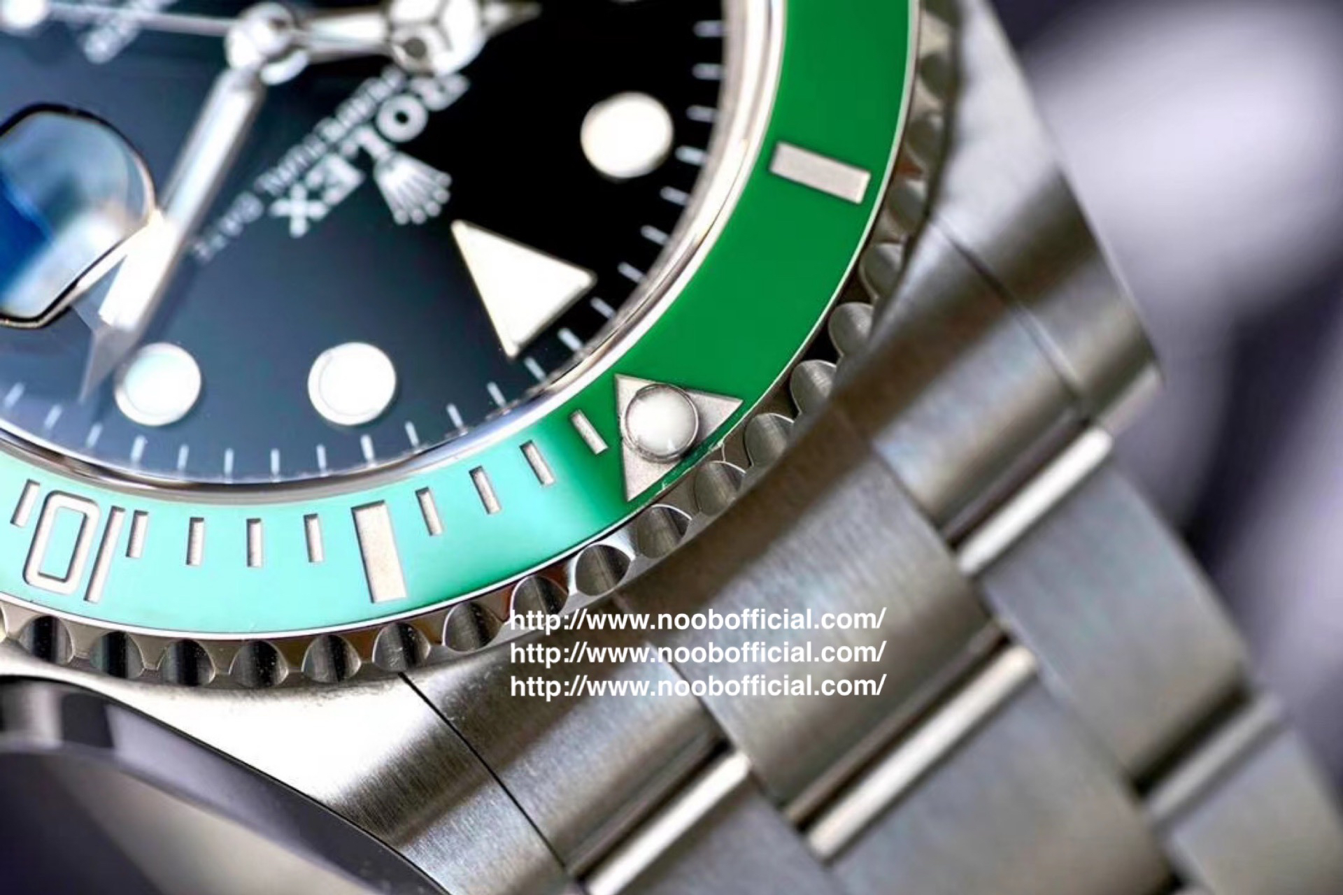 【字面】:还原度更高的黑色搪瓷材料,独立开模的顶级刻度,打磨工艺和夜光填充的精细度堪比原装,搭配绿色外圈,给你陌生又熟悉的感受