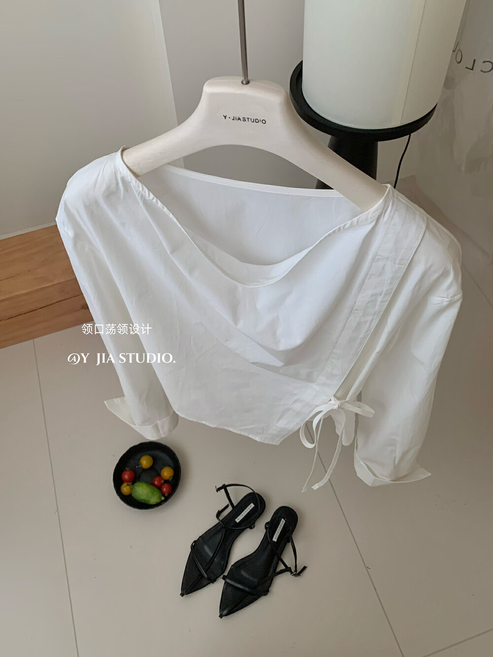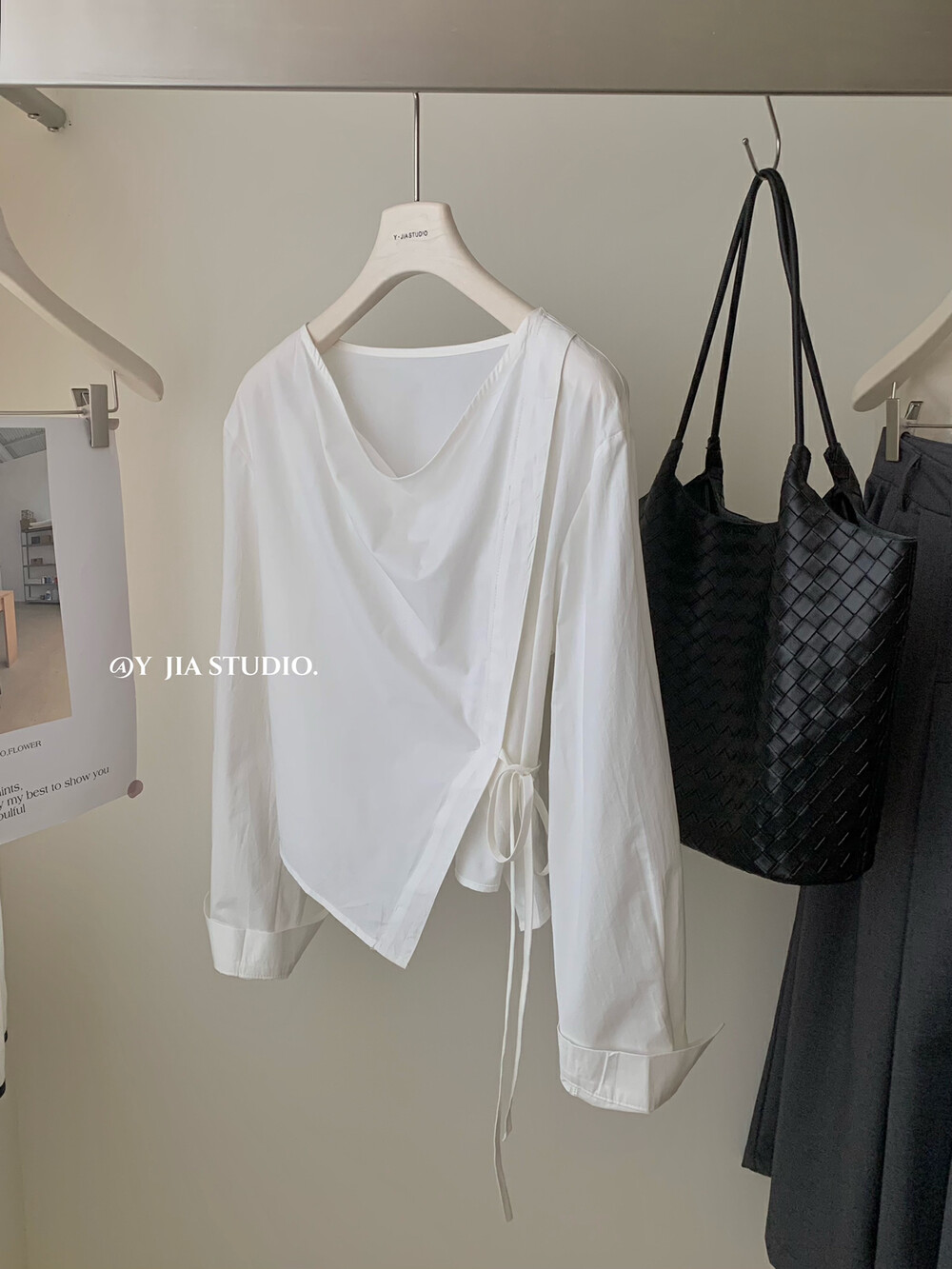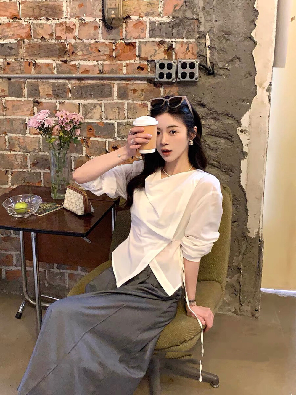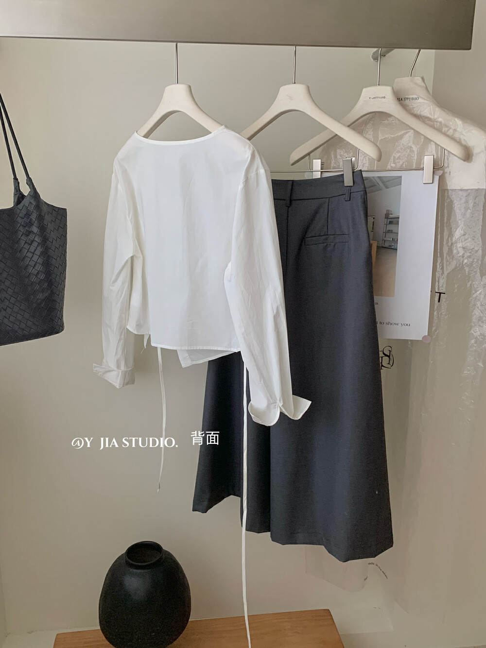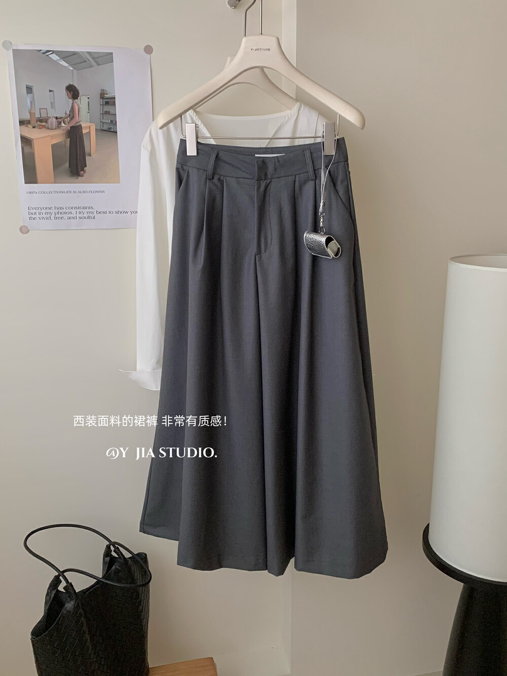 【GZ】无忧购韩系荡领不规则系带白衬衣+气质高腰显瘦A字百褶裙裤套装8925-5(截单后7天发货)