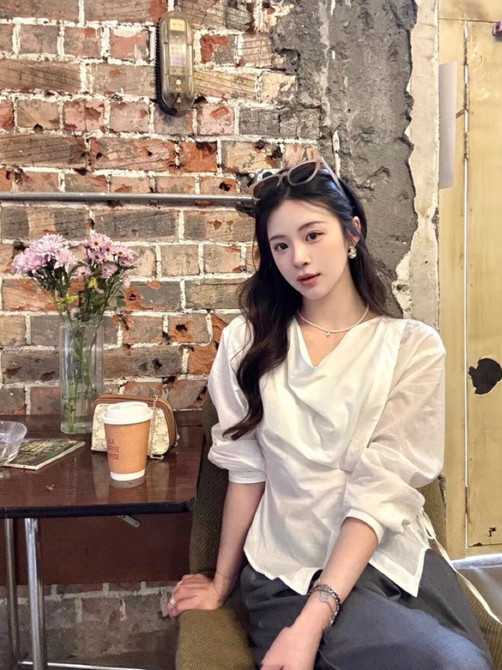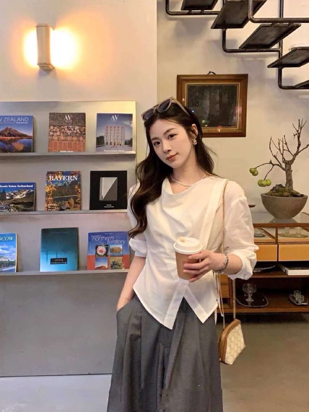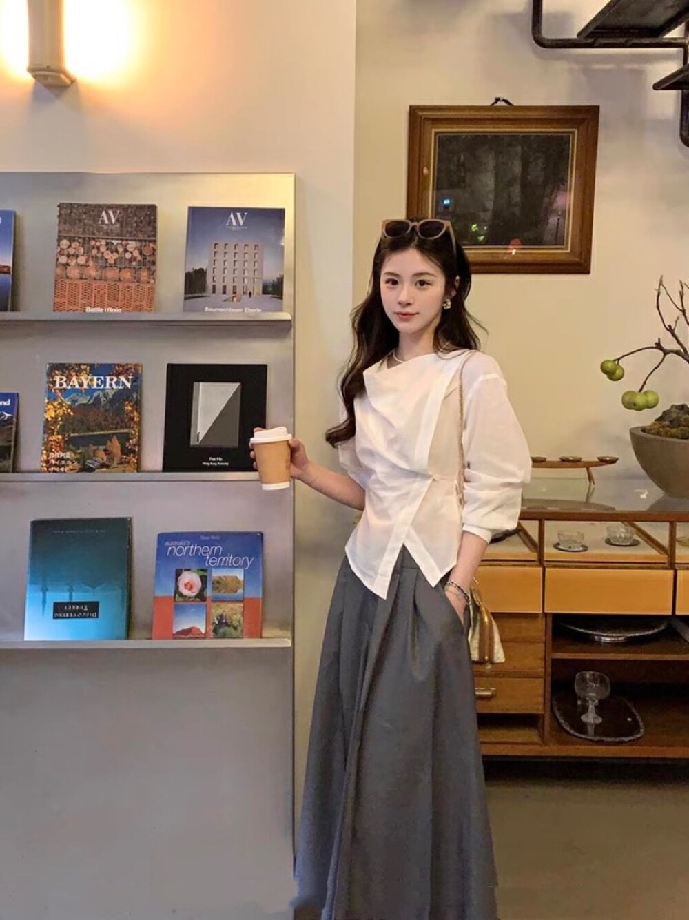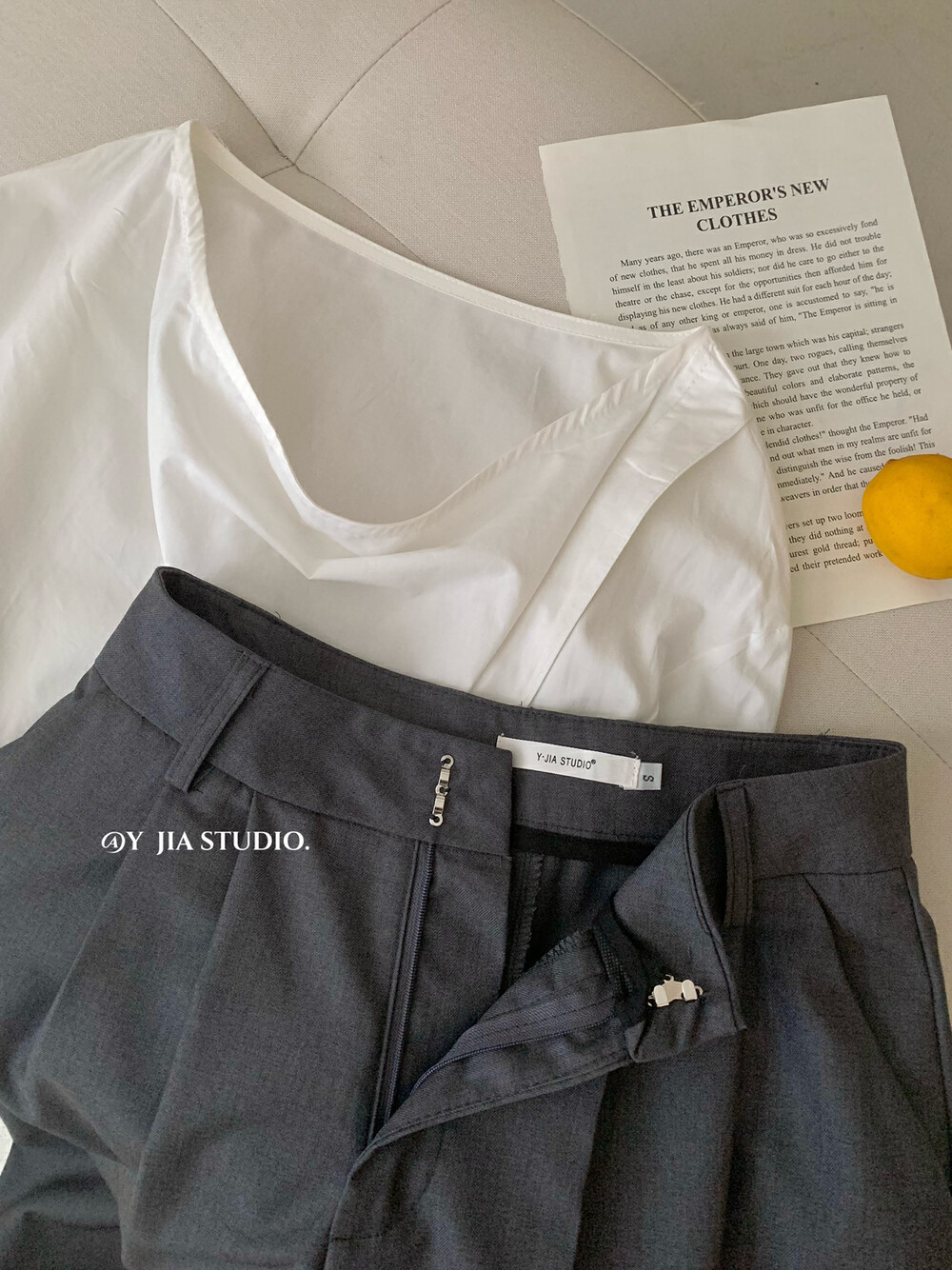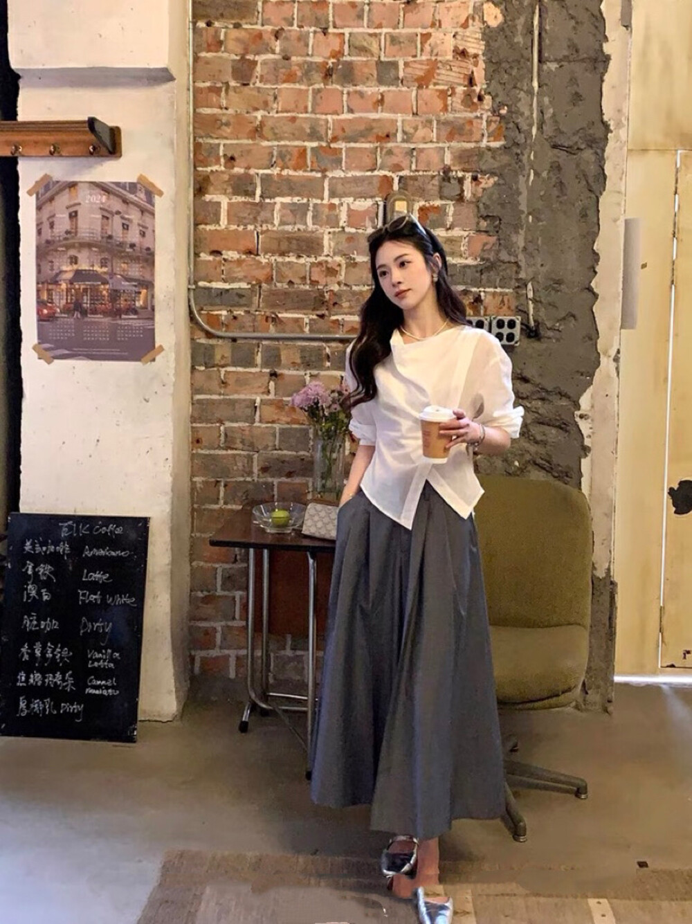 【GZ】无忧购韩系荡领不规则系带白衬衣+气质高腰显瘦A字百褶裙裤套装8925-5(截单后7天发货)