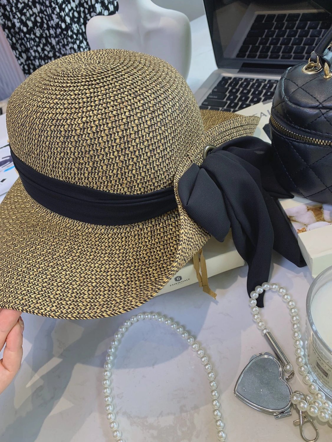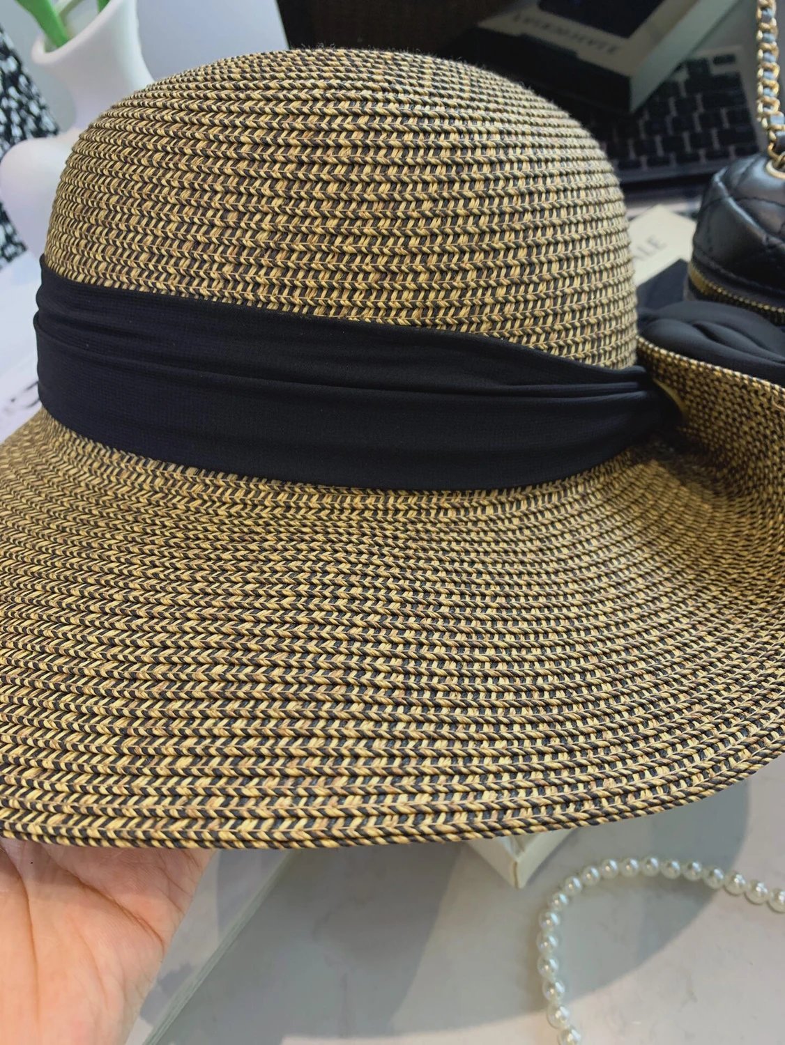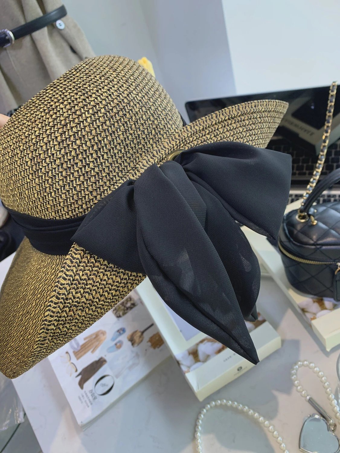 超大帽檐➕UPF50+防晒力,遮阳挡脸全都安排上!帽子采用混色包芯纸手工缝制一圈圈工艺,质感炸裂!欧根纱蝴蝶结加持,优雅又仙气,拍照轻松出片!