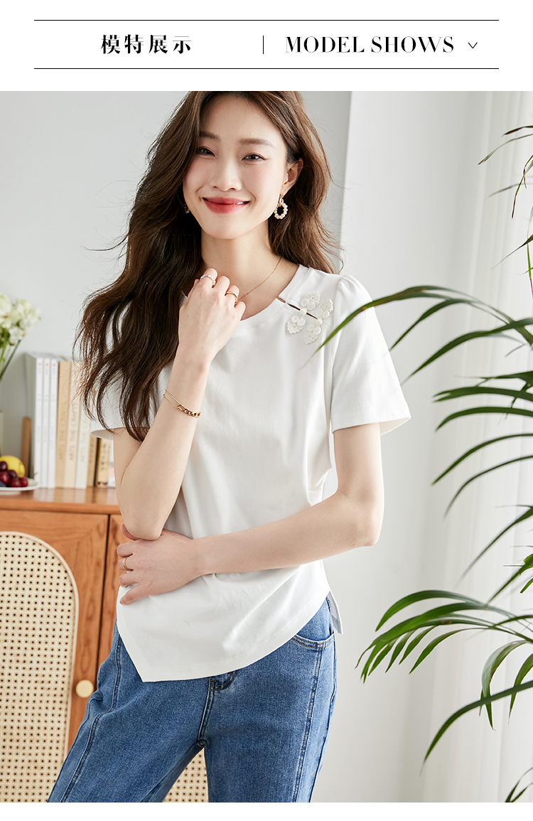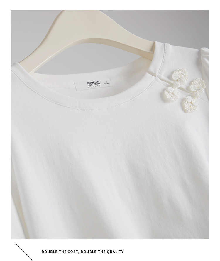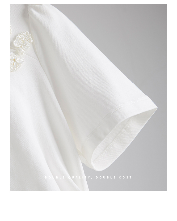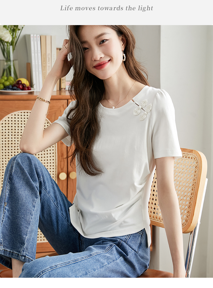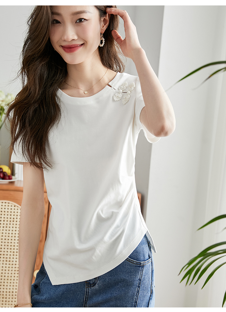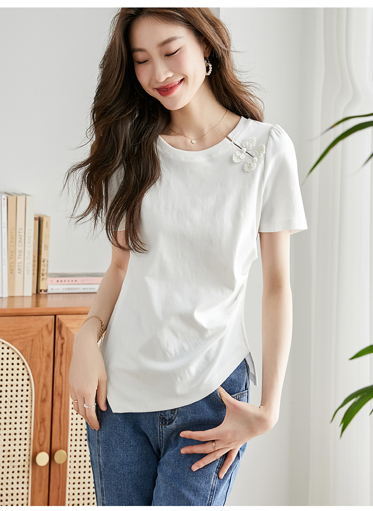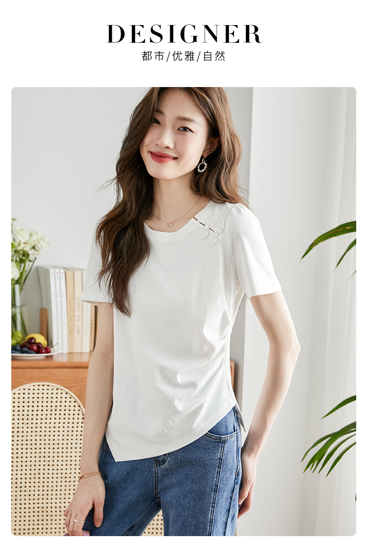 【专属特价】熙世界新国风盘扣设计白色T恤女短袖收腰显瘦圆领上衣2025夏新款