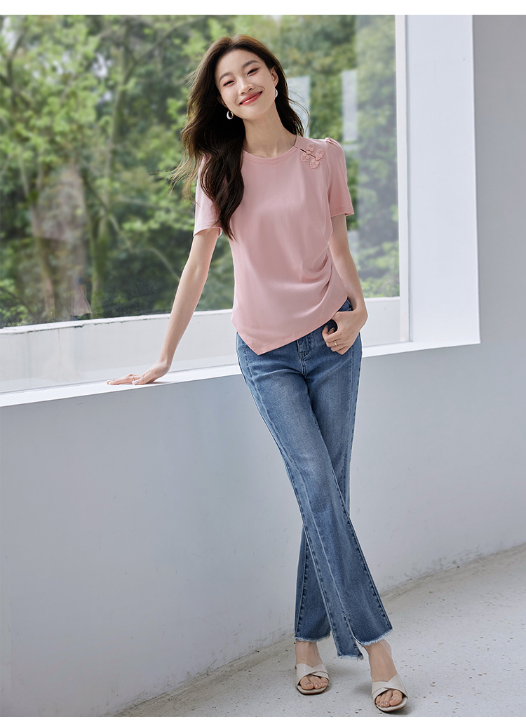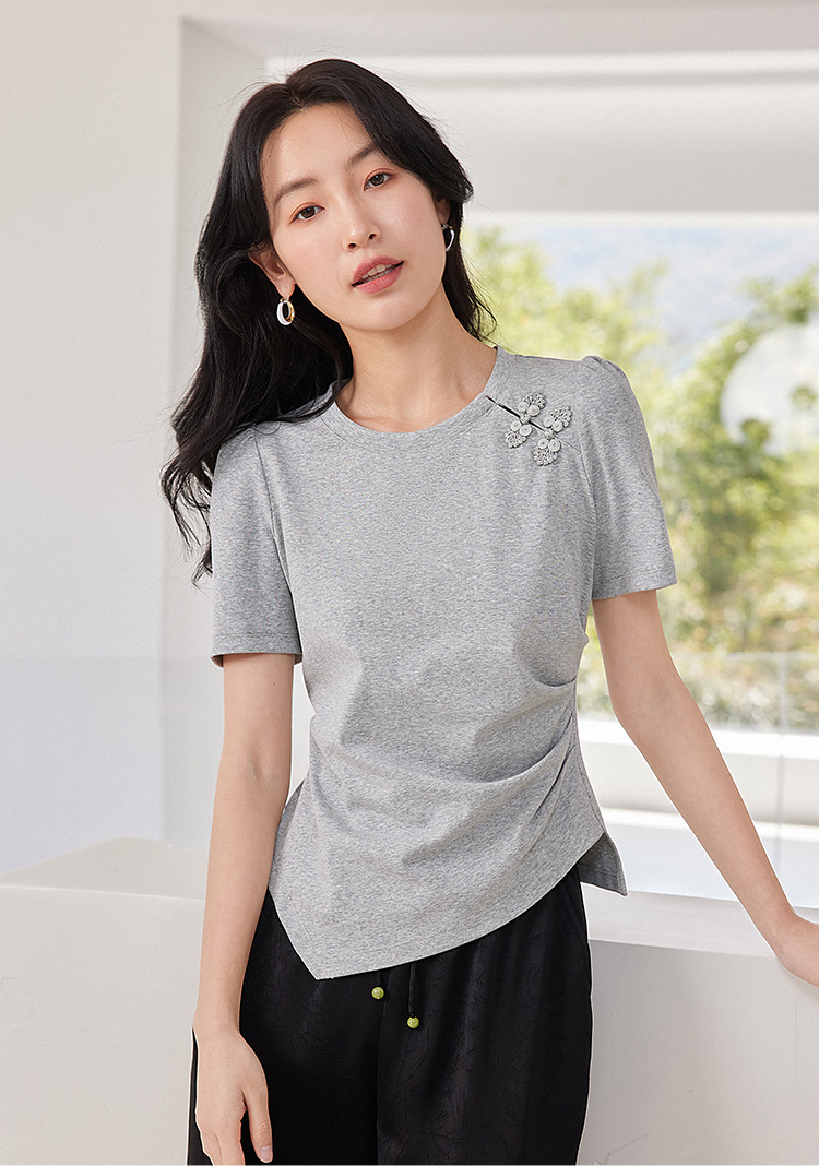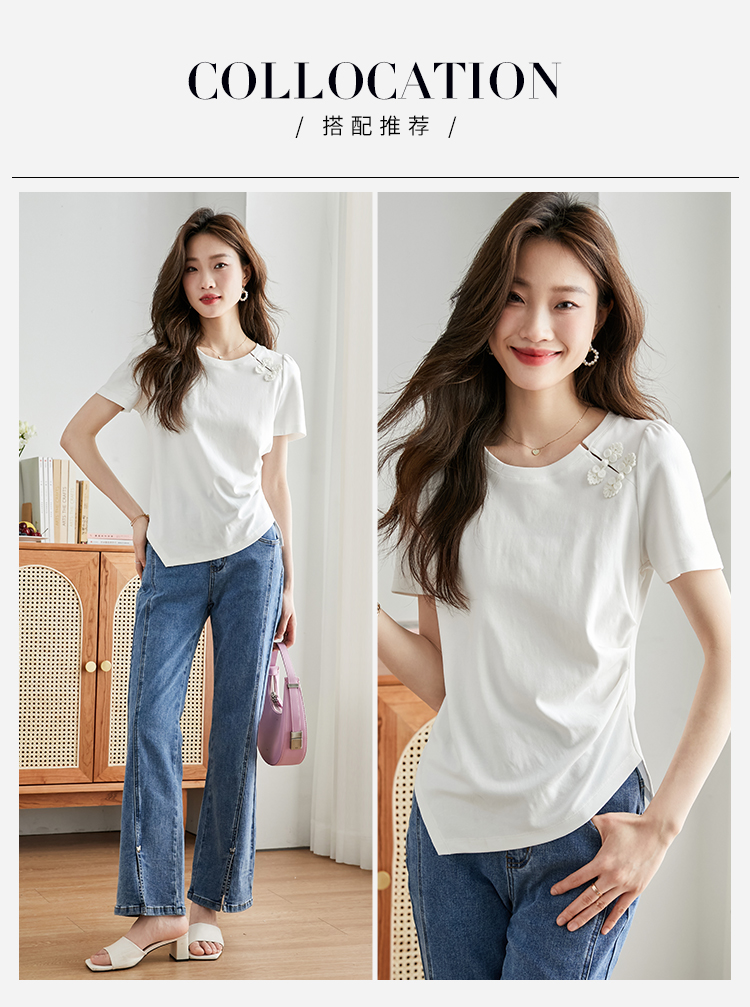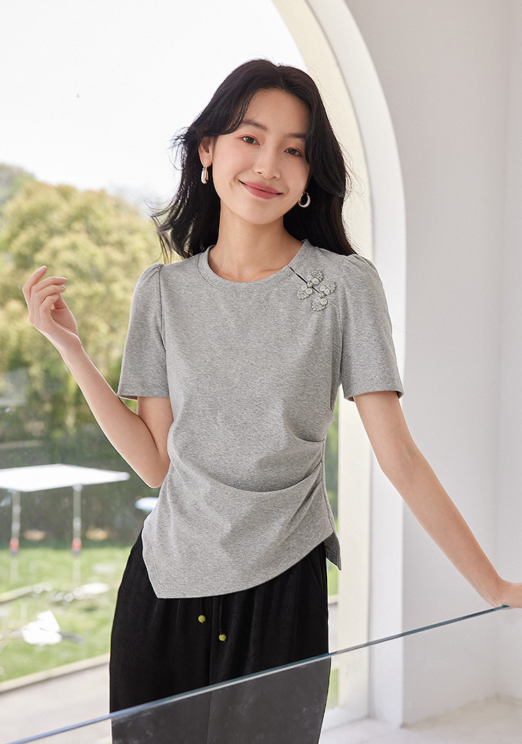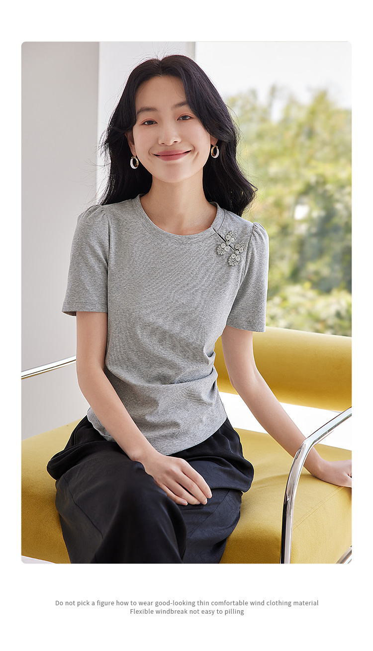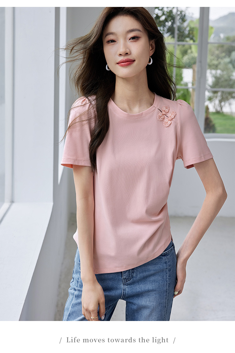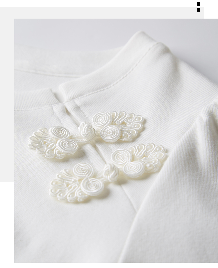 【专属特价】熙世界新国风盘扣设计白色T恤女短袖收腰显瘦圆领上衣2025夏新款