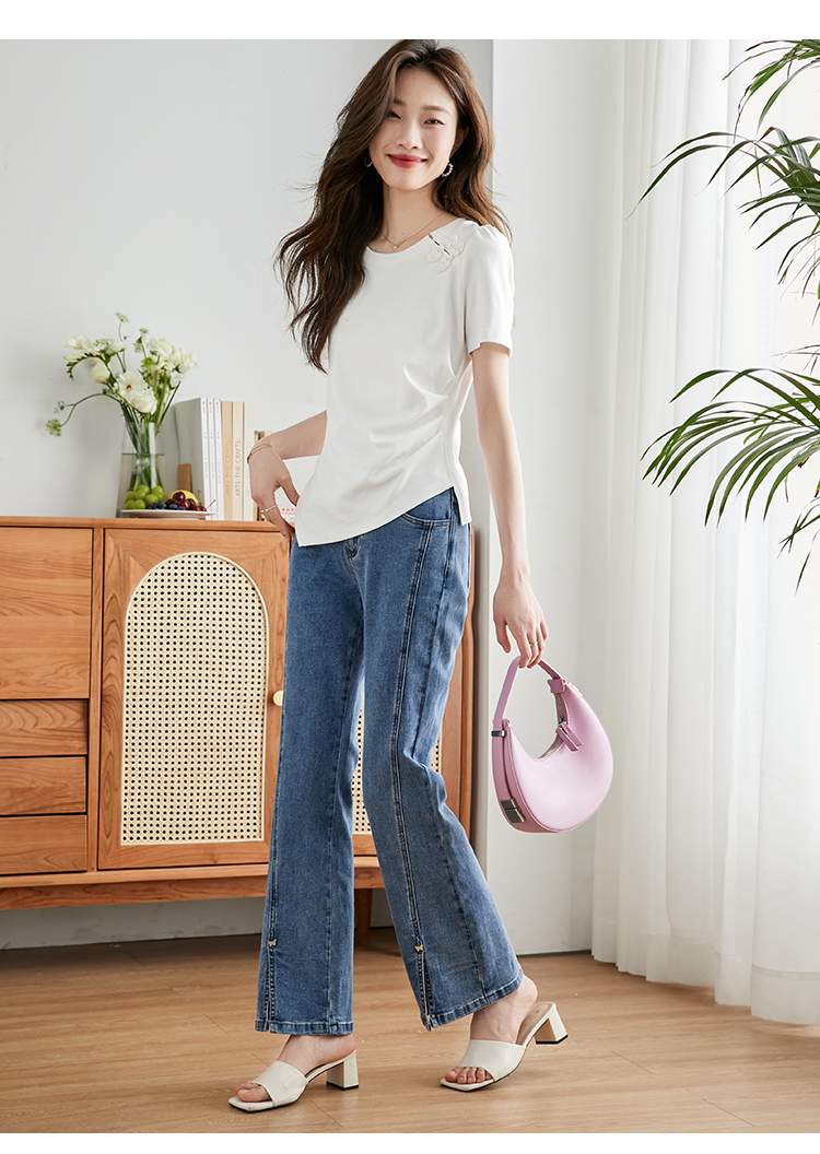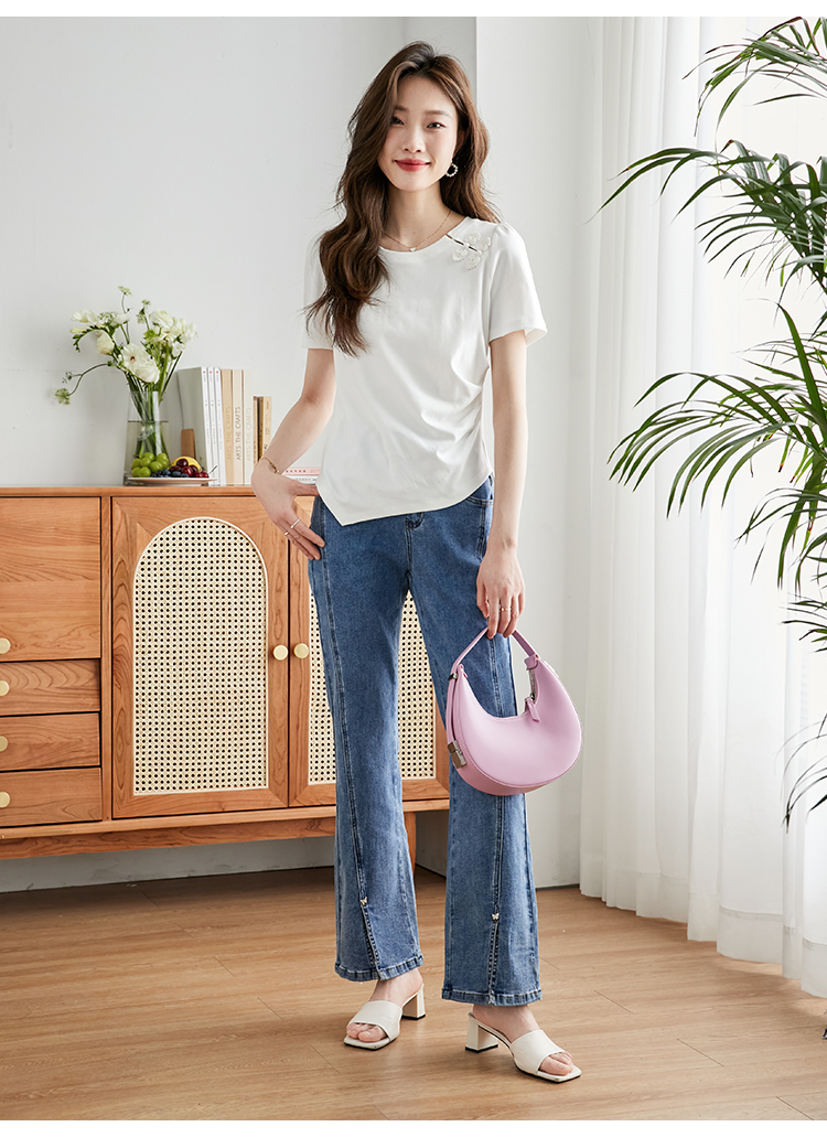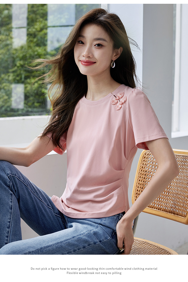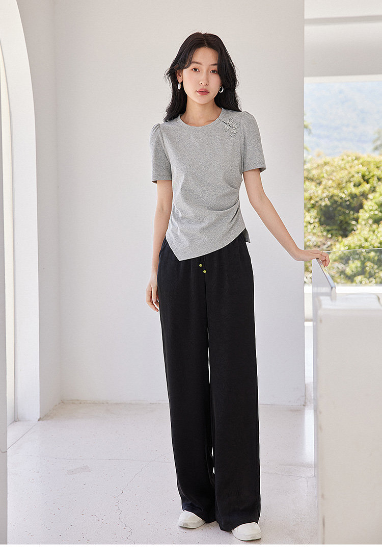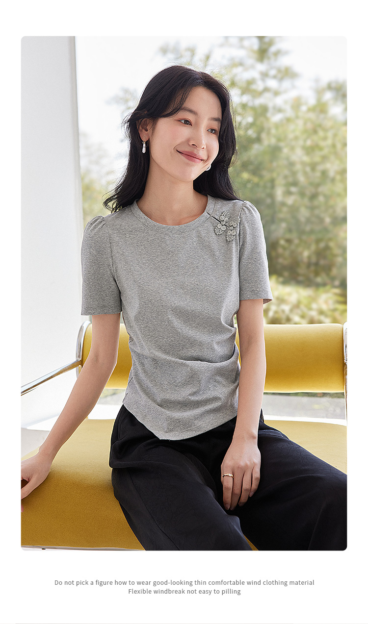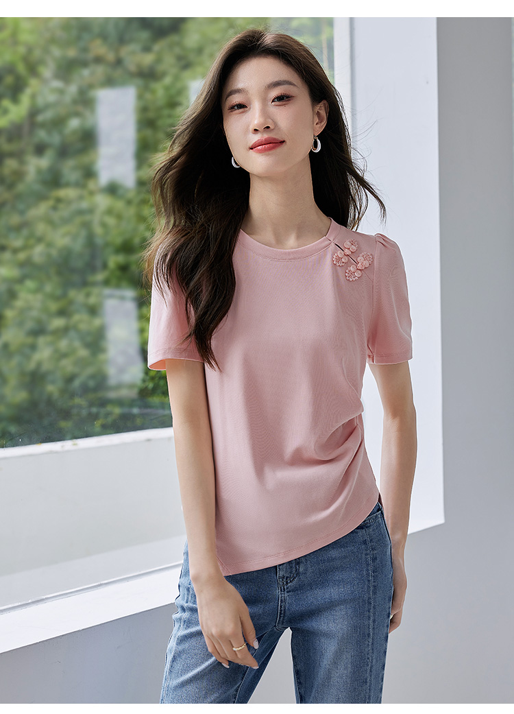 【专属特价】熙世界新国风盘扣设计白色T恤女短袖收腰显瘦圆领上衣2025夏新款