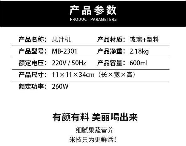 德国米技(MIJI) 果汁机(玻璃搅拌杯) 600ml MB-2301