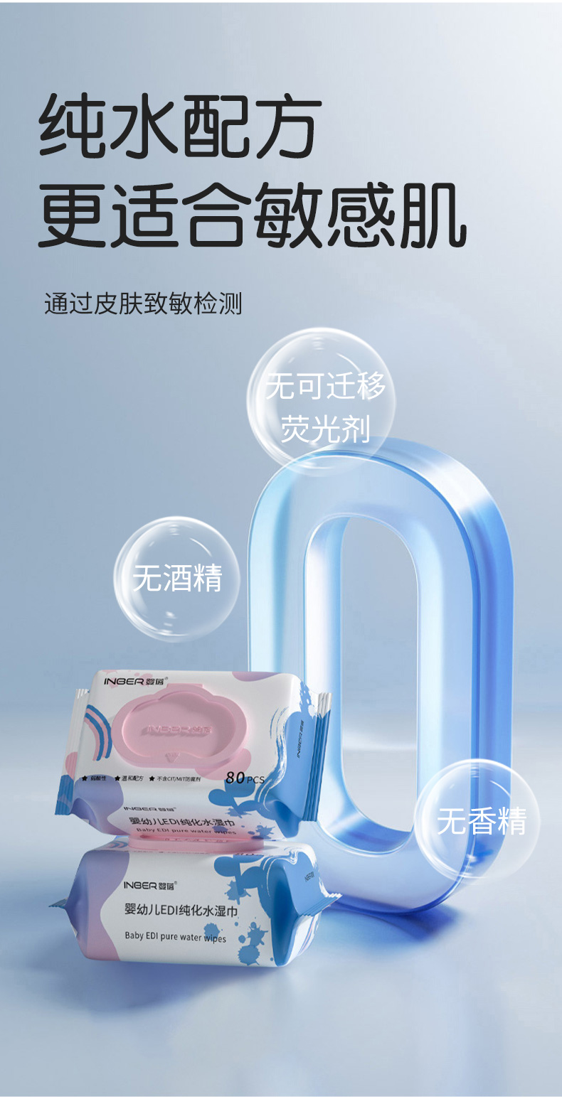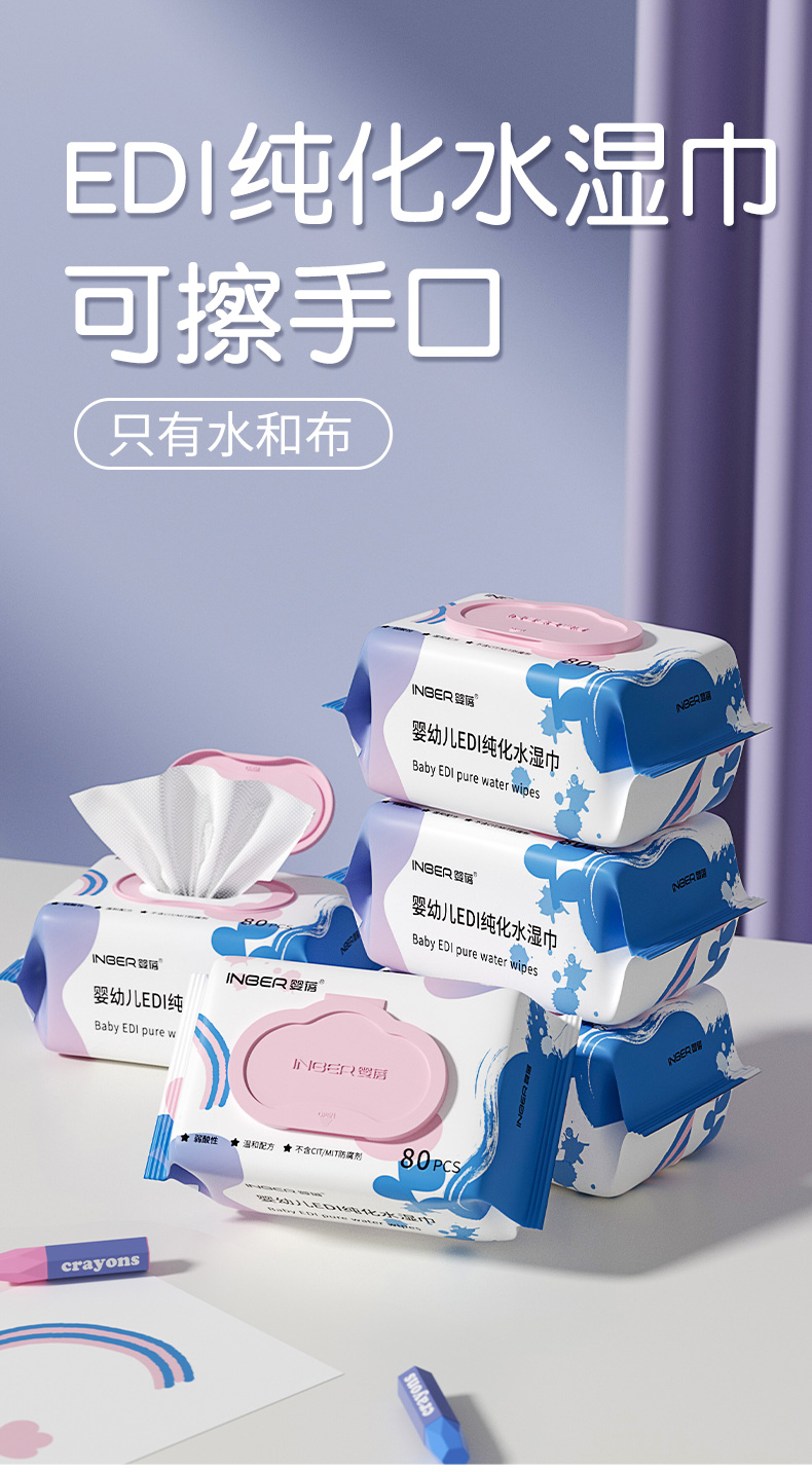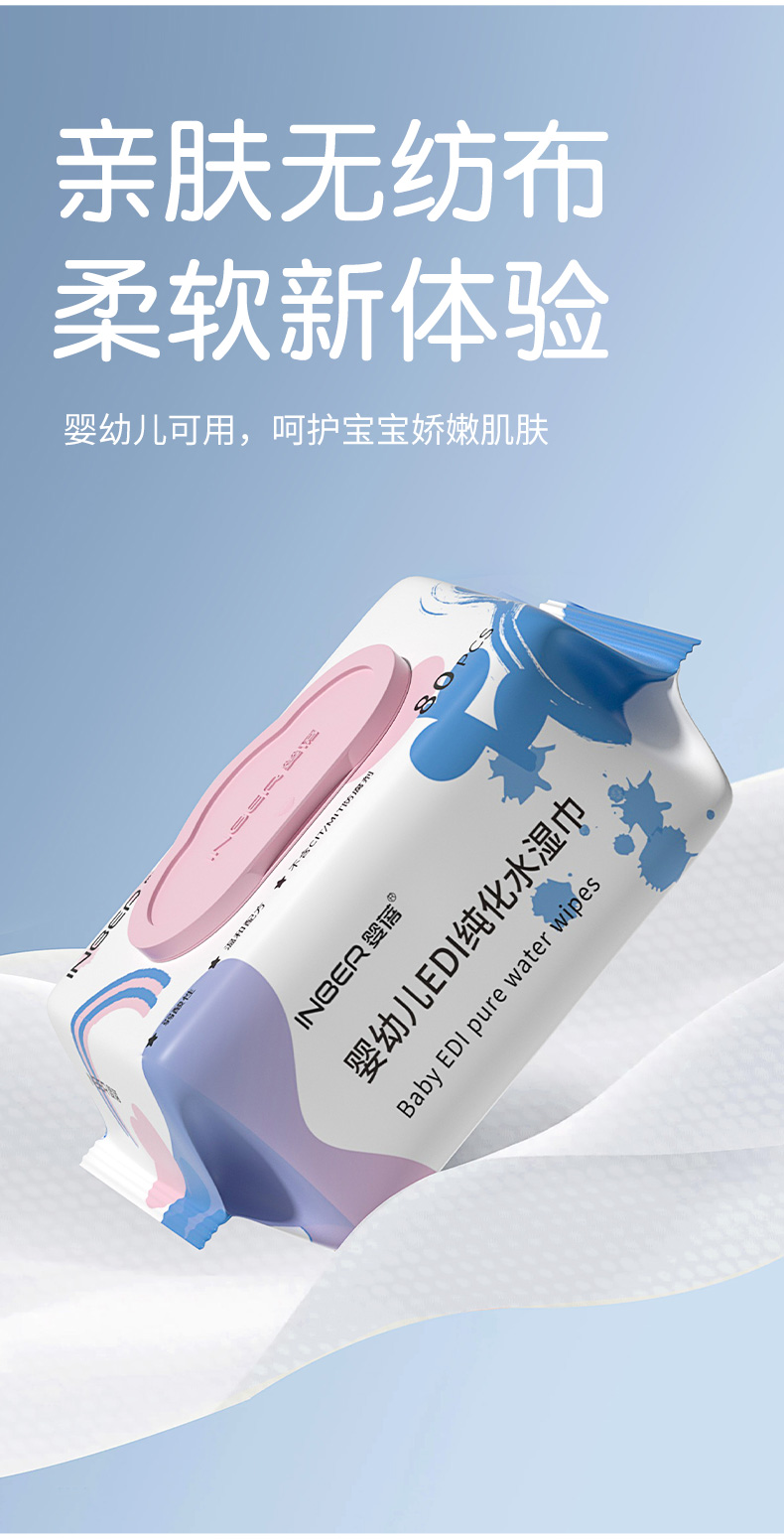 【5包】婴蓓INBER EDI纯水湿巾大包加厚新生儿婴儿湿纸巾手口湿巾珍珠纹无敏配方80抽