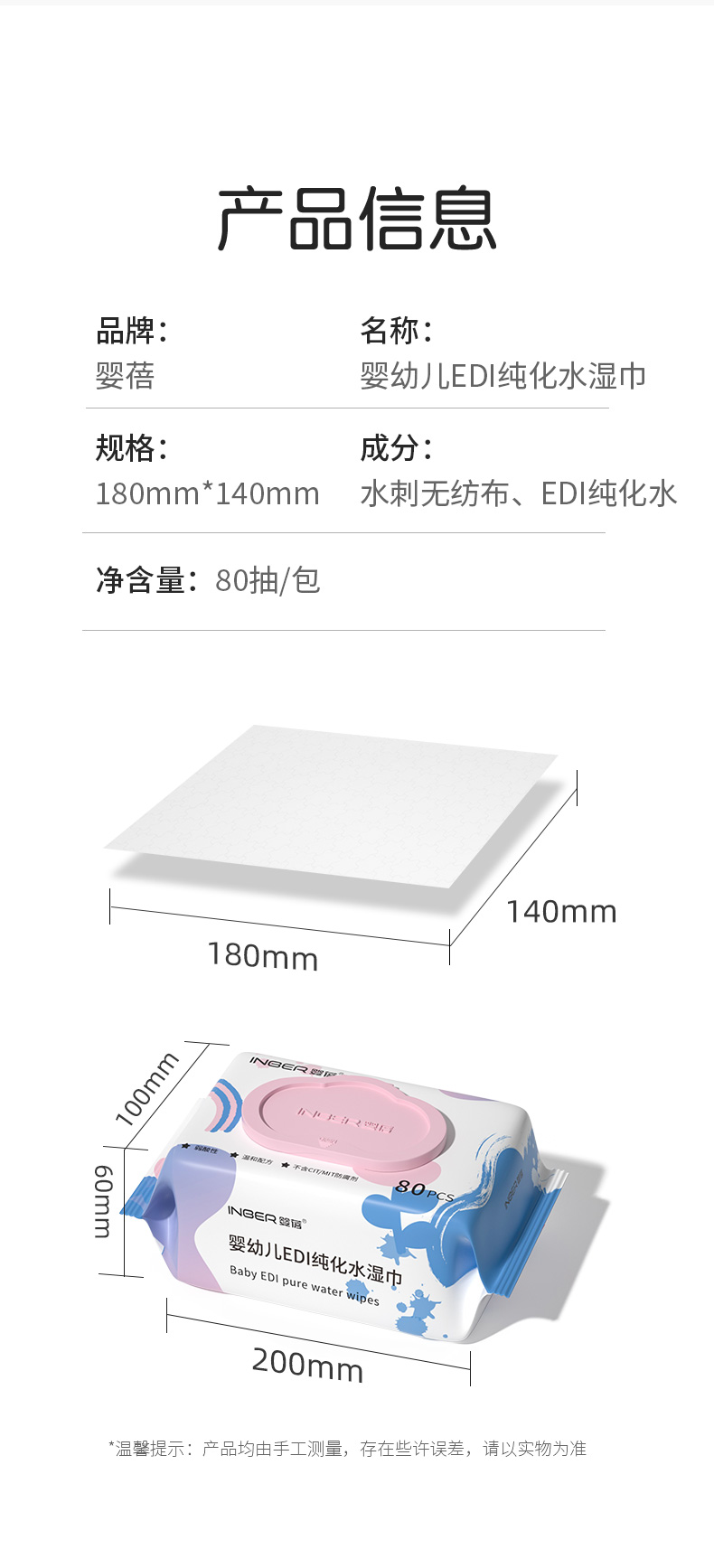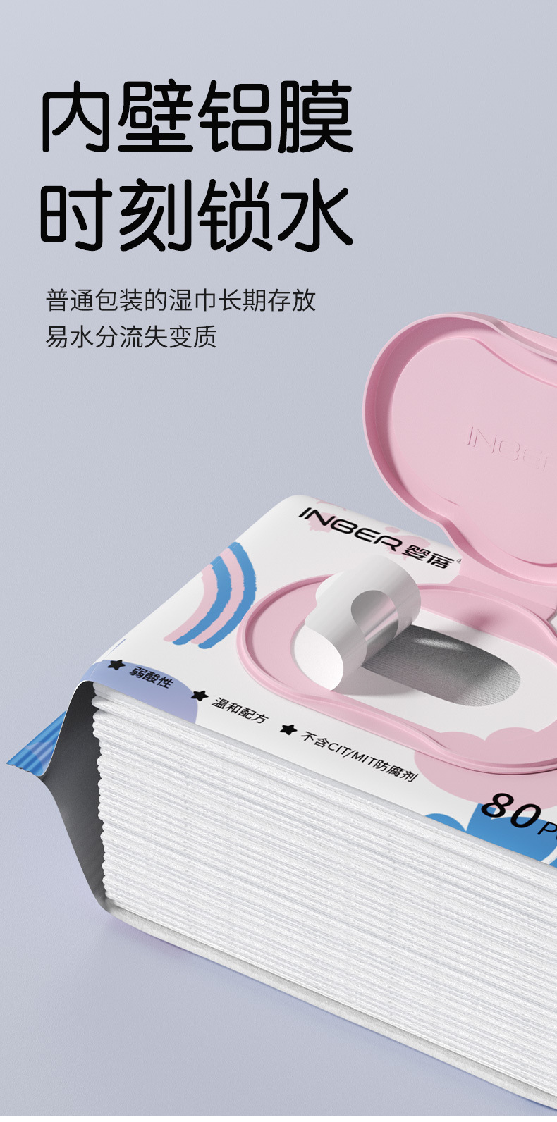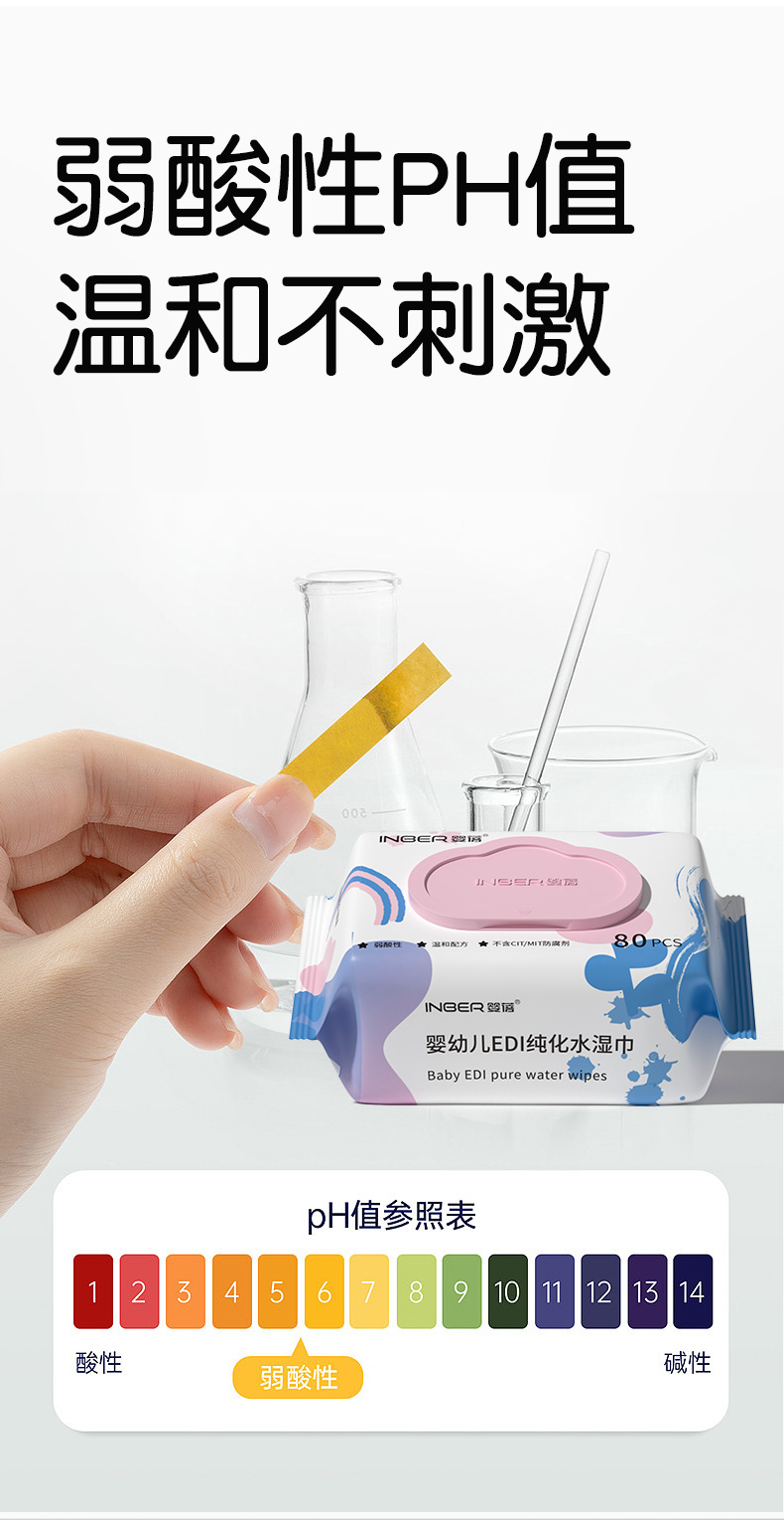 【5包】婴蓓INBER EDI纯水湿巾大包加厚新生儿婴儿湿纸巾手口湿巾珍珠纹无敏配方80抽