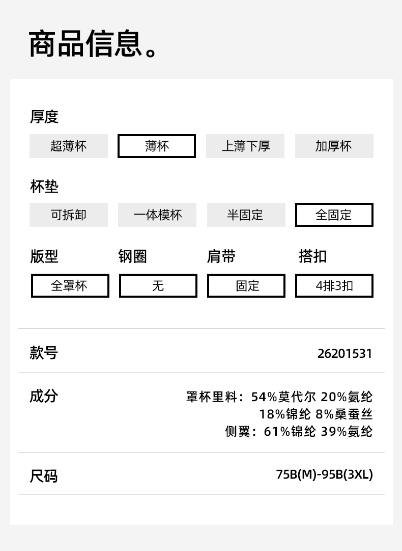 【商场同款】熳洁儿 新品养护文胸光面无痕舒适聚拢手捧杯蚕丝万能杯26201531