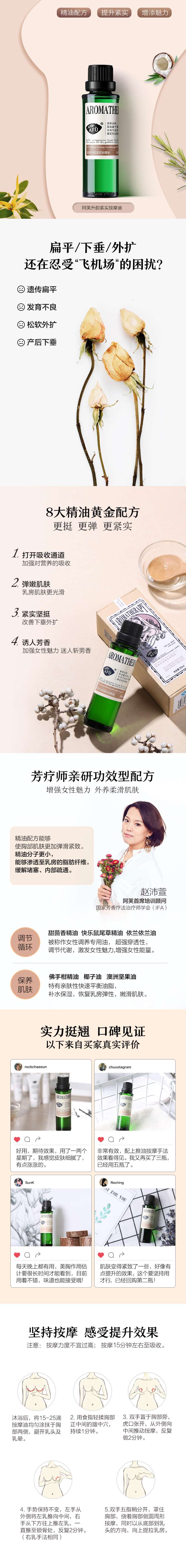 【购物即送精华资格】阿芙升韵紧实按摩油30ml 胸部按摩紧致提升JPY带授权招加盟代理