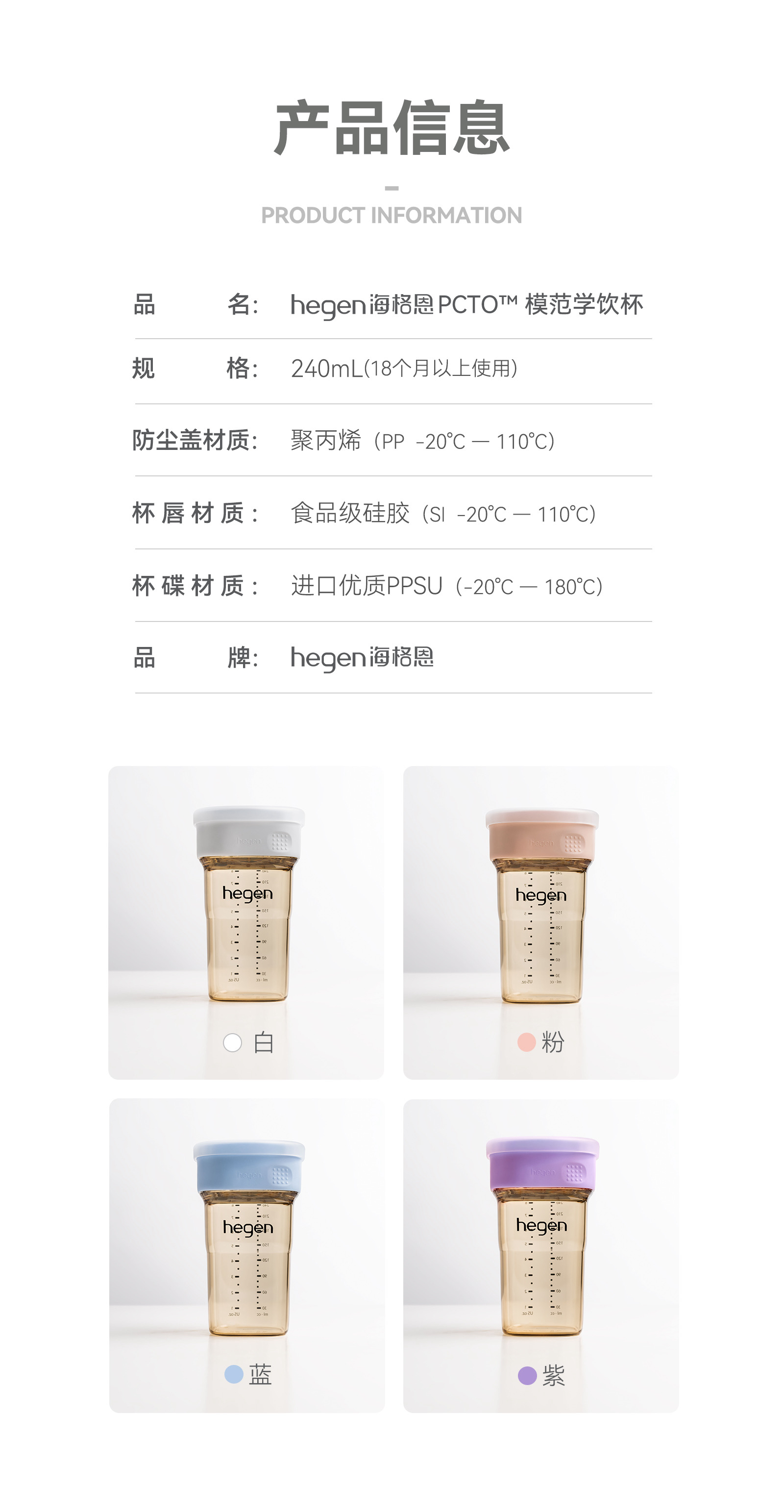 Hegen海格恩 模范学饮杯240ml