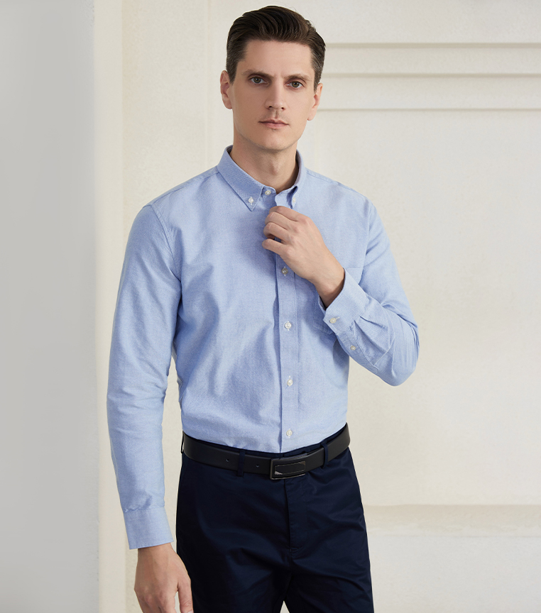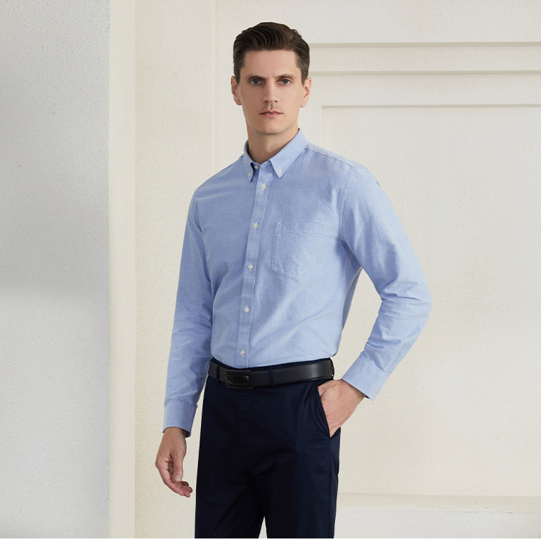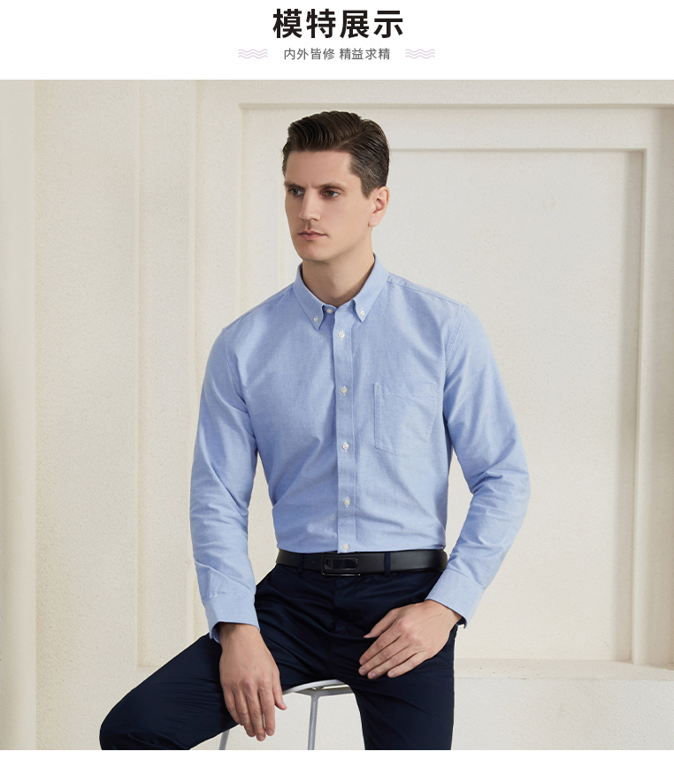 【男士纯棉衬衫】22年夏季新品男士衬衫商务通勤浅花蓝内搭上衣