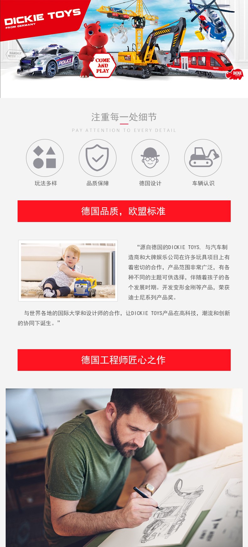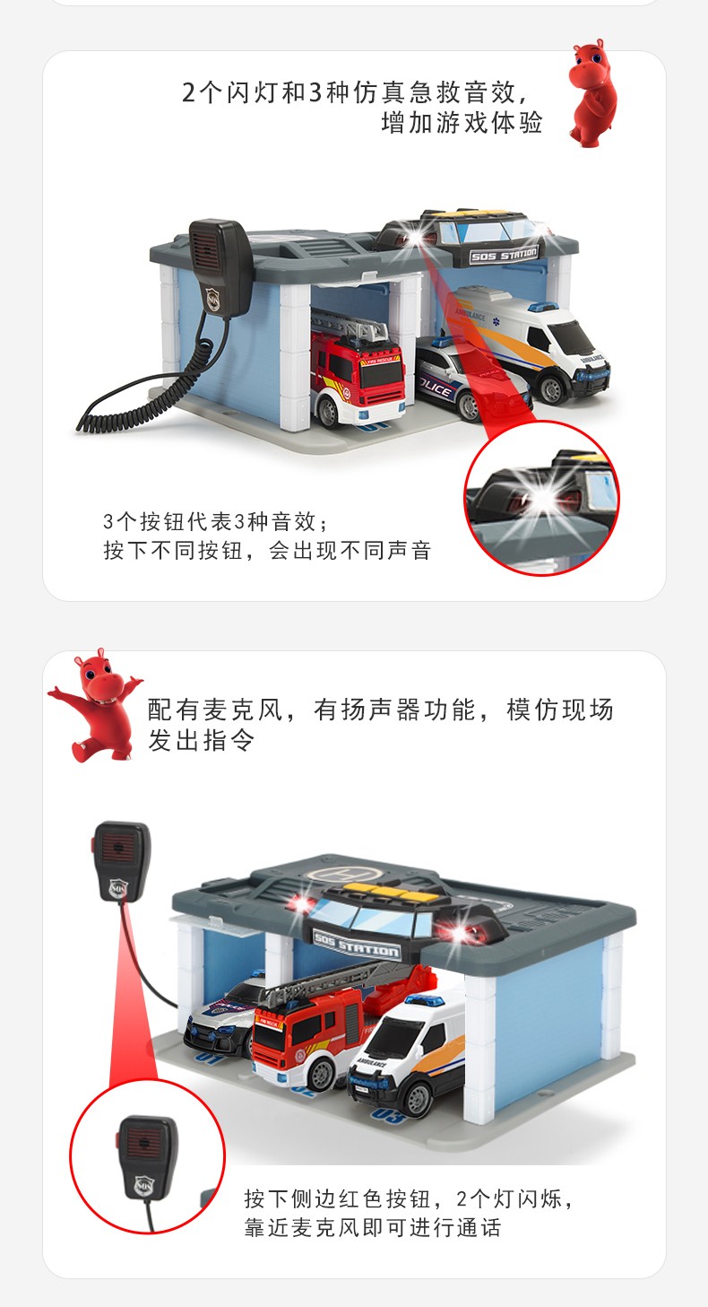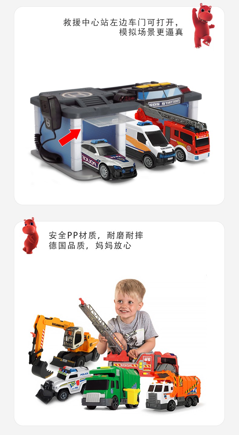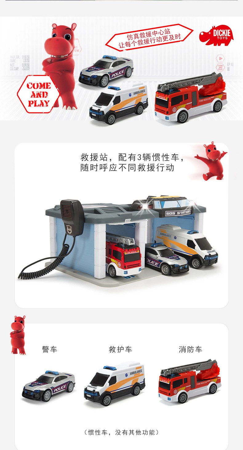Dickie toys仿真救援指挥中心警车消防车救护停车场套装儿童玩具车男孩3岁+