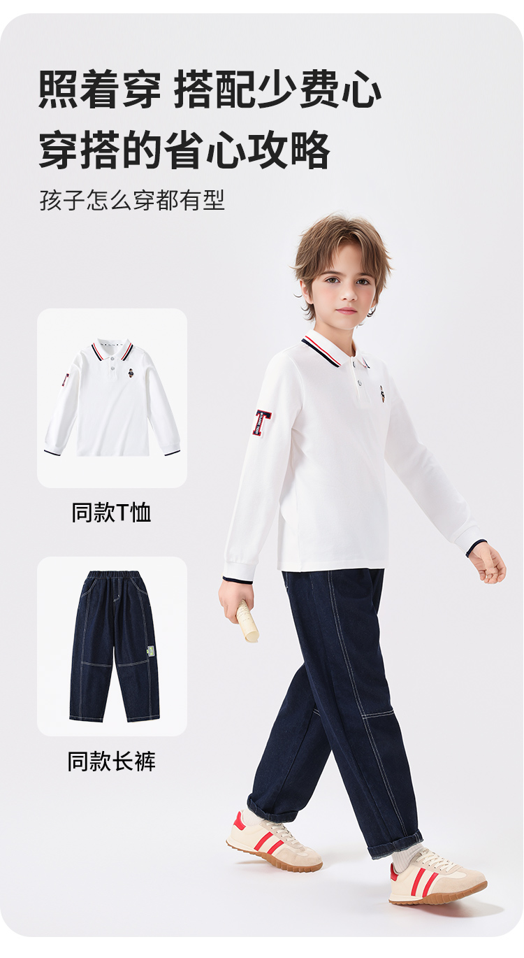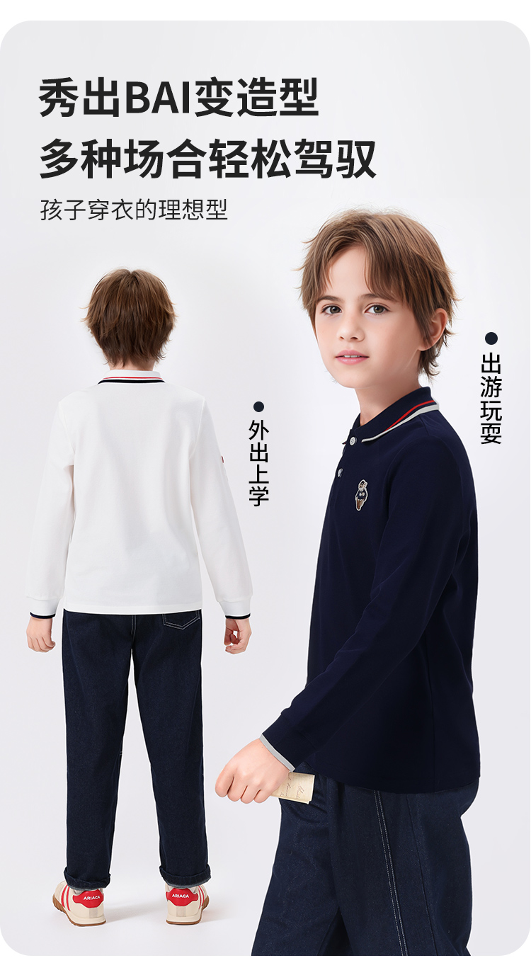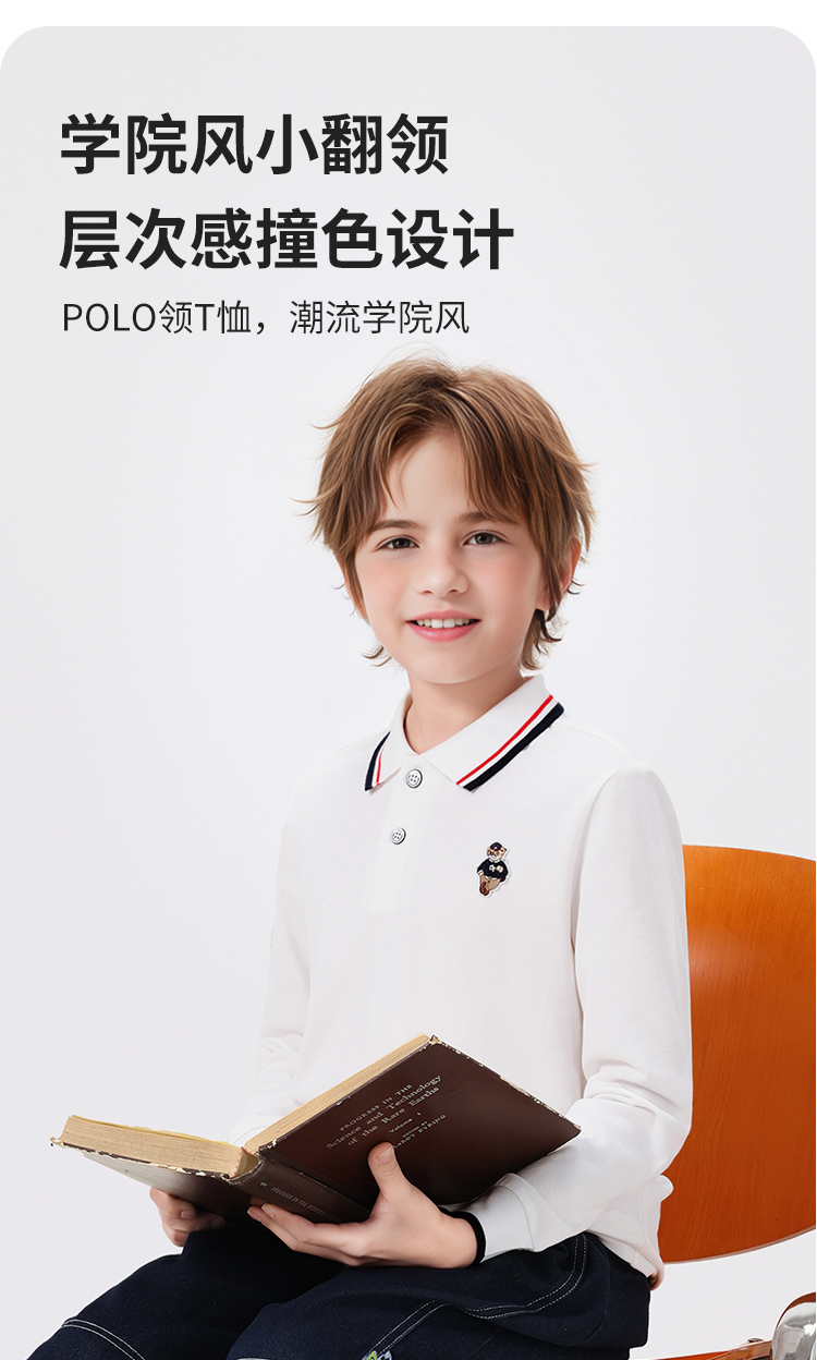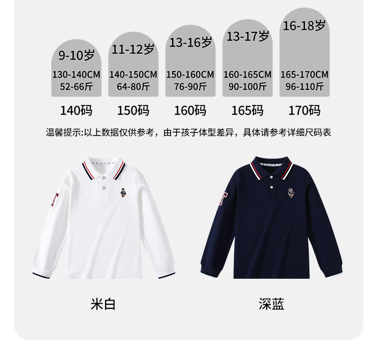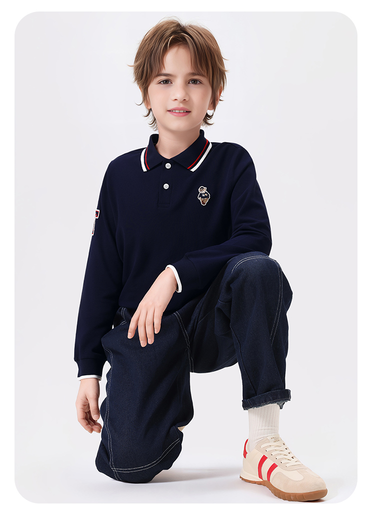 【140-170】【精典泰迪】男童春秋POLO衫儿童长袖翻领t恤
