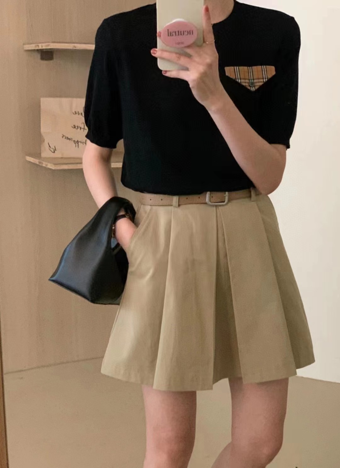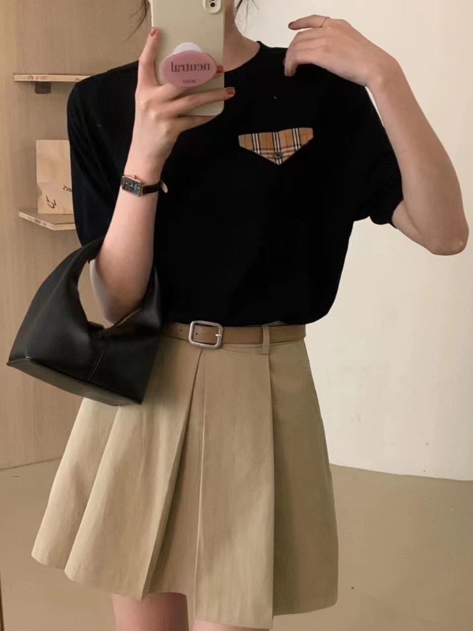 040 # 黑 灰 M L 短袖圆领针织衫 不要太好看哦 很显白 超爱啊 松软好舒适 小圆领的设计也是通勤简约百搭的
