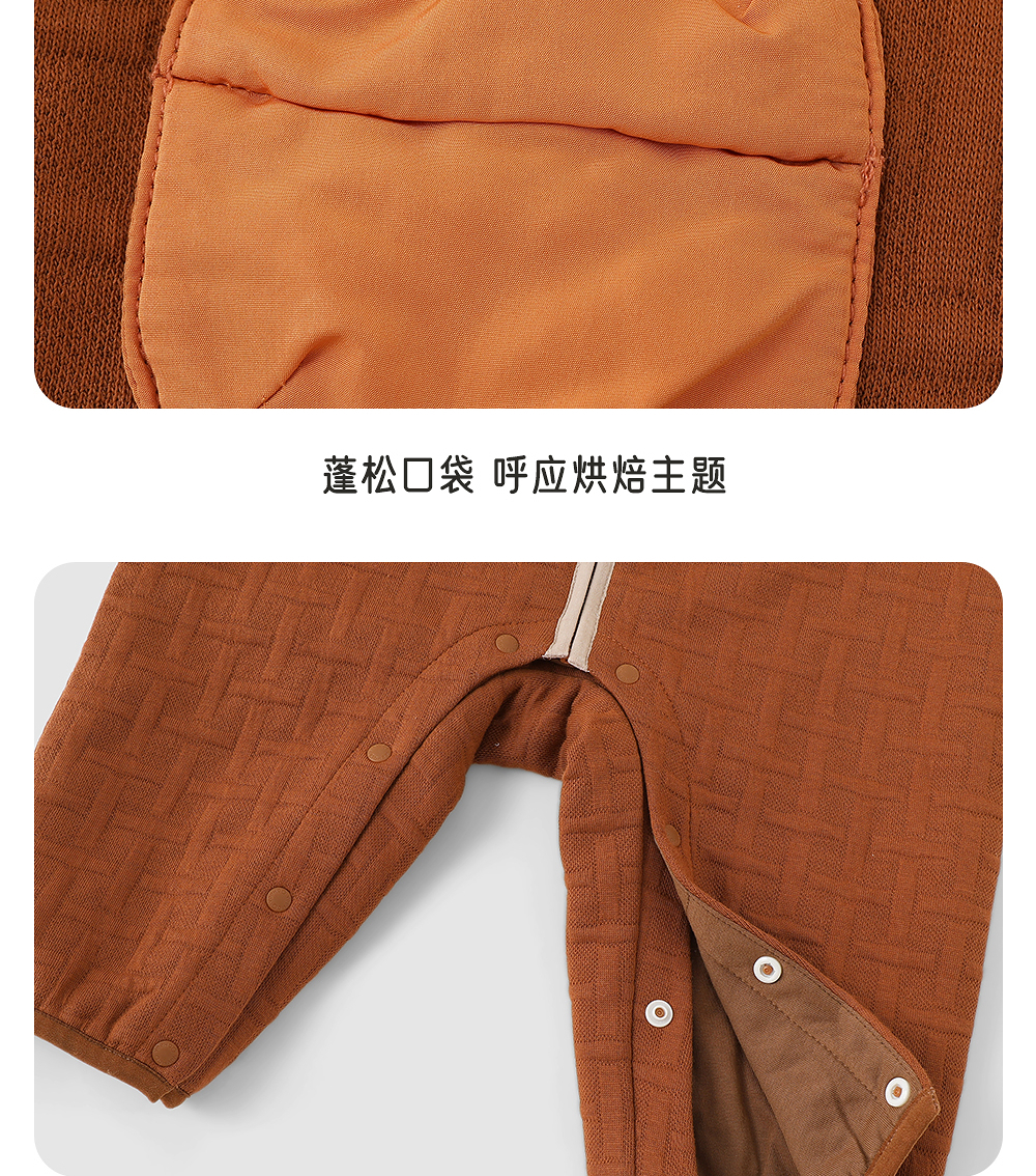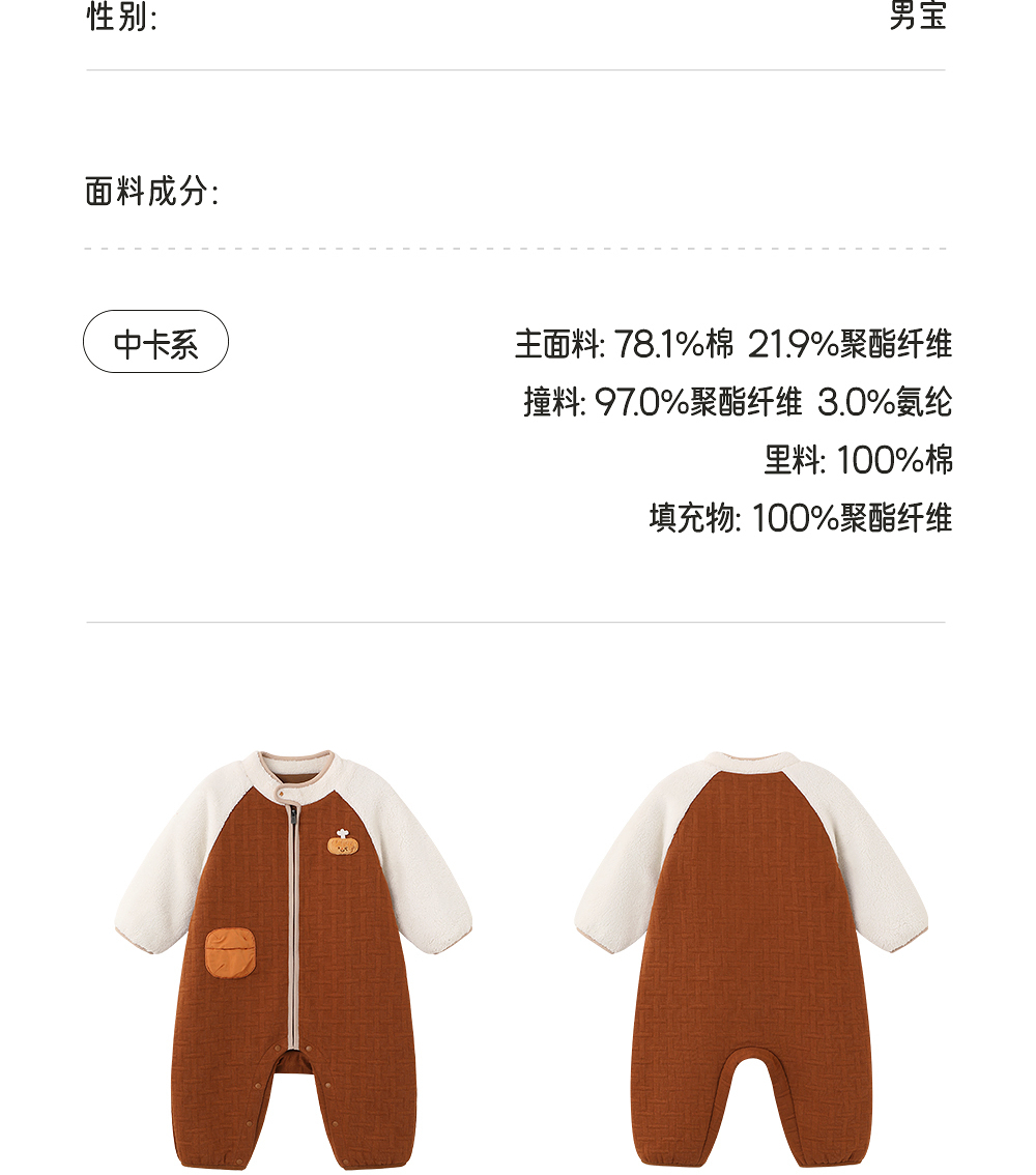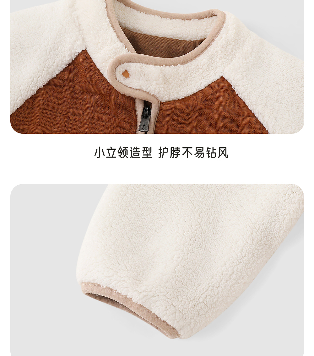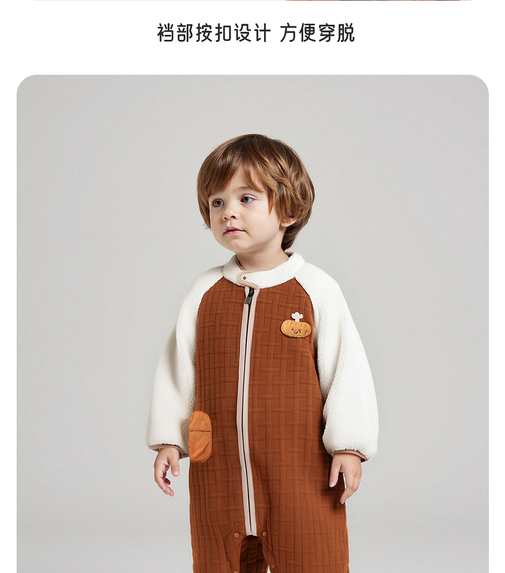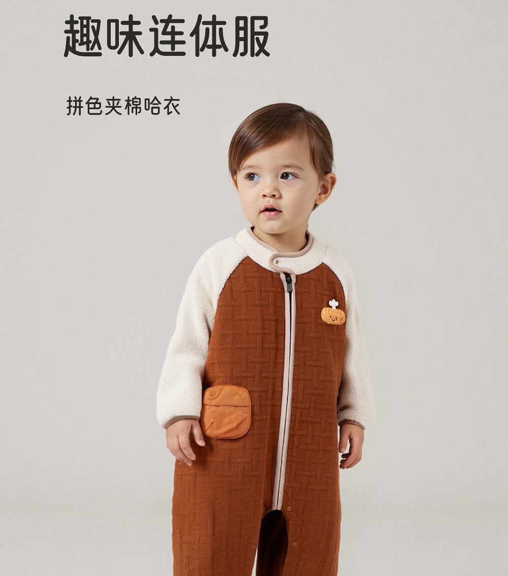 英氏婴儿夹棉连体衣秋冬羊羔绒男童保暖撞色男宝衣服YRHAJ4R018A
