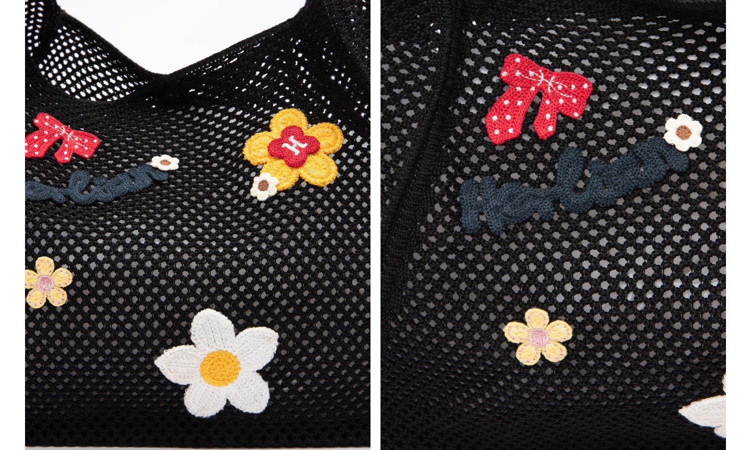 HERLIAN 2026年春季新品蝴蝶结仿手绣刺绣标镂空女士托特包