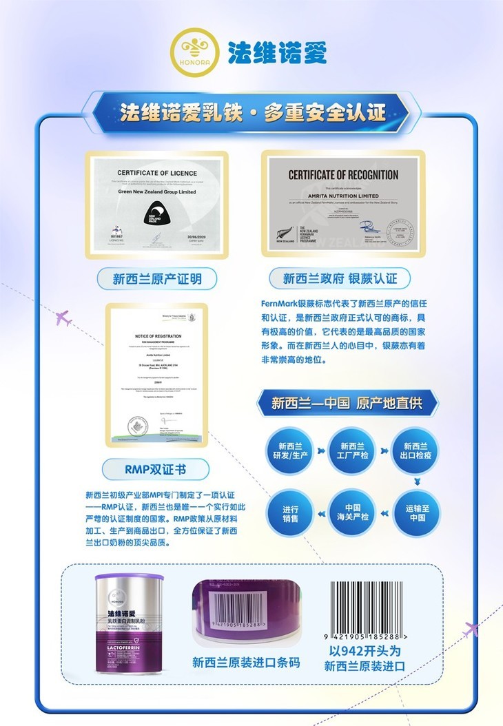 新西兰 法维诺爱 乳铁蛋白调制乳粉 60g【乳铁蛋白】