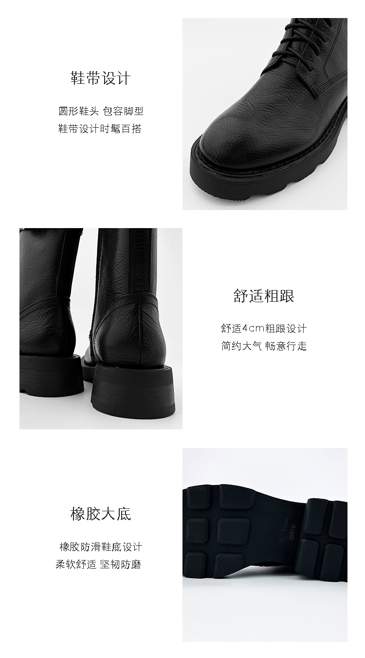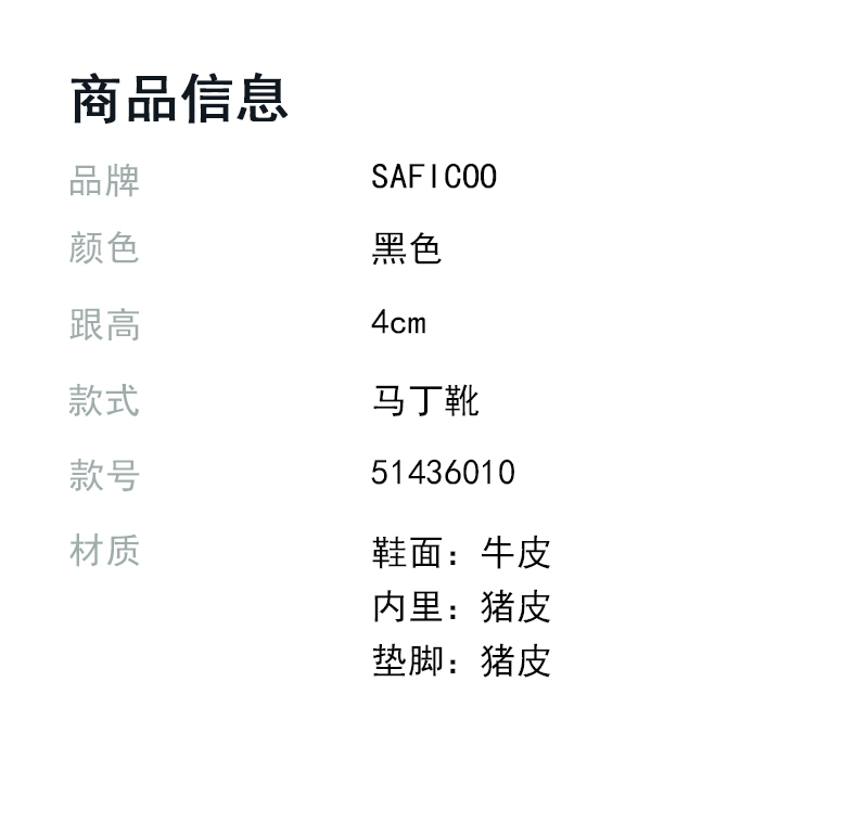 SAFICOO 时髦帅气 圆头真皮女士马丁靴短靴