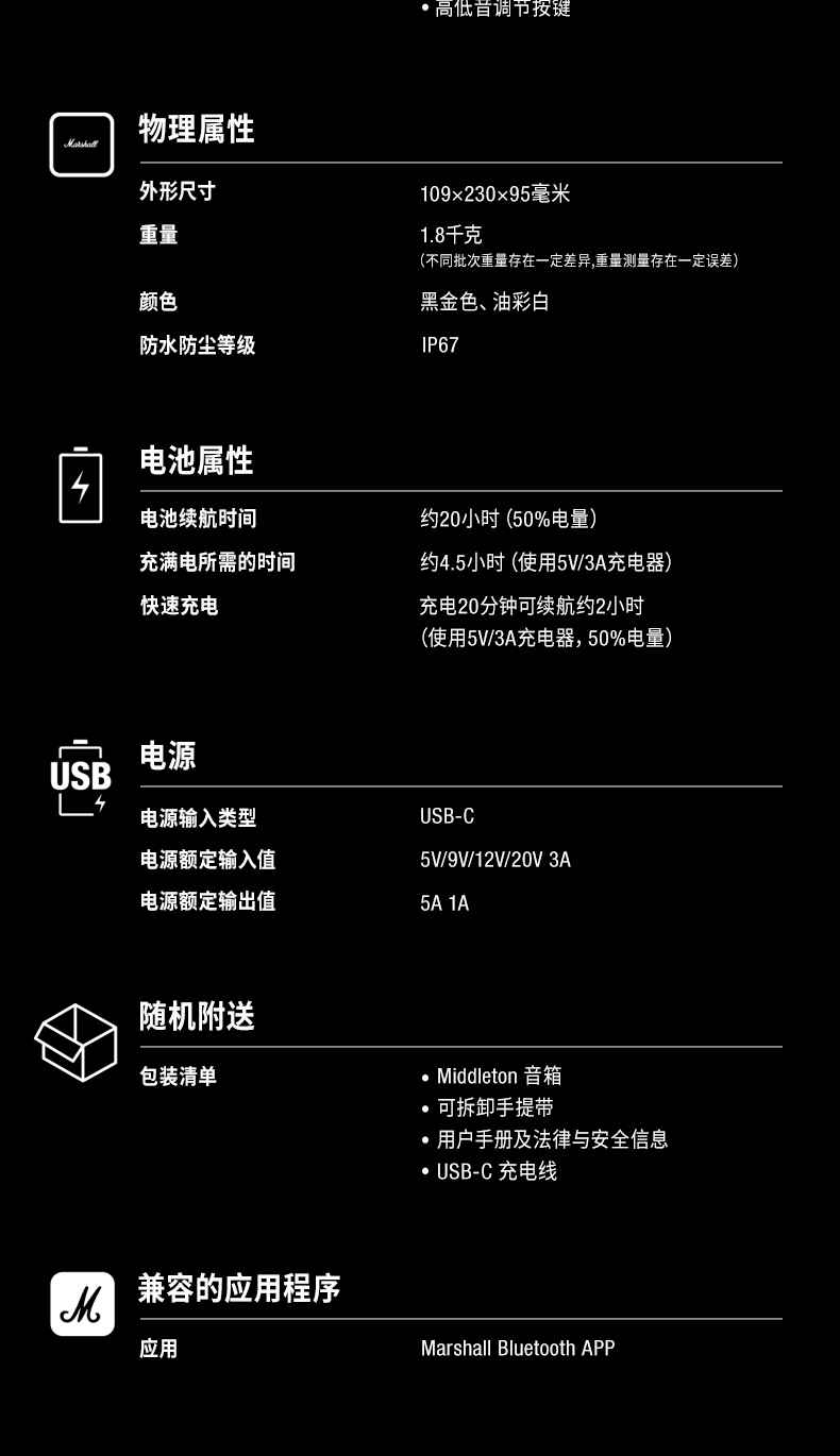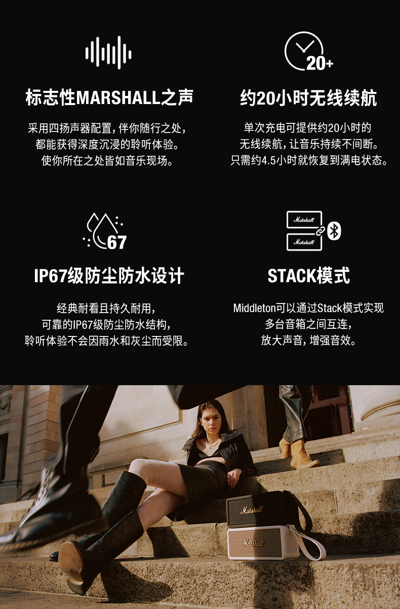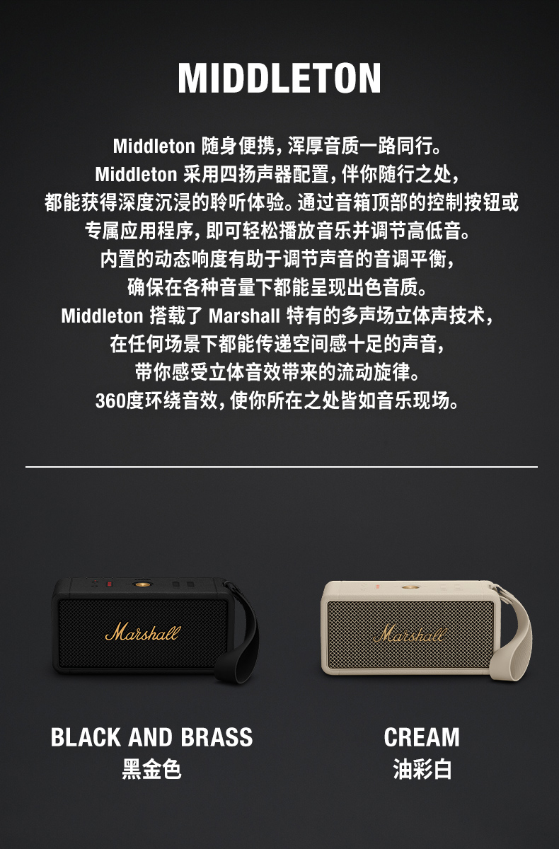 Marshall/马歇尔 Middleton 便携蓝牙音箱