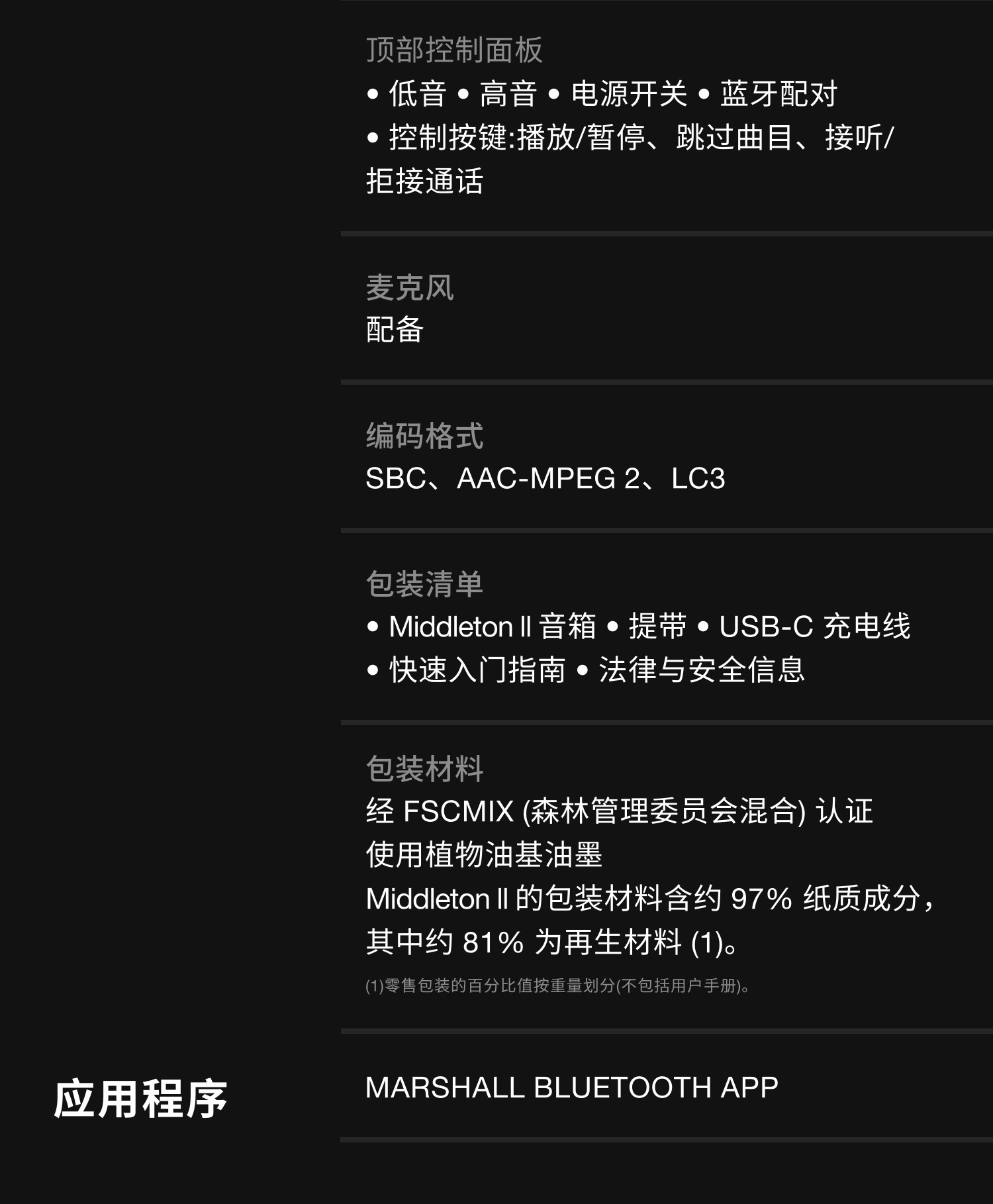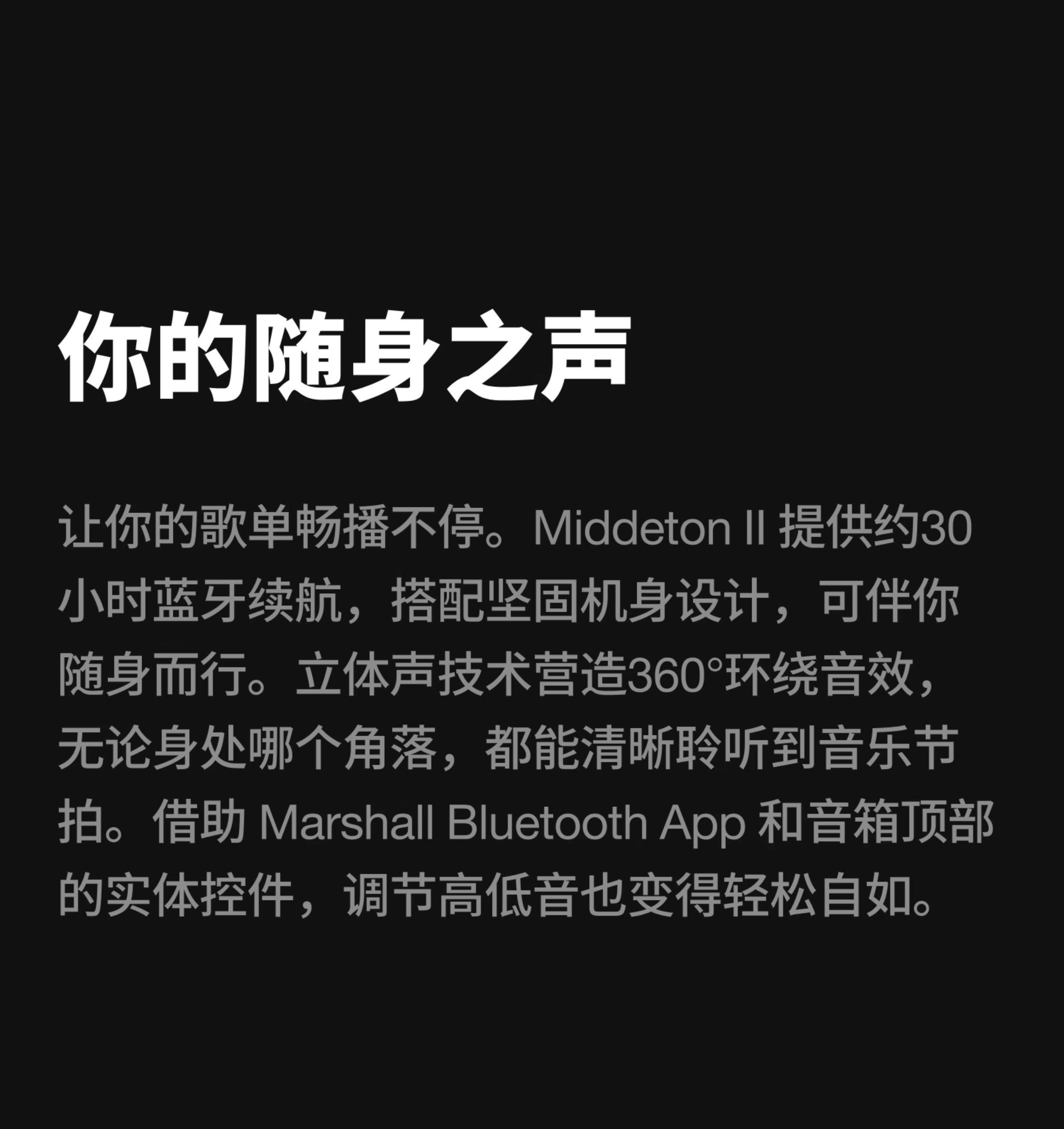 Marshall/马歇尔 Middleton 2代 便携蓝牙音箱 户外音响小型便携蓝牙音箱低音炮