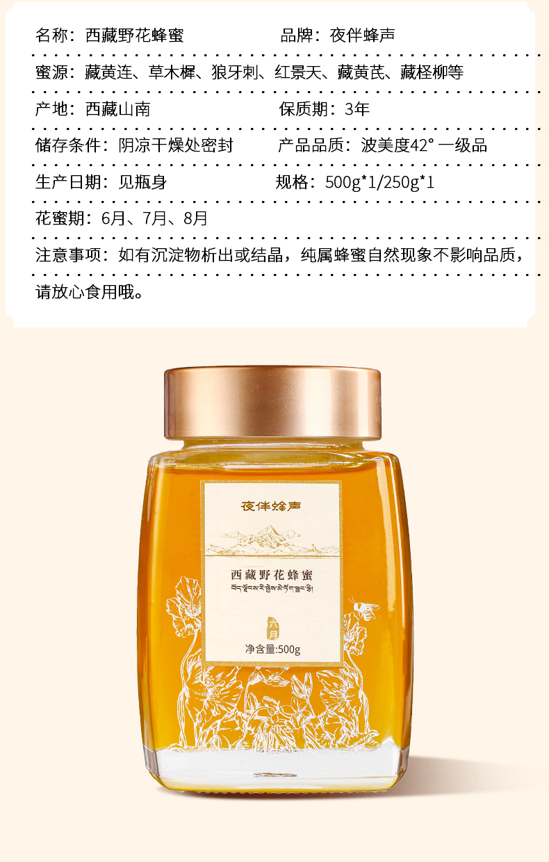 【西藏】【援藏】夜伴蜂声西藏野花蜂蜜6月/7月/8月蜜500g