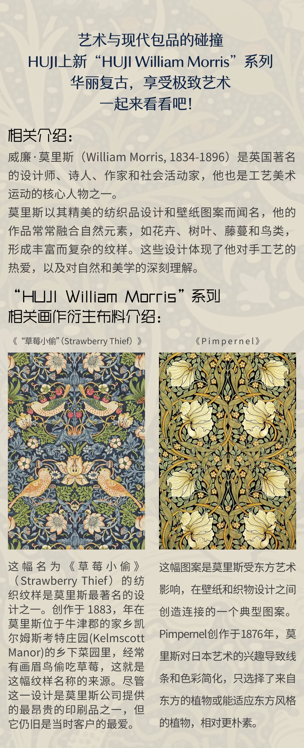HUJI祤集Sunrise手提斜挎包WilliamMorris花鸟系列