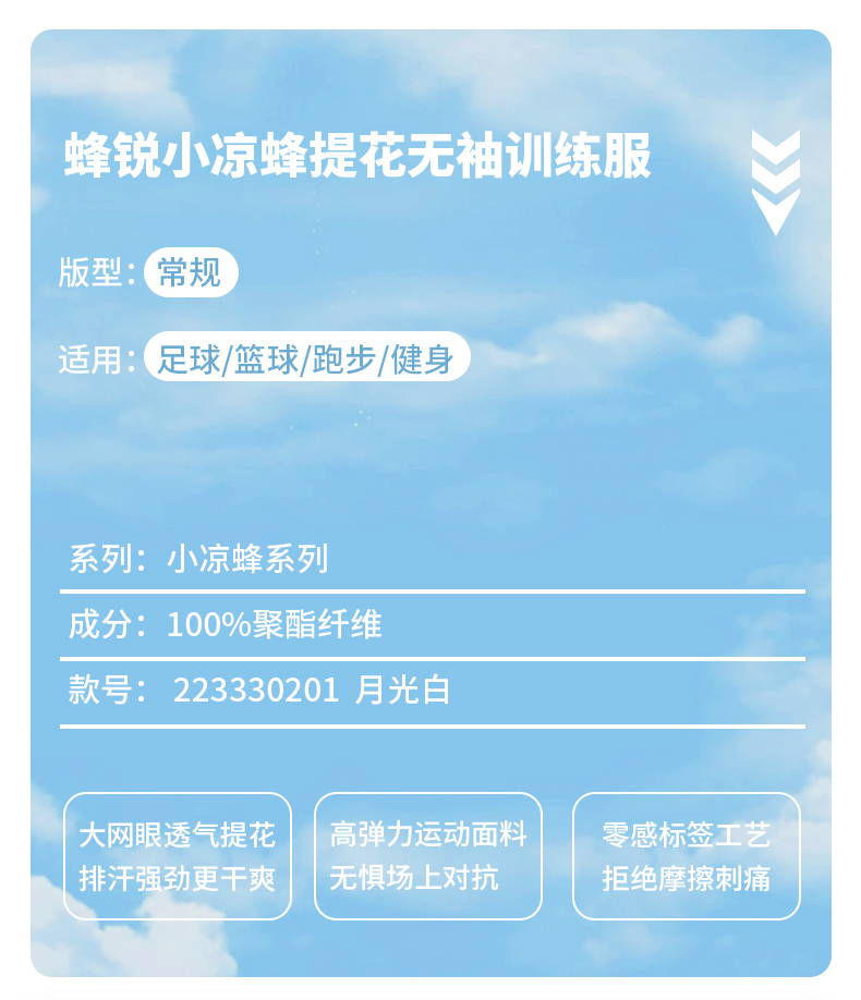 蜂锐过人王联名款小凉蜂提花无袖专业训练服透气球衣男