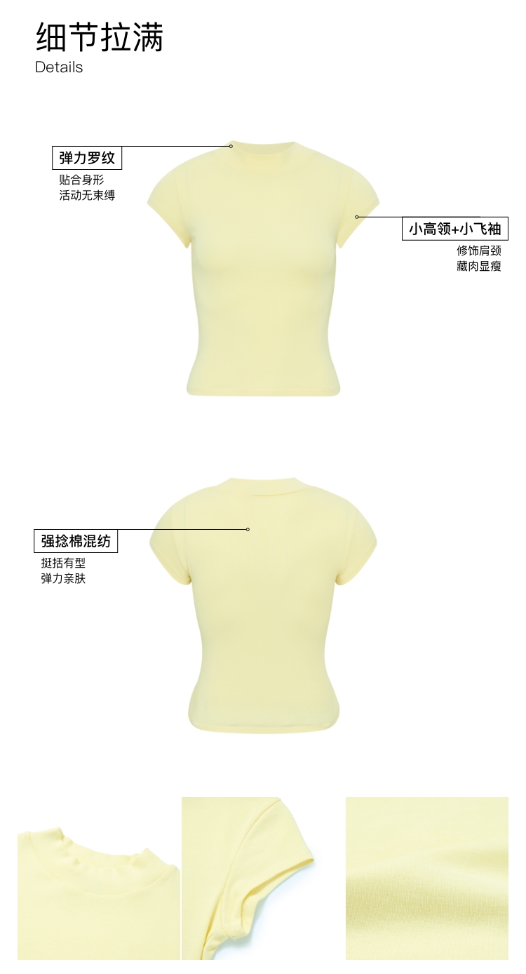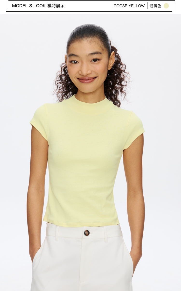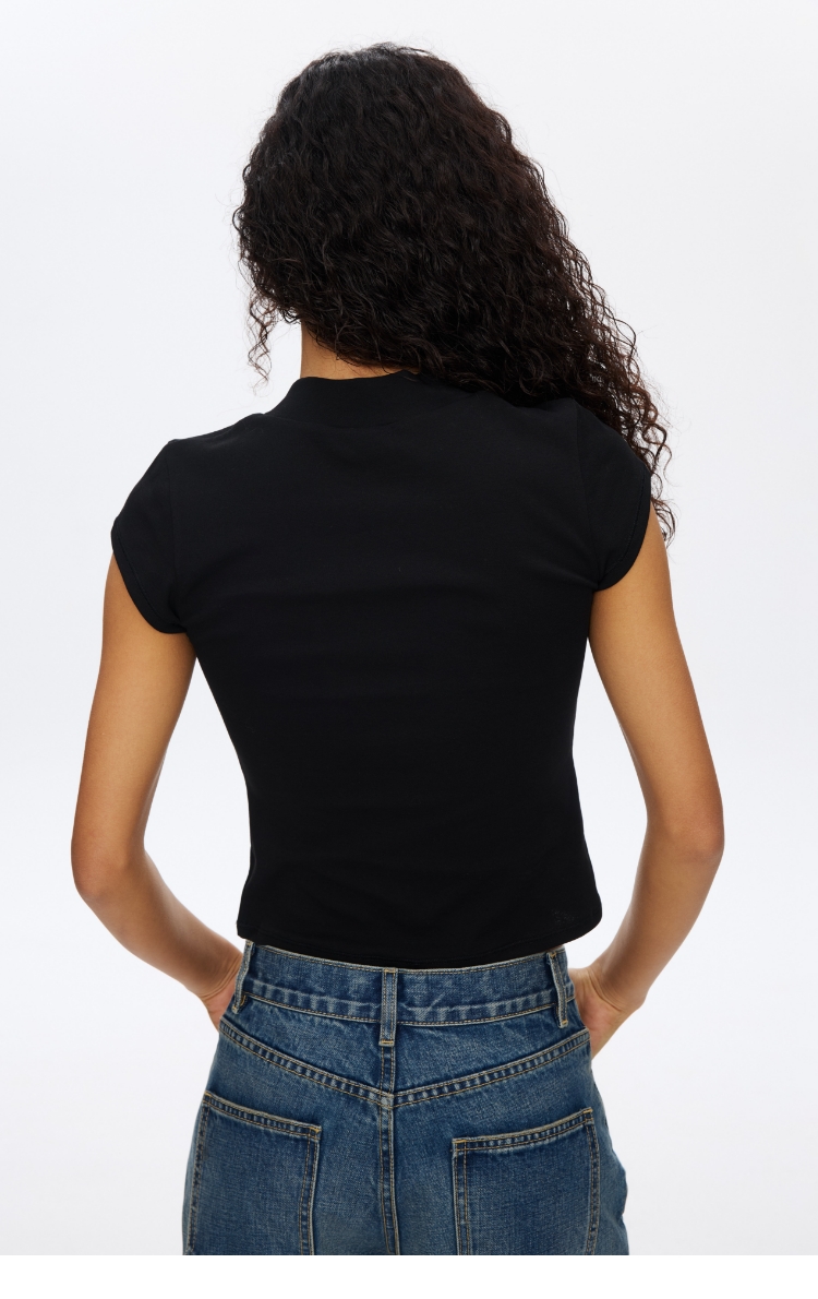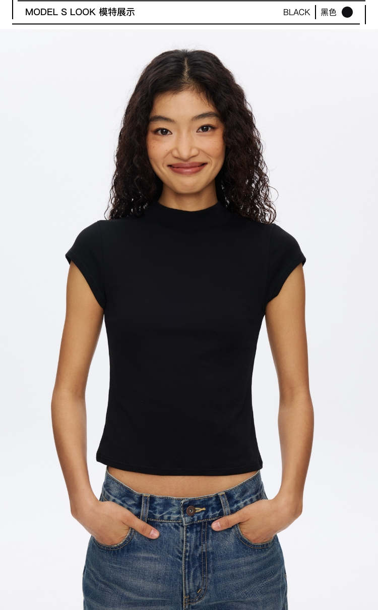 Oneup强捻小高领小飞袖T恤