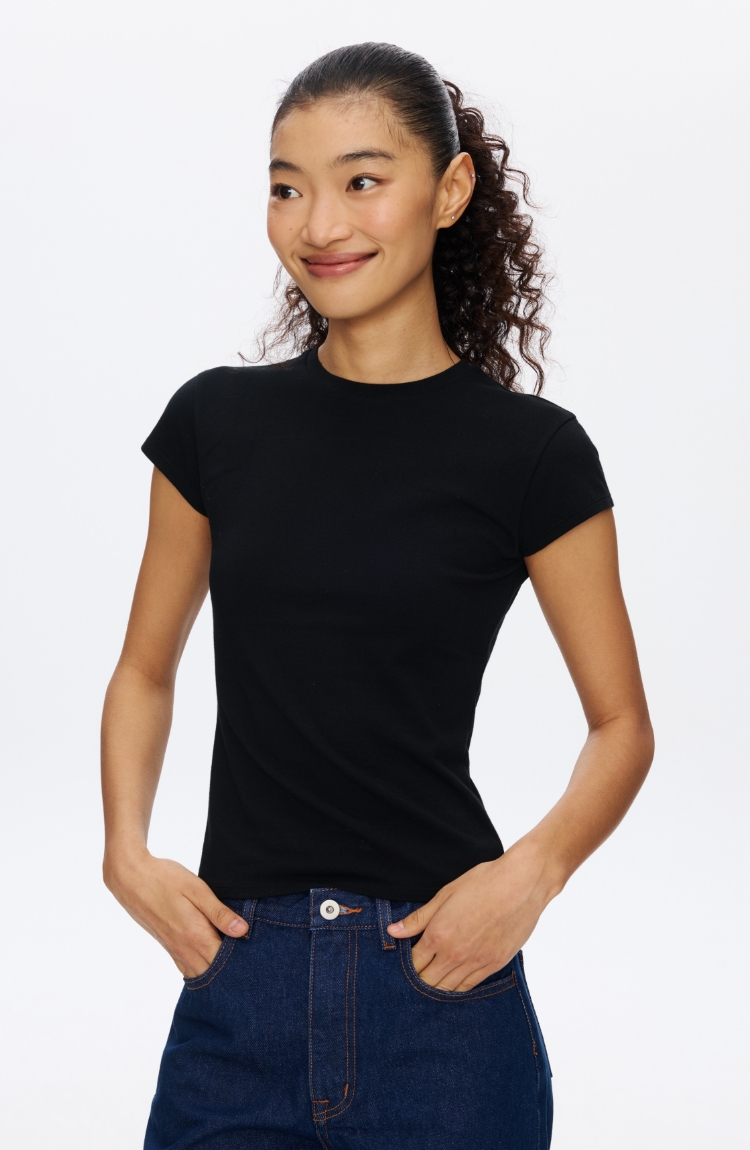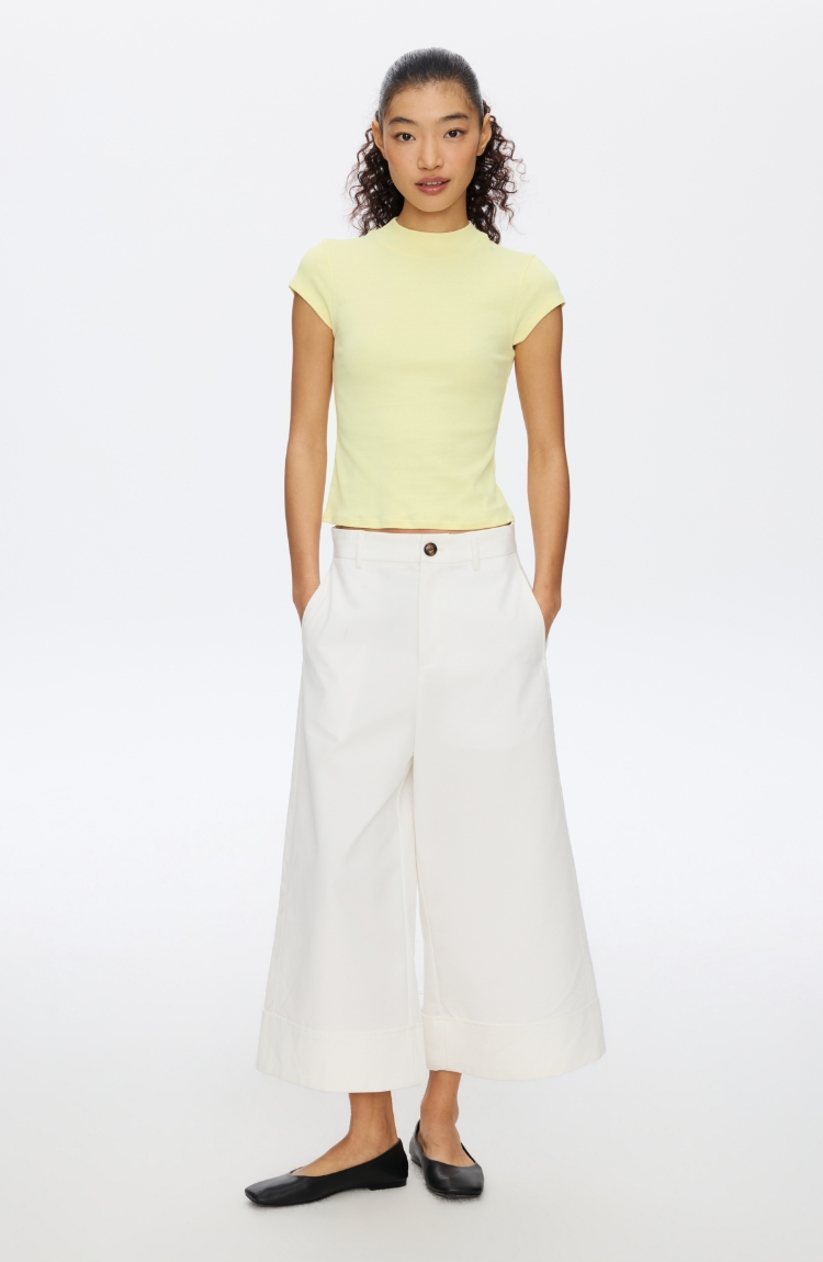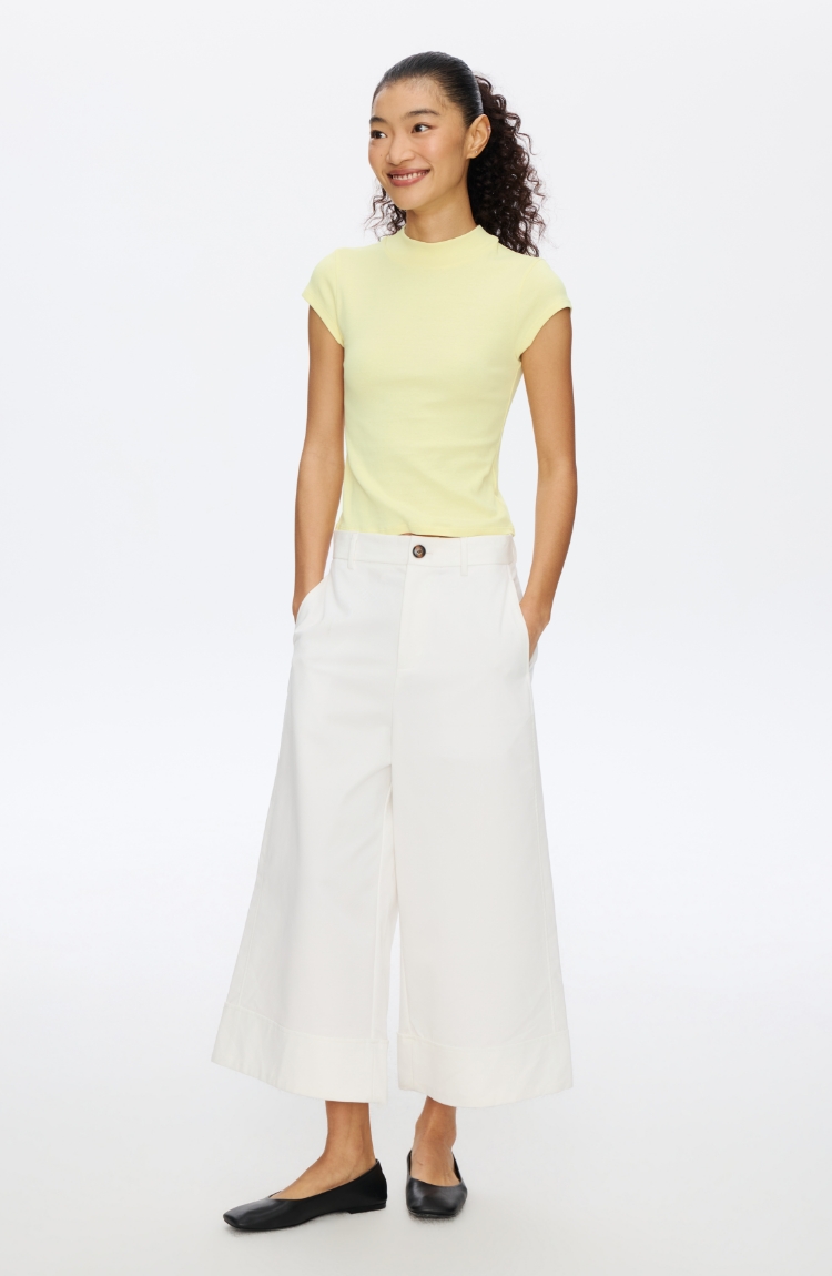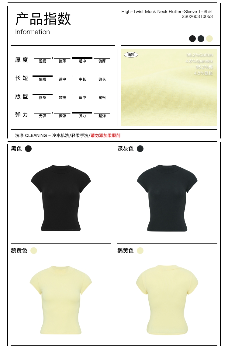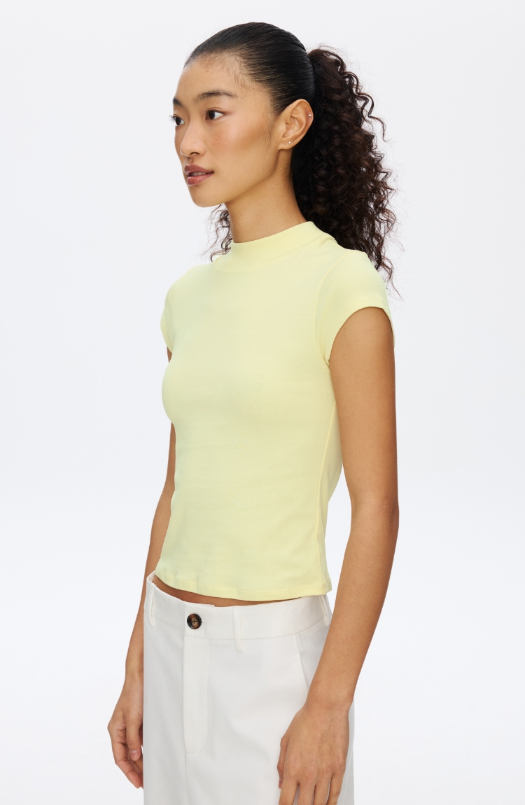 Oneup强捻小高领小飞袖T恤