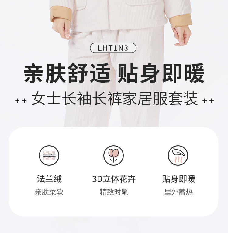 都市丽人睡衣生活家居长袖家居服法兰绒压花厚女士法兰绒套装LHT1N3