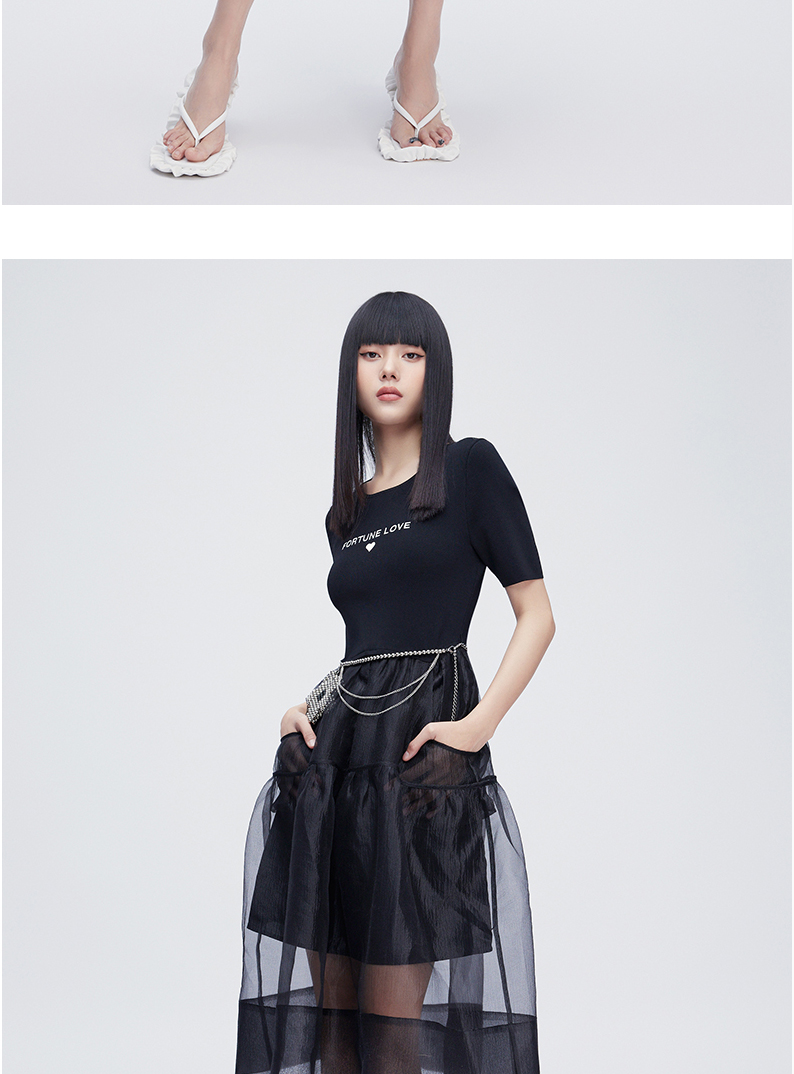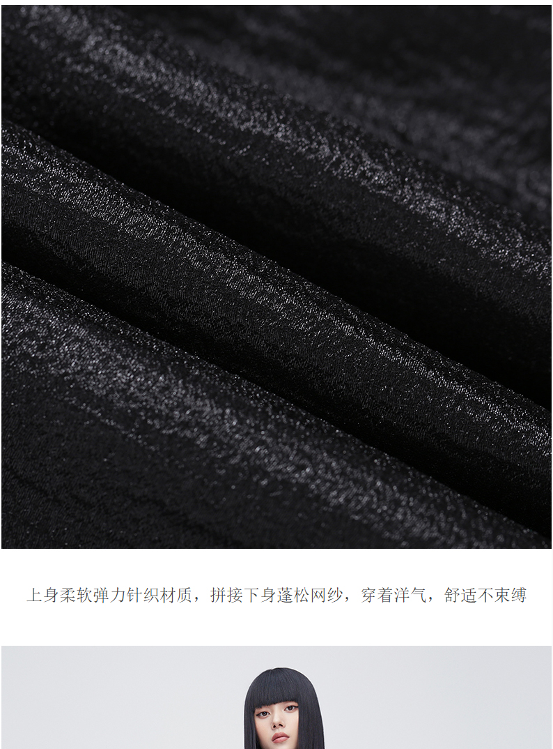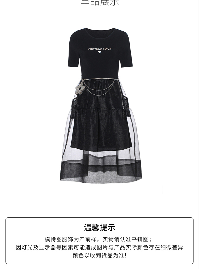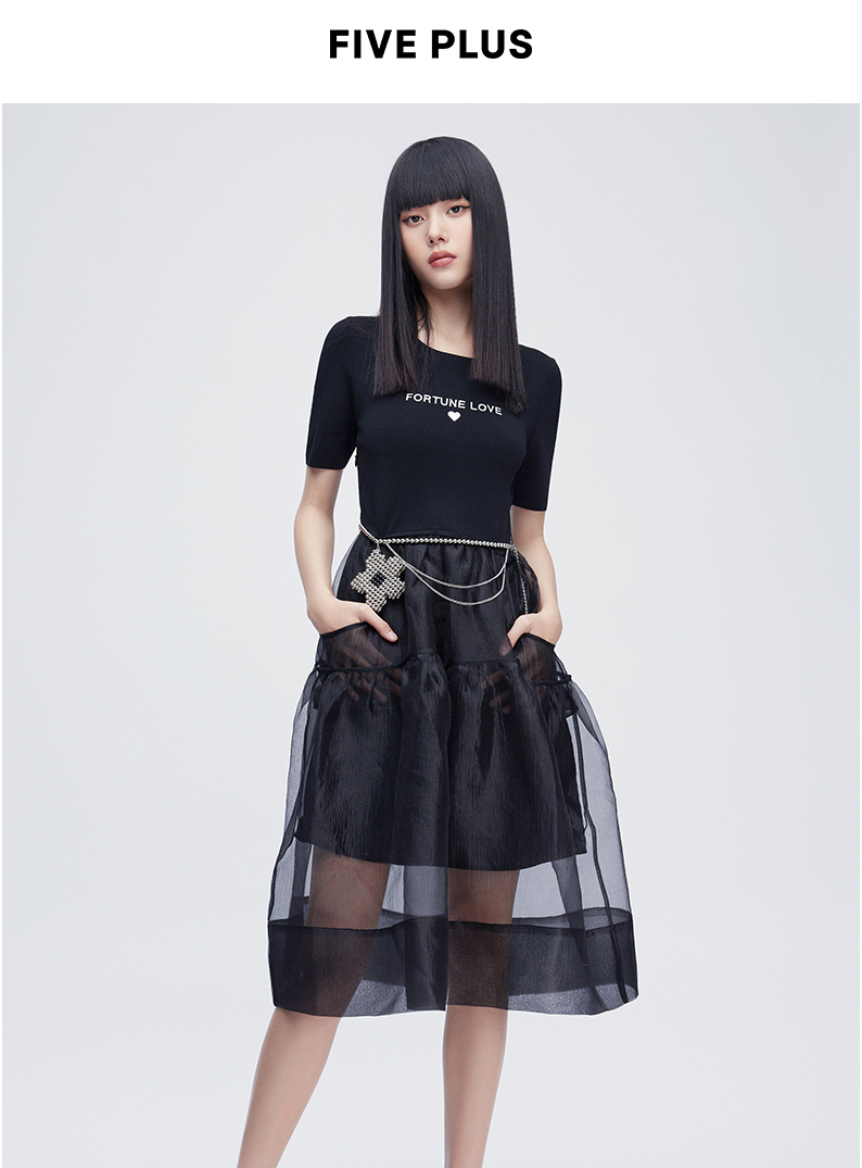 FIVE PLUS2022新款女夏装洋气拼接针织连衣裙女高腰网纱裙设计感2WN2083200