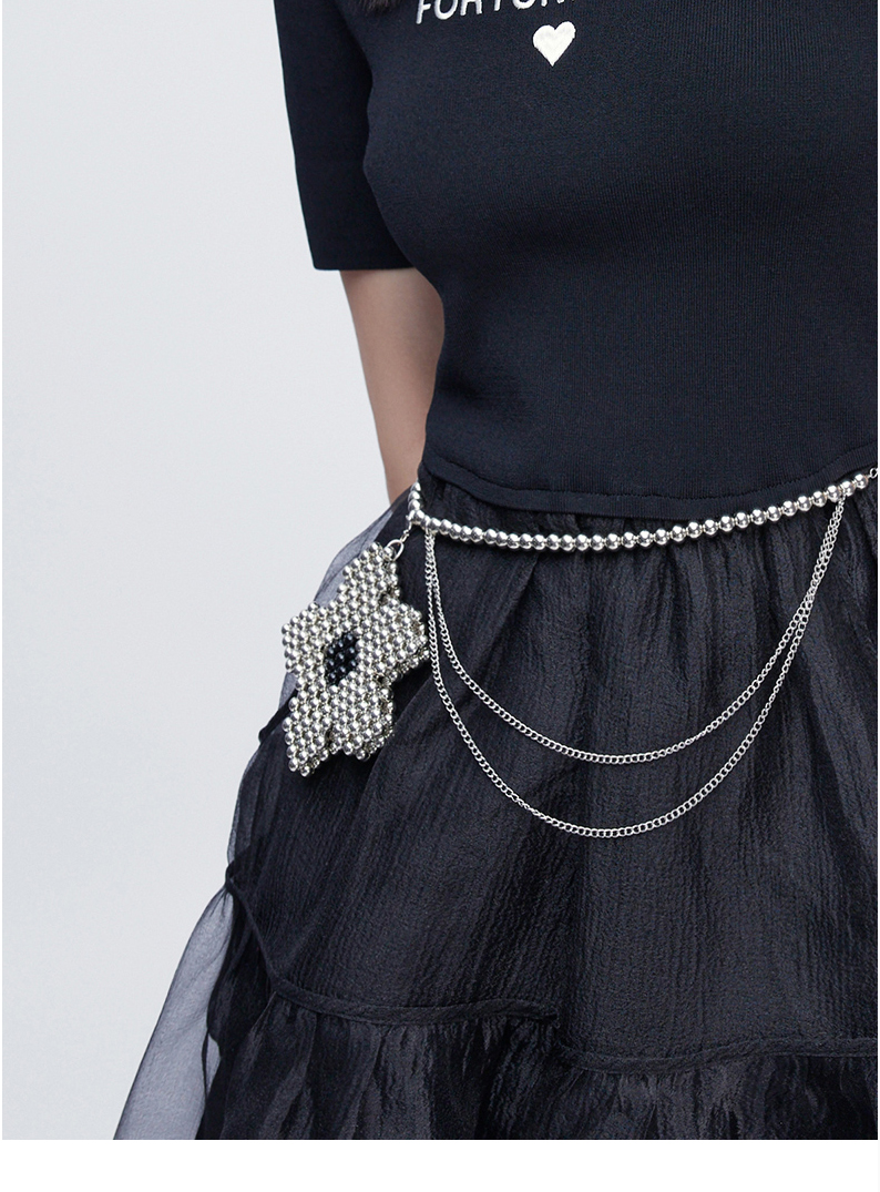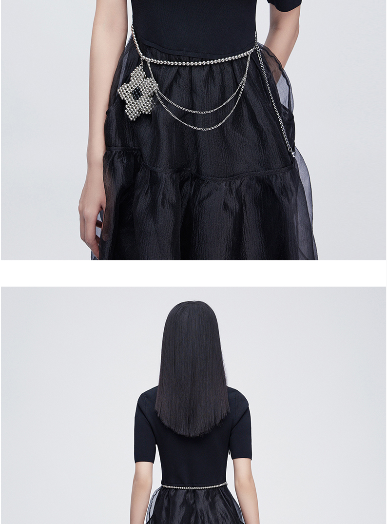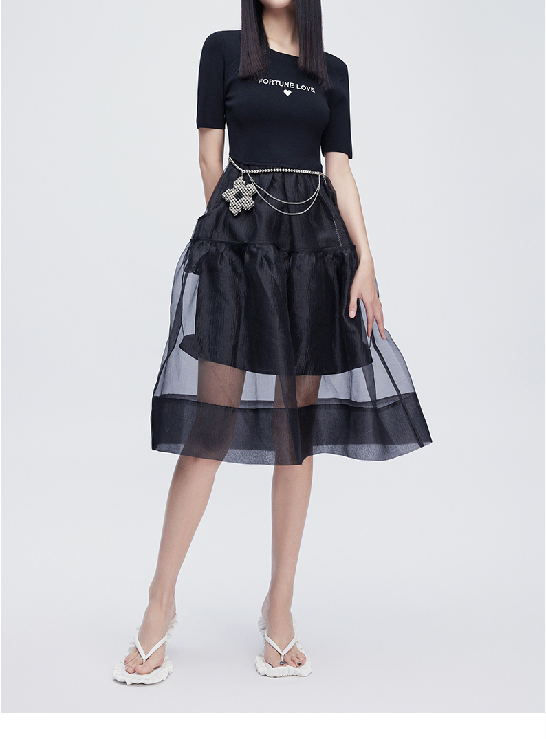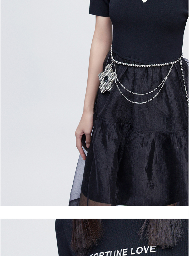 FIVE PLUS2022新款女夏装洋气拼接针织连衣裙女高腰网纱裙设计感2WN2083200