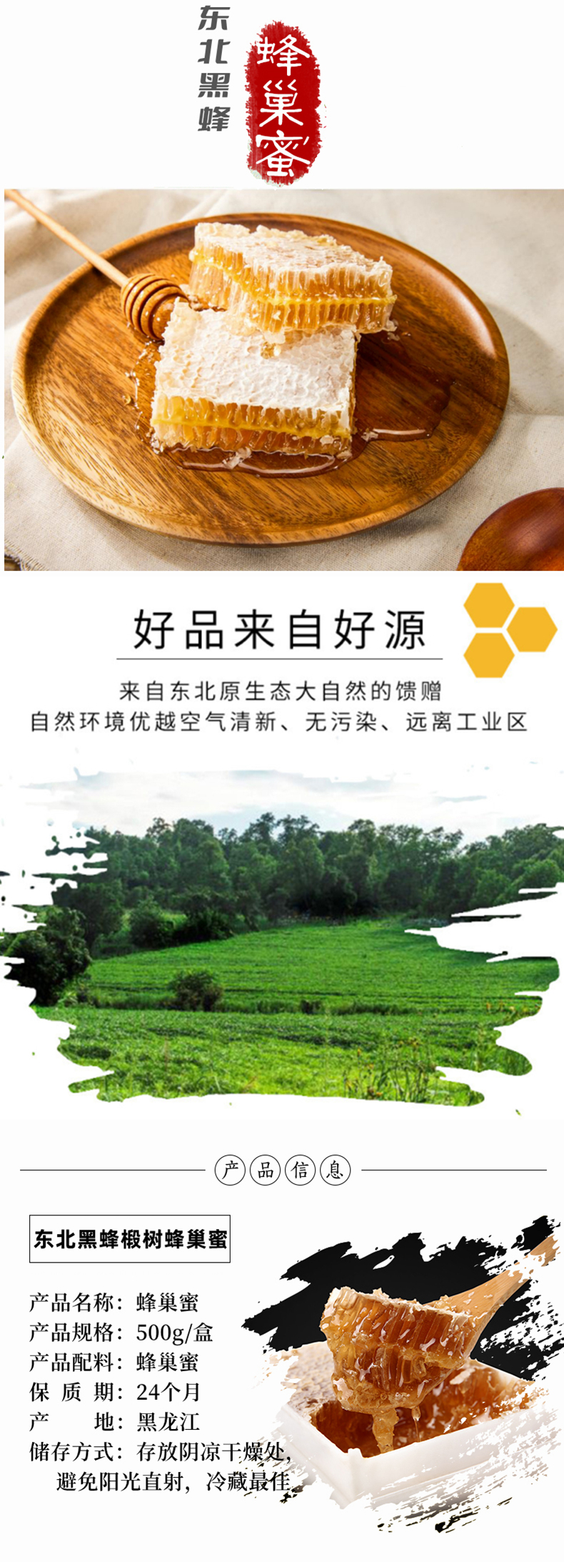 东北黑蜂椴树蜂巢蜜500克盒装