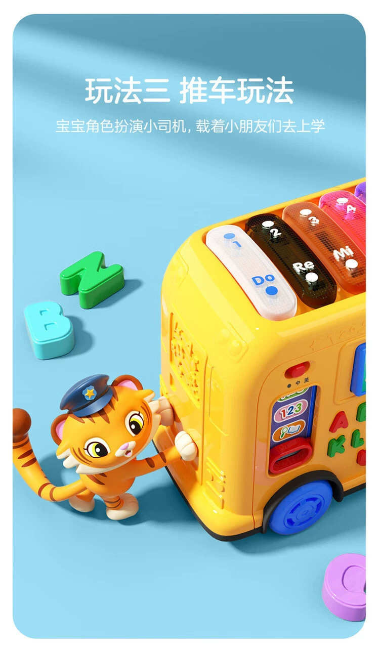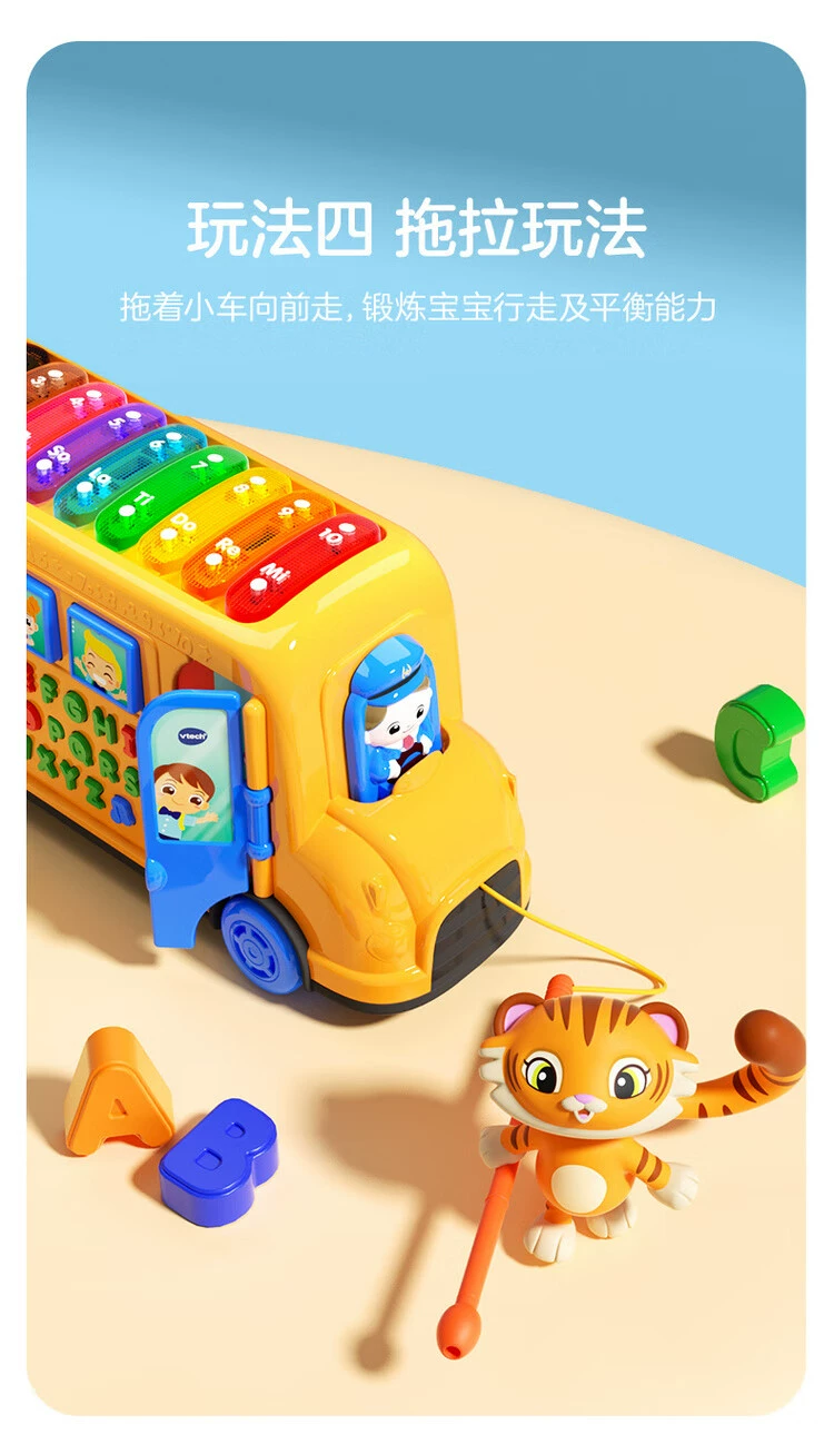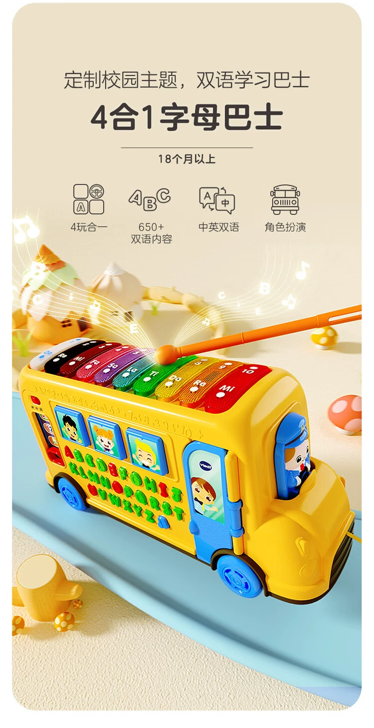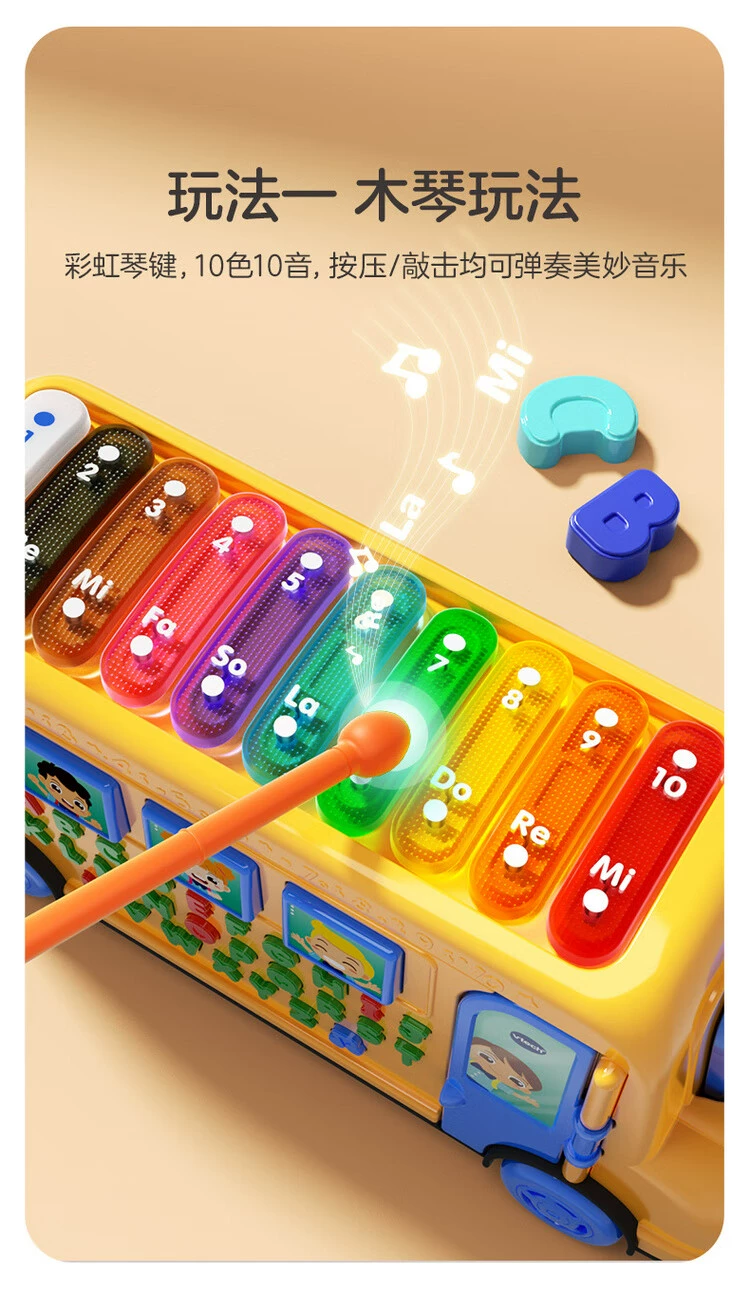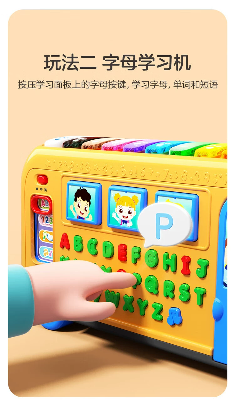 伟易达4合1字母巴士拖拉玩具车早教课木琴儿童音乐益智玩具宝宝