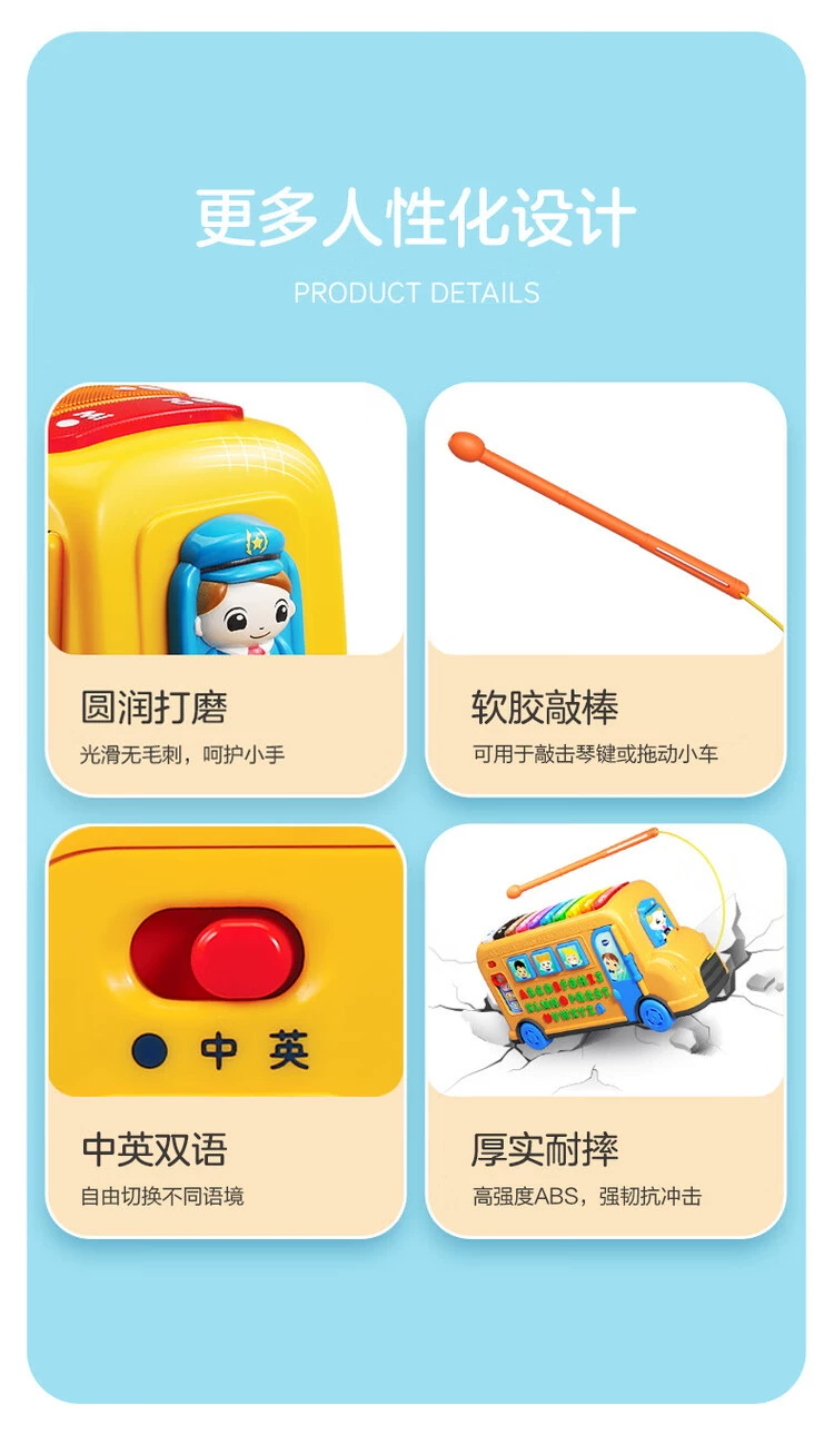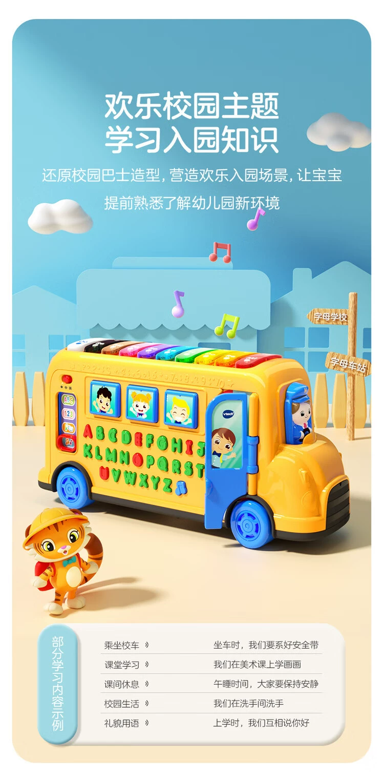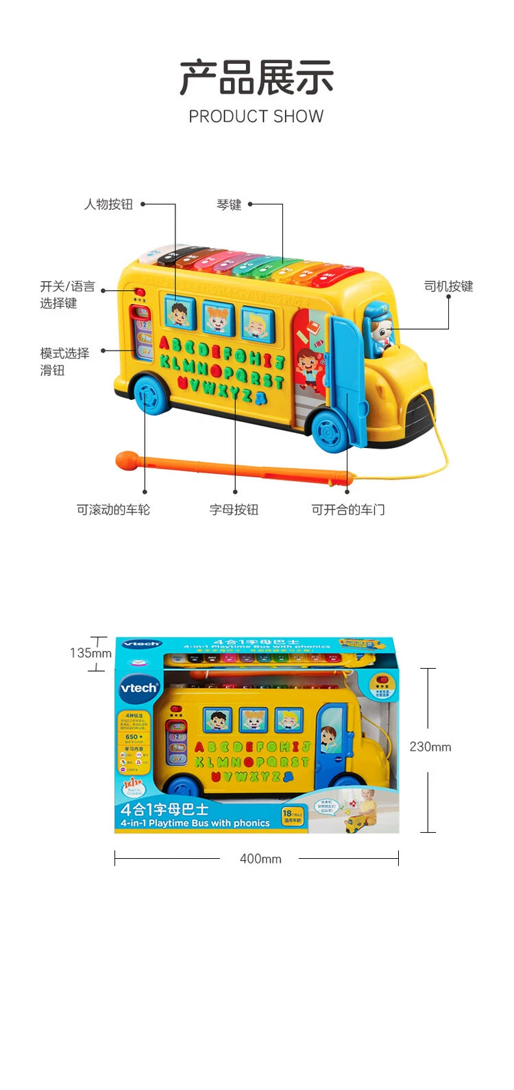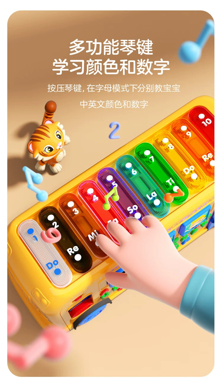 伟易达4合1字母巴士拖拉玩具车早教课木琴儿童音乐益智玩具宝宝