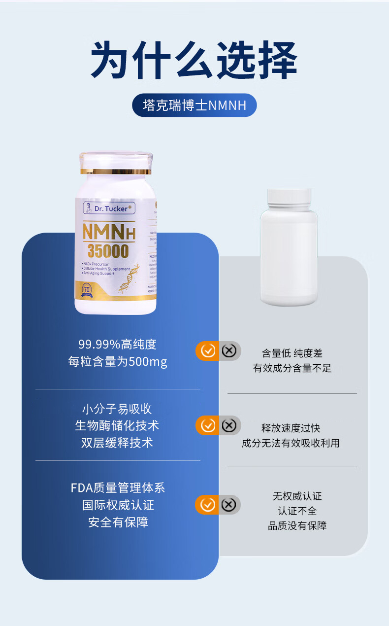 【进博会特邀】Dr.Tucker 塔克瑞博士NMNH3500抗衰NAD+前体β烟酰胺单核苷酸 7粒体验装