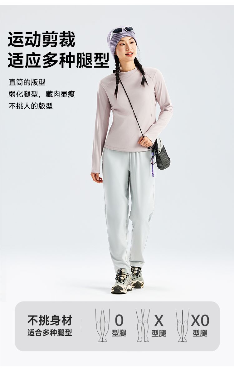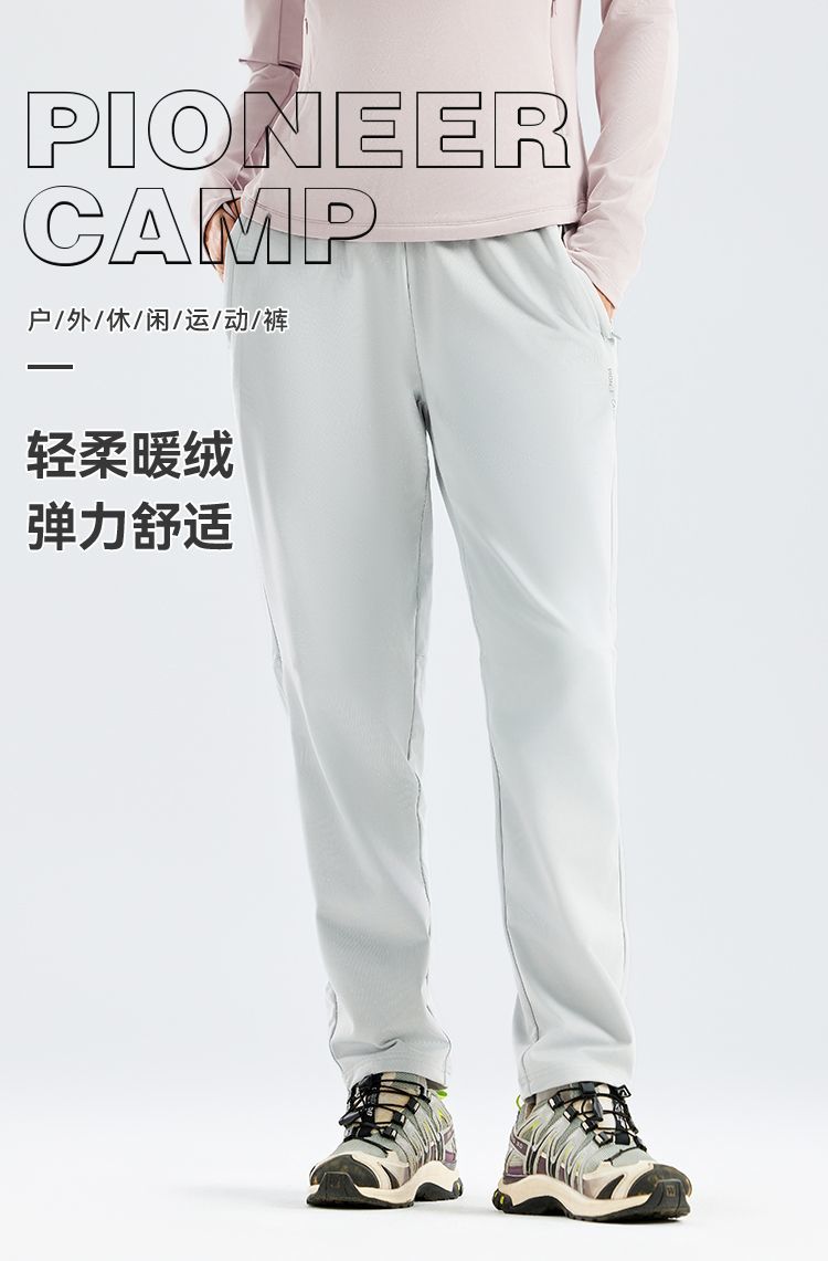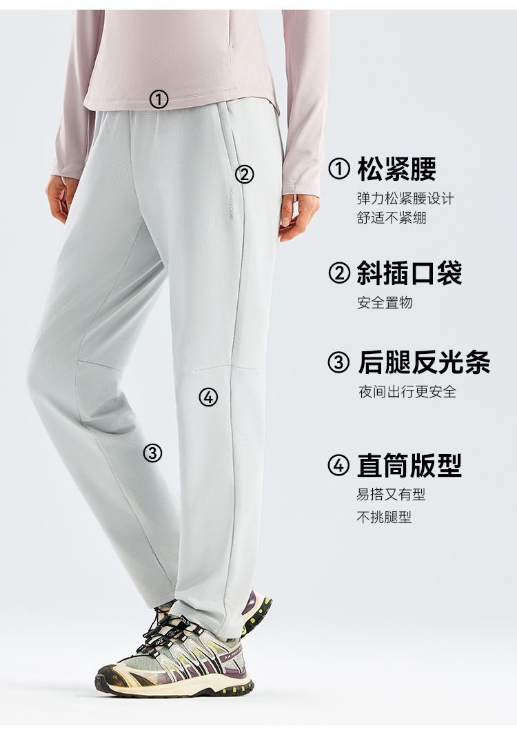 拓路者女款薄绒快干长裤2025年秋季针织加绒直筒裤松紧腰运动裤子