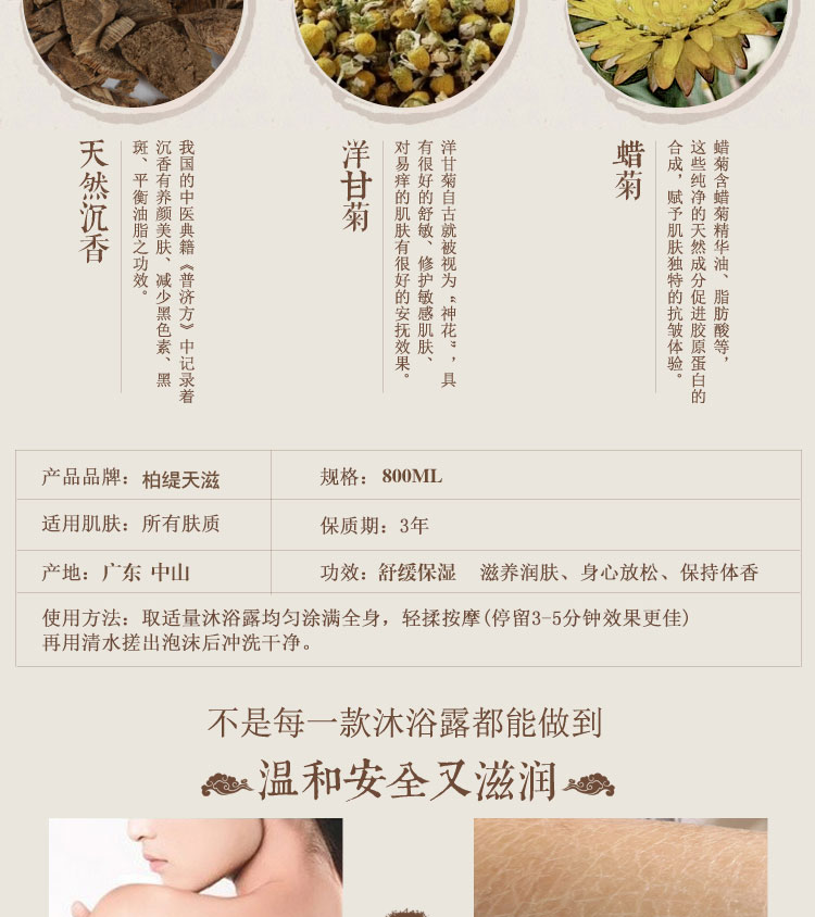中国古代宫廷史中都有历代君王嫔妃用沉香香薰进行养身、美颜的记载,杨贵妃以沉香铺华清池,得华美之肌肤!其他王宫贵族更是每日毕用沉香充分香薰自己的寝宫后,闻香就寝。沉香有安神、解郁之功效,可令容颜白嫩,皮肤细滑,皱纹减少。这款天滋沉香舒缓沐浴露中添加了沉香提取物,持久留香,高级舒适,沐浴后肌肤滋润嫩滑,且能让肌肤散发欣怡幽香,沐浴后倍感精神,心旷神怡。