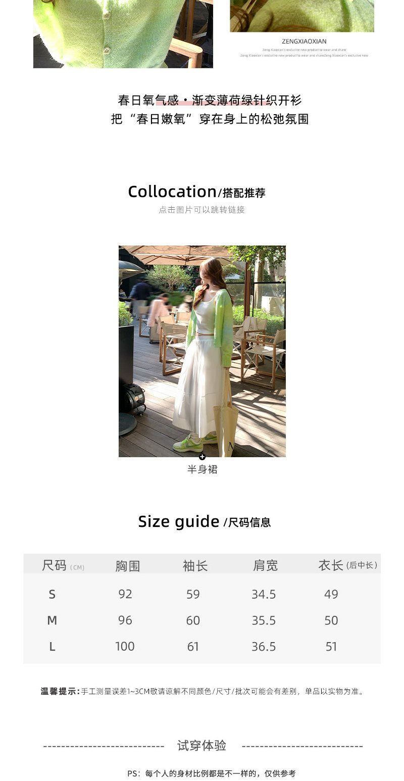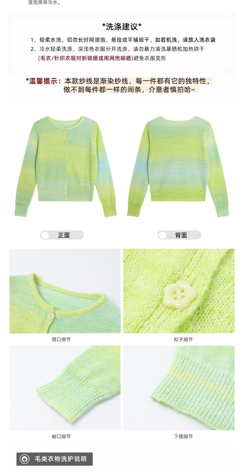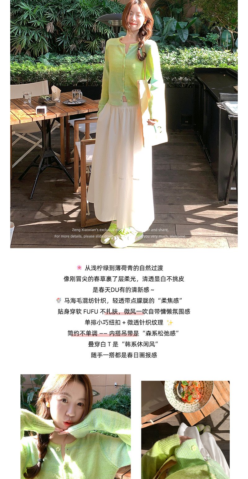 <曾小咸推荐>韩系渐变绿色针织毛衣开衫